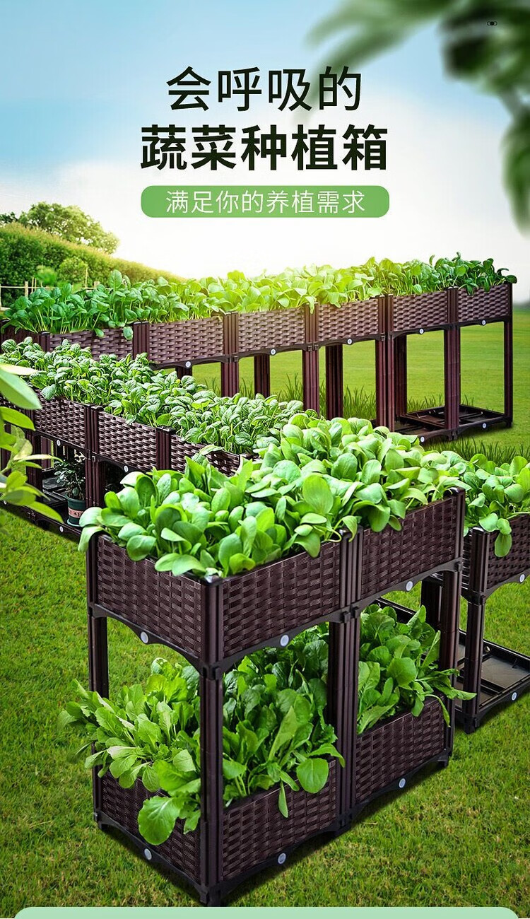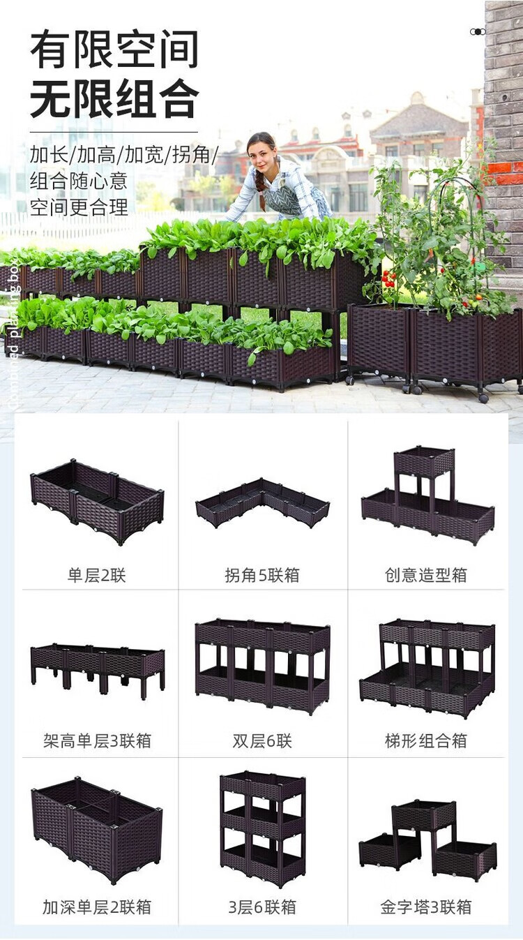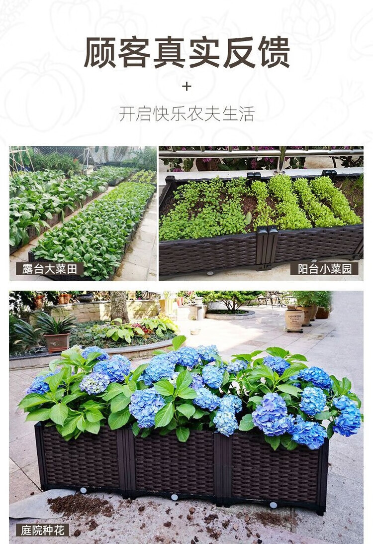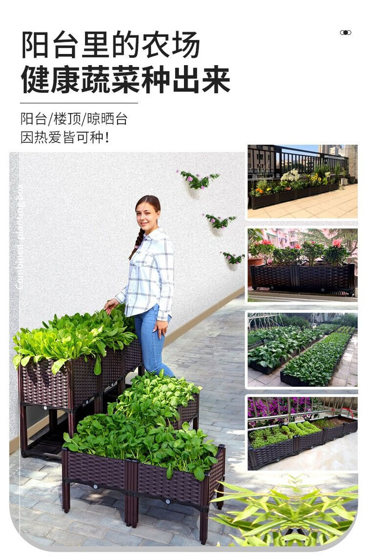 欣慕雅种菜神器长方形楼顶家庭阳台塑料大花盆户外庭院种菜盆蔬菜种植箱 【加大特深一联】长40宽40高50 加厚