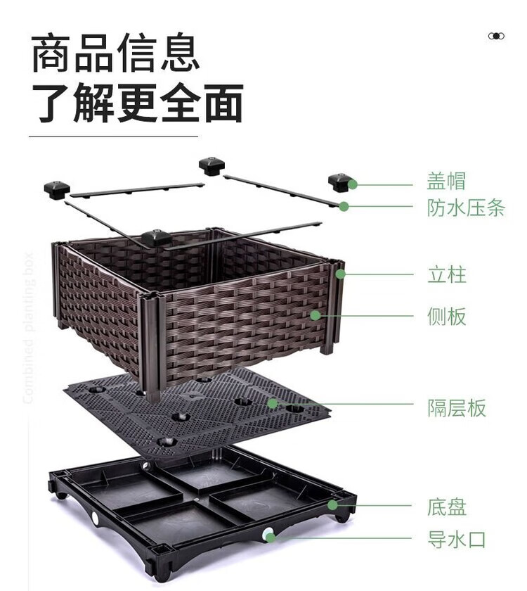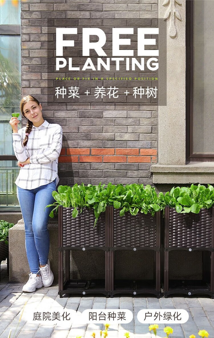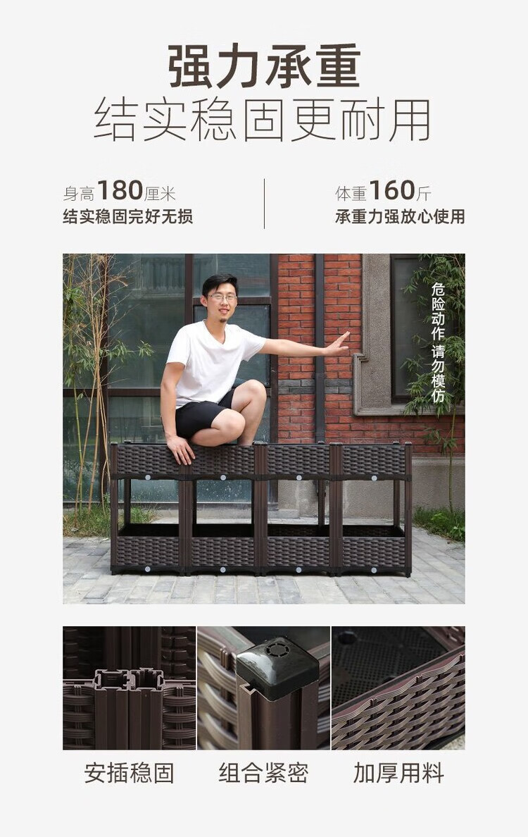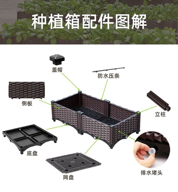 欣慕雅种菜神器长方形楼顶家庭阳台塑料大花盆户外庭院种菜盆蔬菜种植箱 【加大特深一联】长40宽40高50 加厚