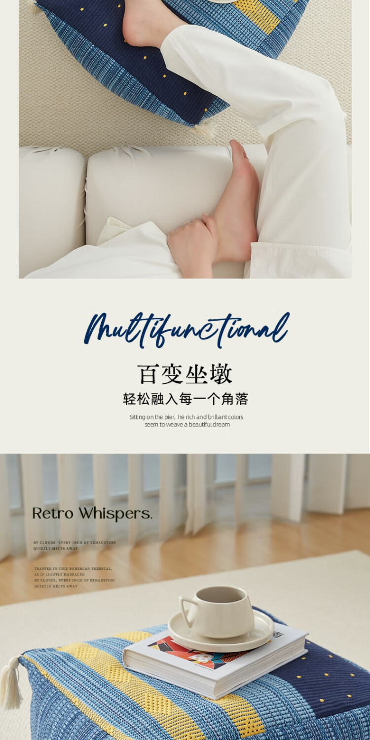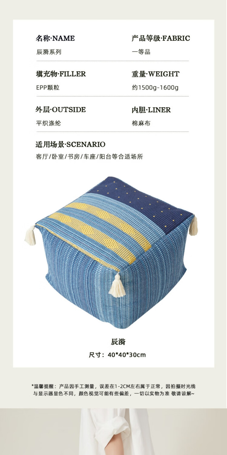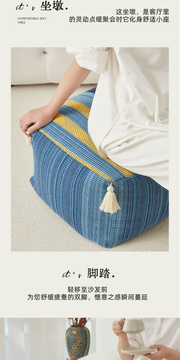 京华客厅地毯蒲团百搭简约家用沙发卧室坐墩卧室榻榻米阳台飘窗靠垫 辰漪 40*40*30