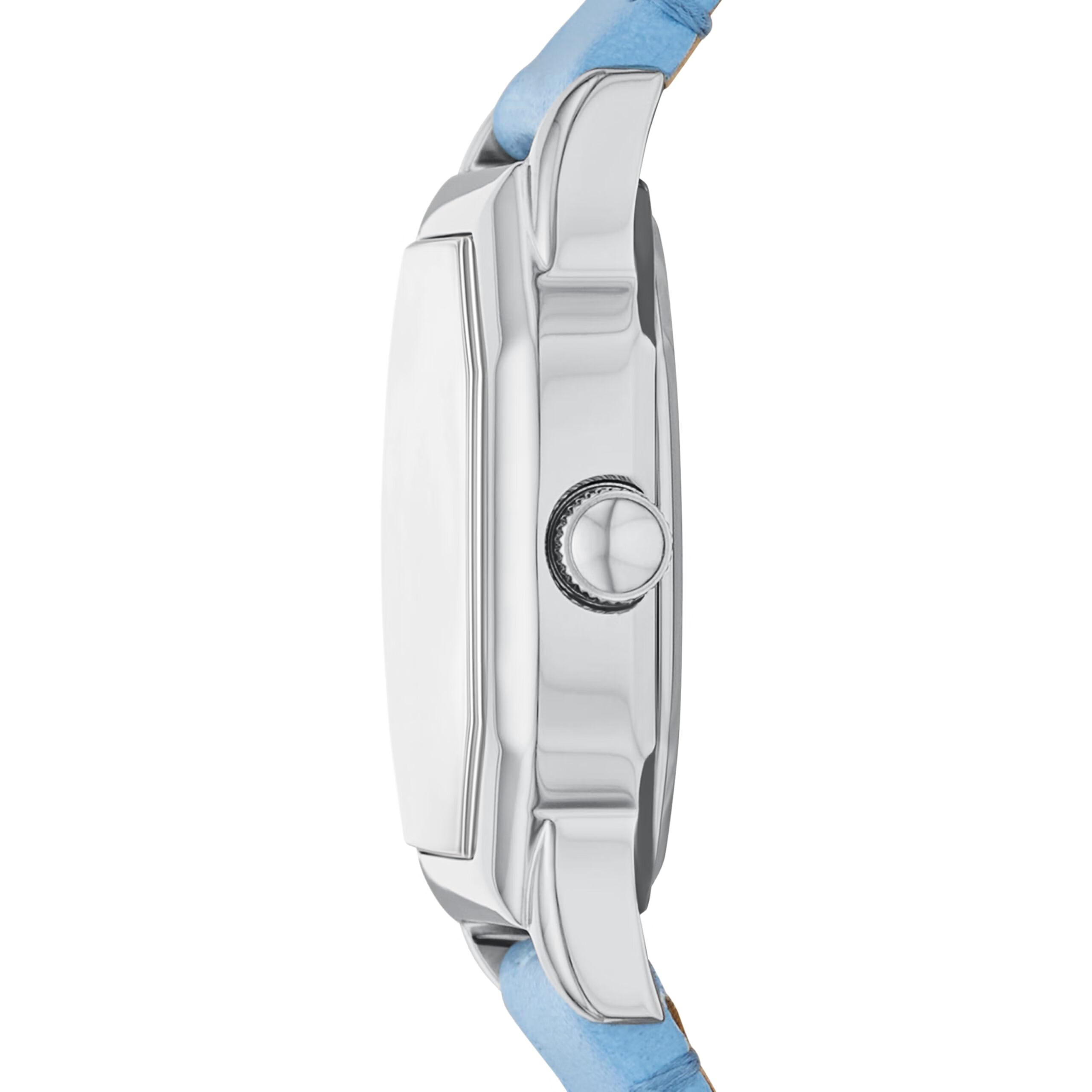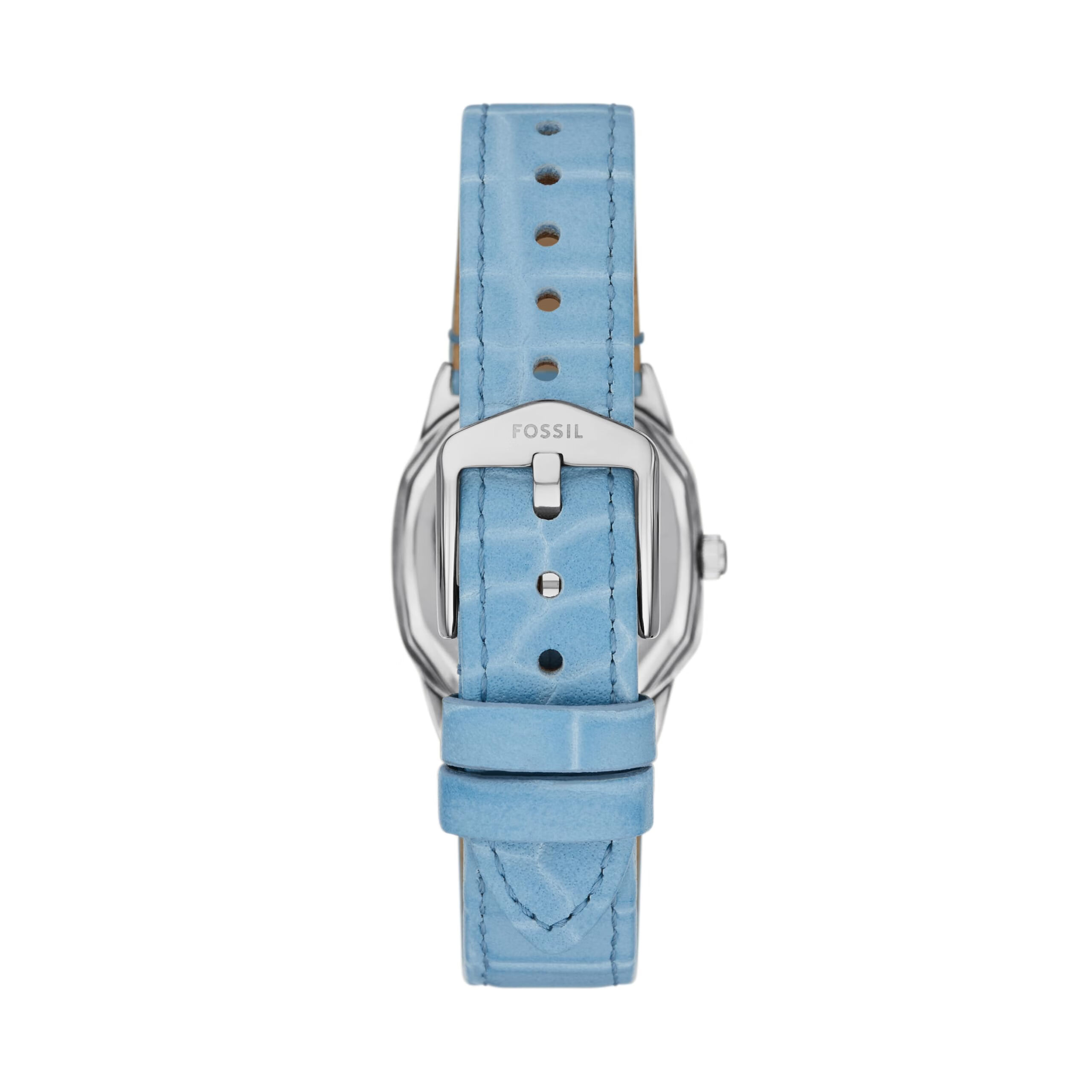 Fossil 女式 Harlow 三指针浅蓝色皮革手表,蓝色, 蓝色 Blue Leather/Silver 8.0*27.0*16.0 mm