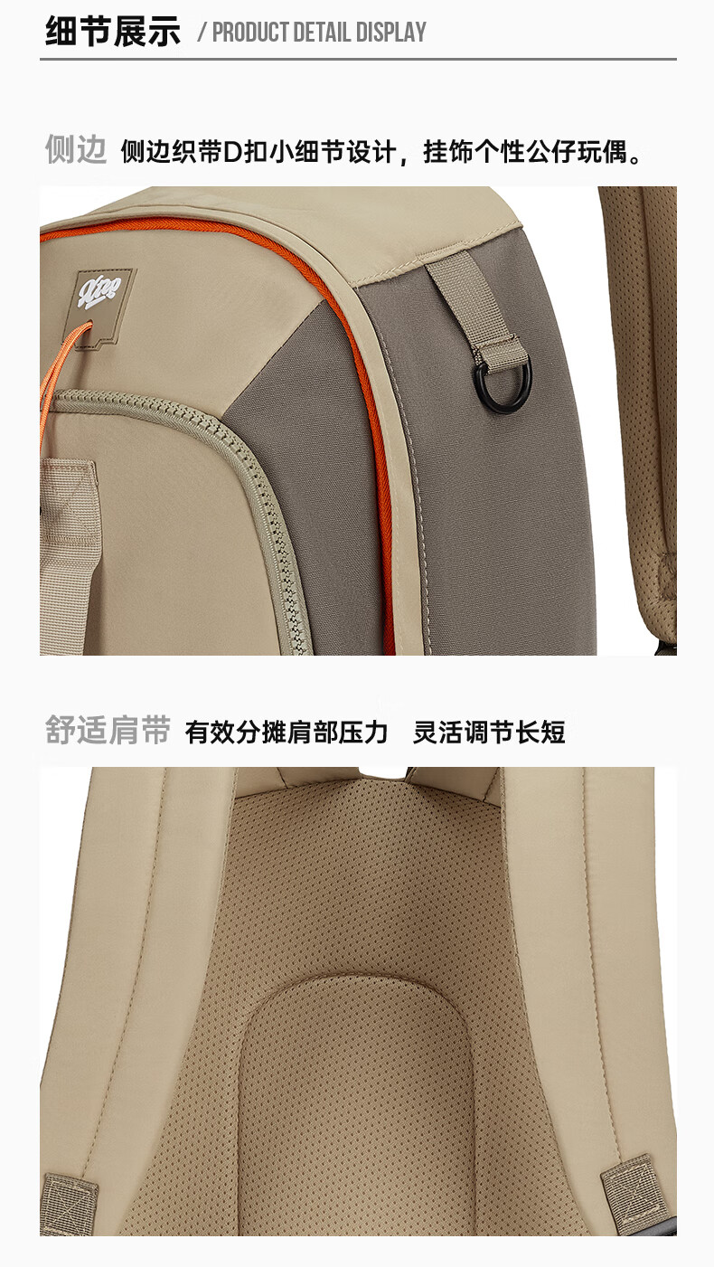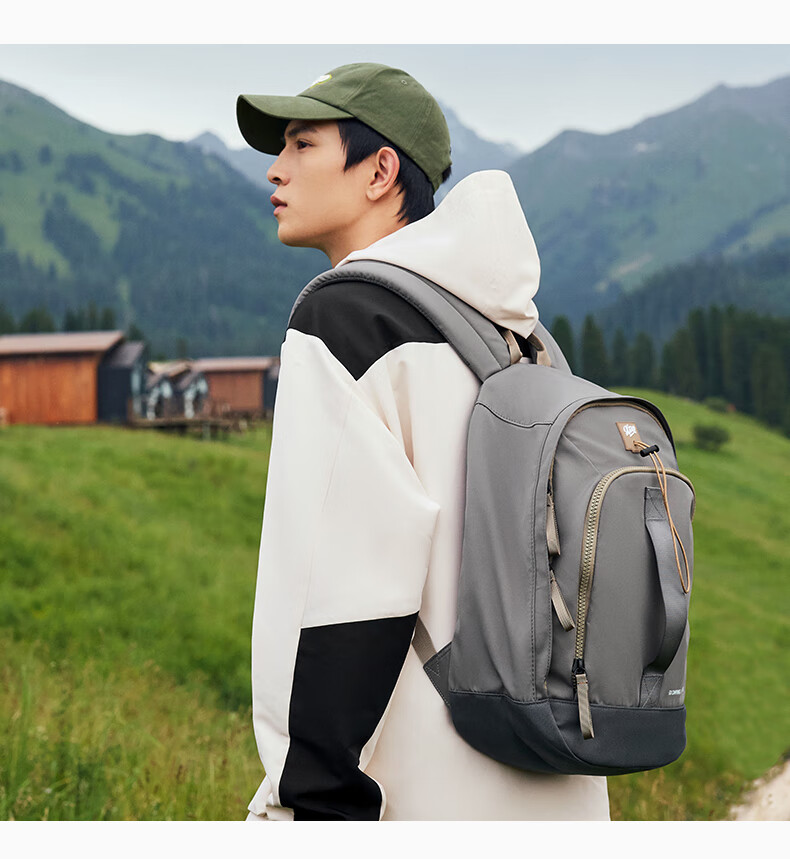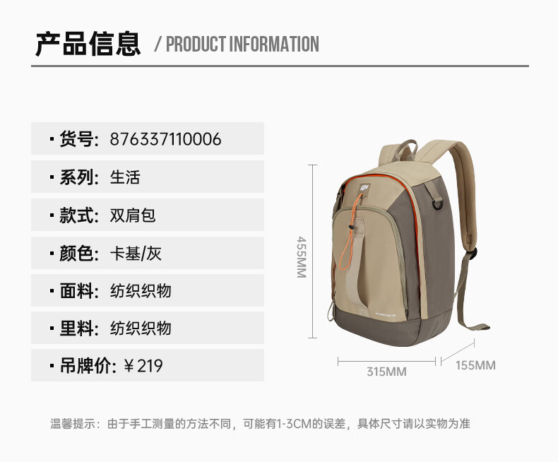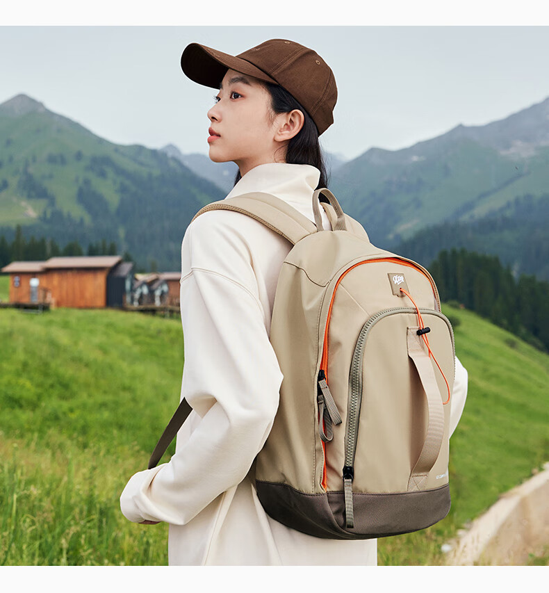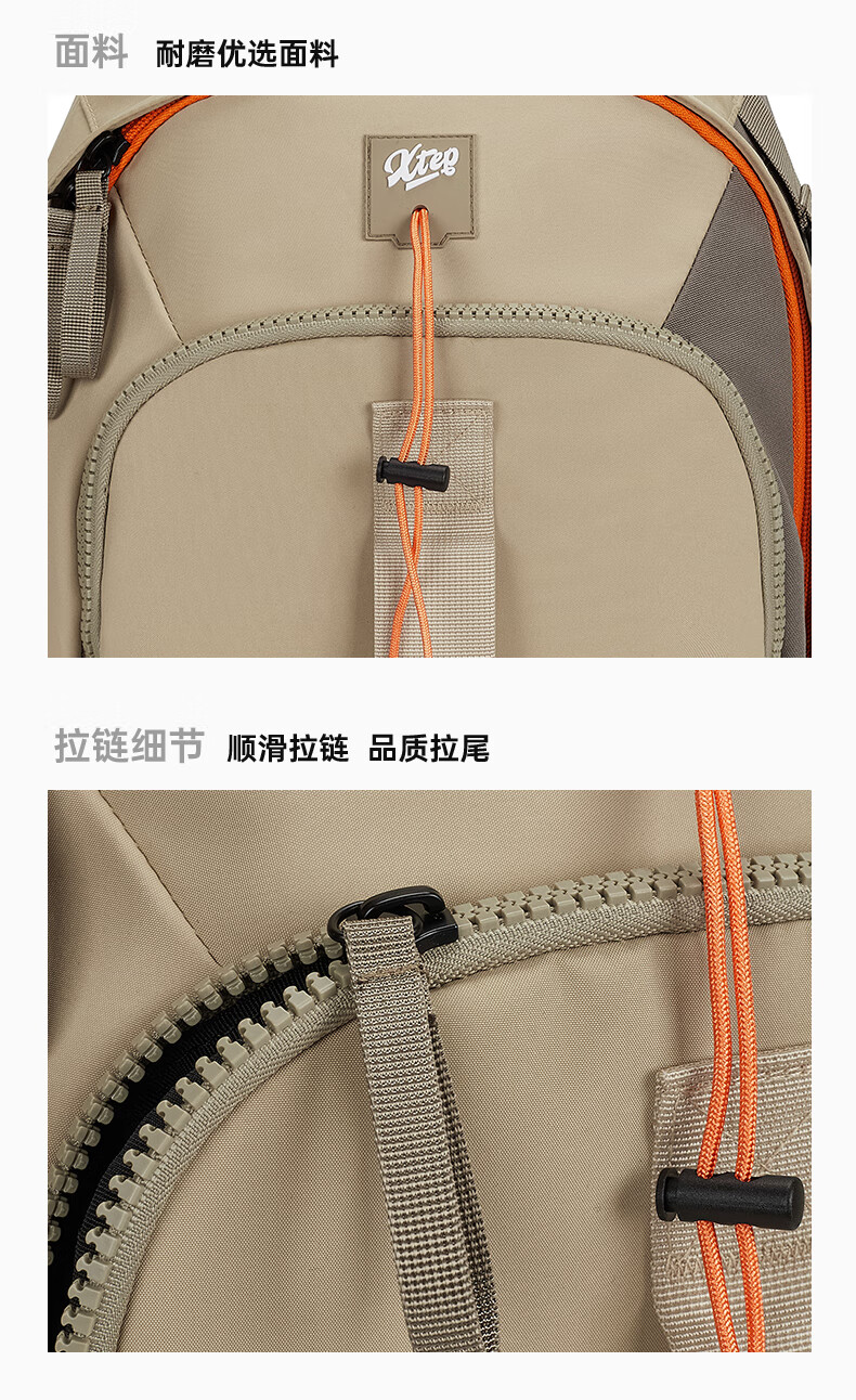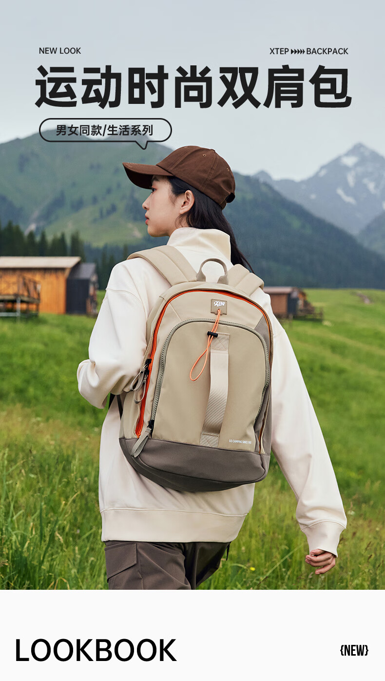 特步双肩背包男女同款秋季户外情侣大容量骑行电脑包旅行书包 卡基 均码