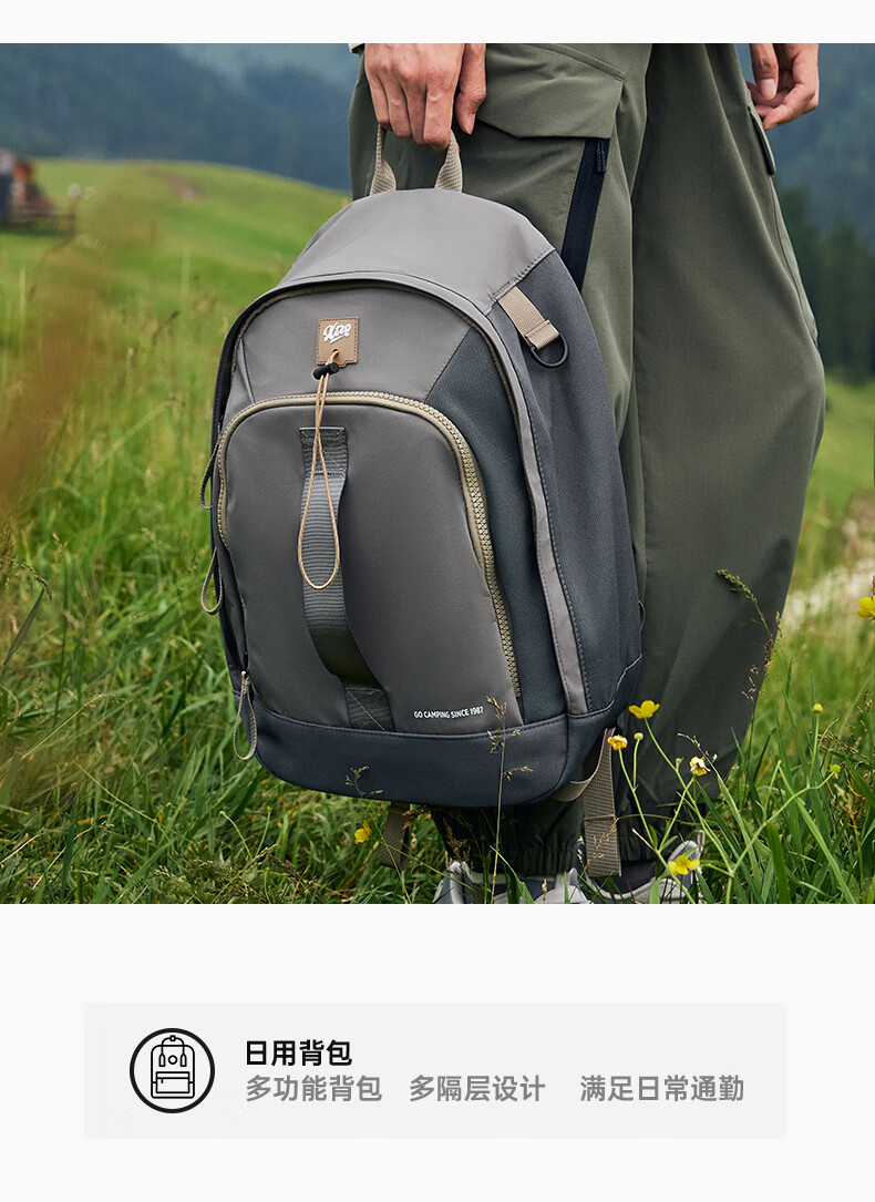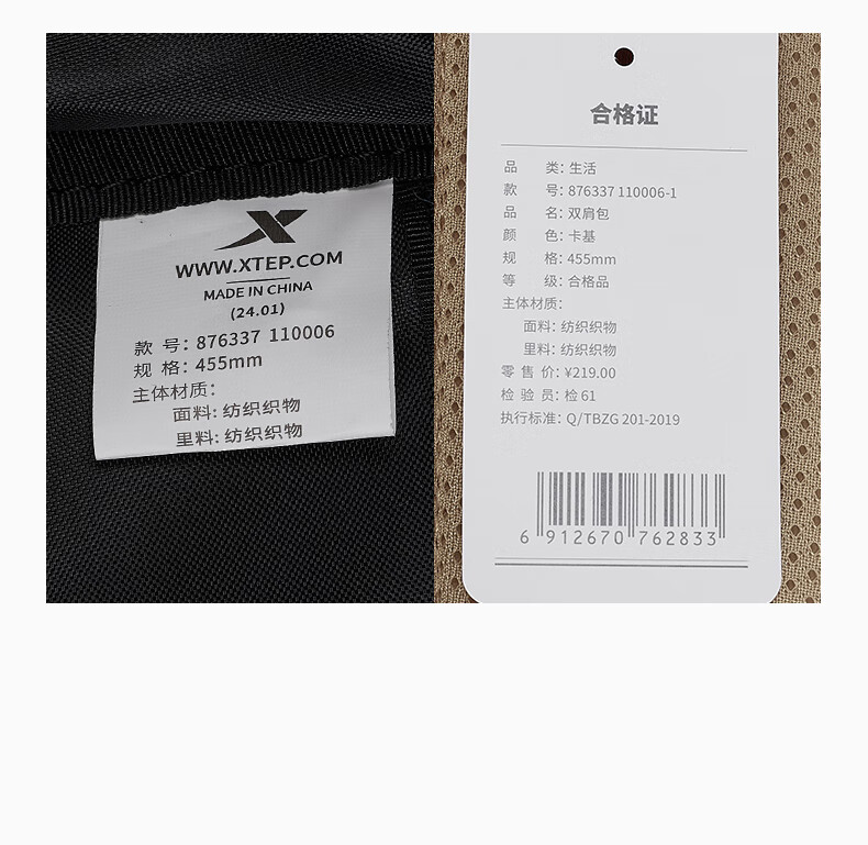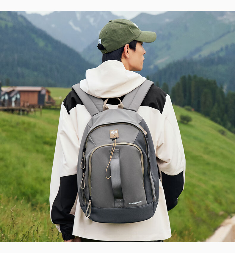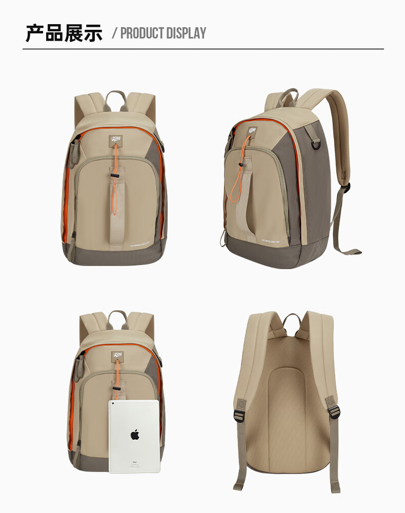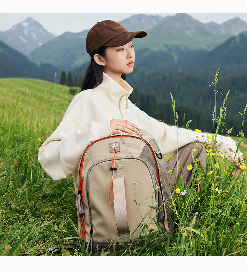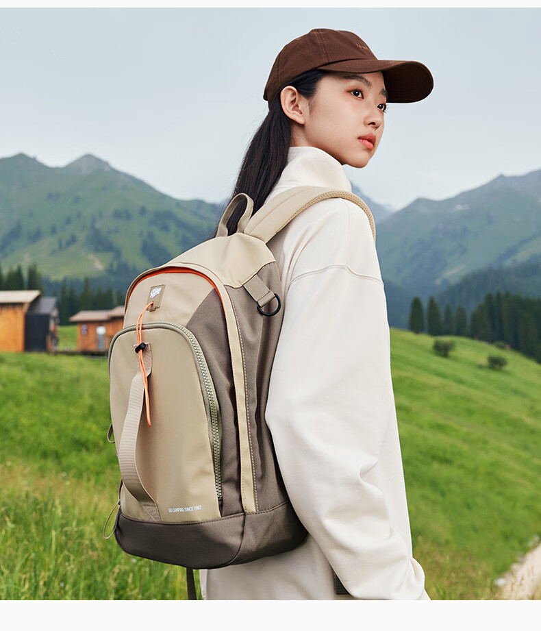 特步双肩背包男女同款秋季户外情侣大容量骑行电脑包旅行书包 卡基 均码