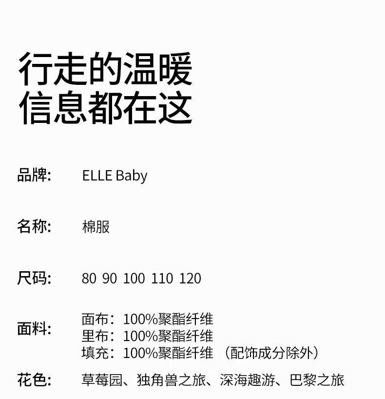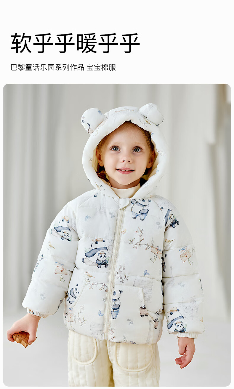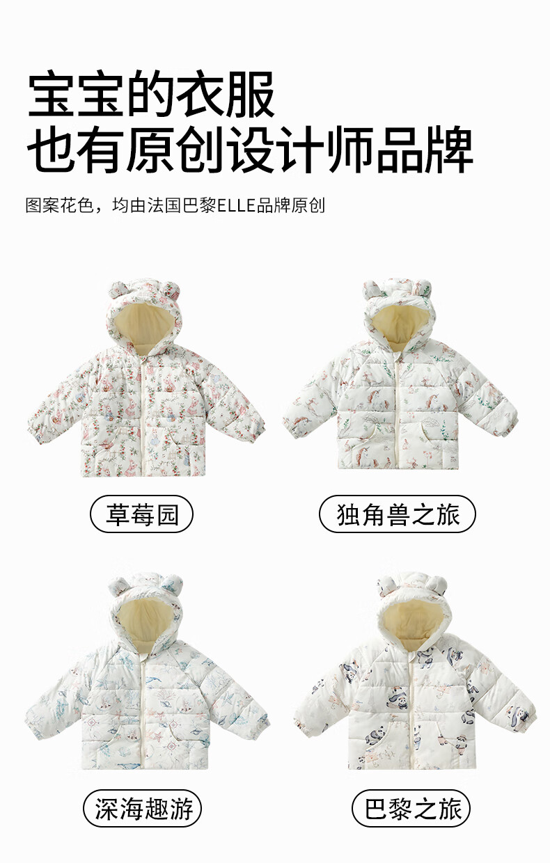 ELLE BABY儿童棉服男女童外套秋冬加厚保暖宝宝棉袄绵柔亲肤上衣 巴黎之旅 120