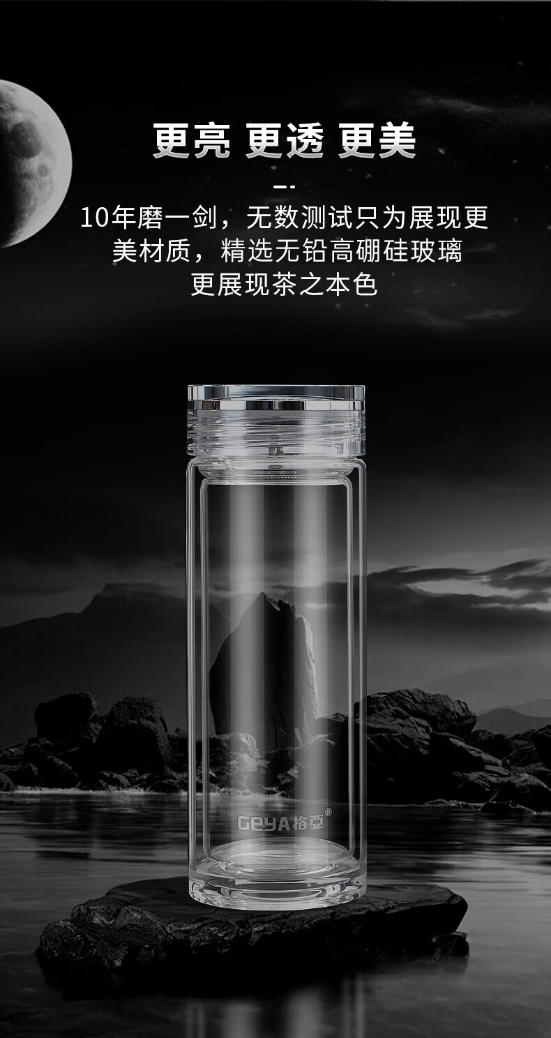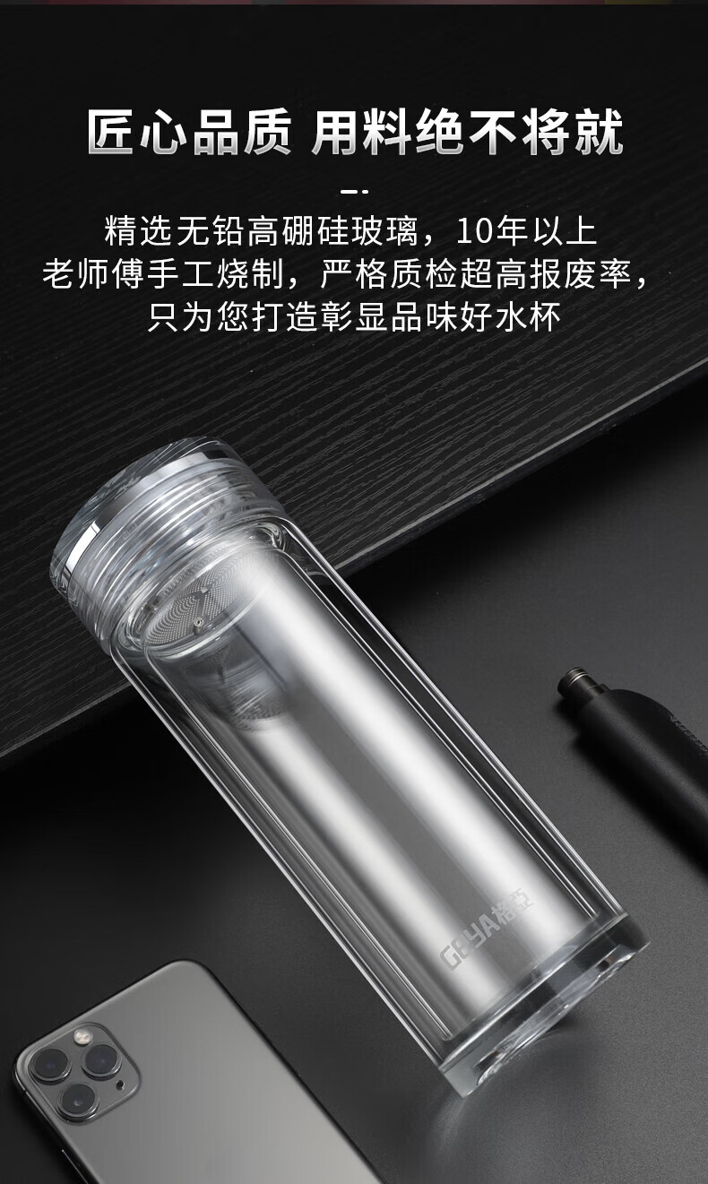 格亚(GEYA)双层玻璃杯男士高档商务玻璃茶杯玻璃水杯泡茶杯子礼盒礼物定制 春雅【礼盒装】400ml