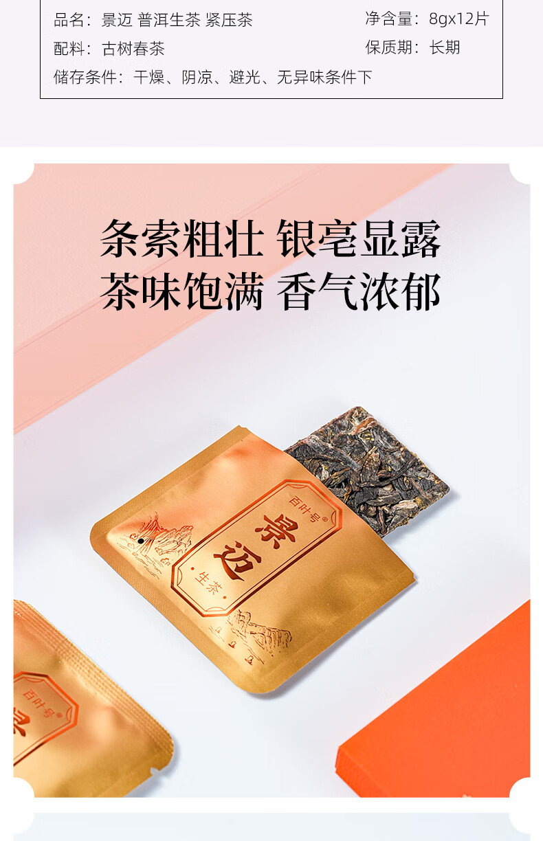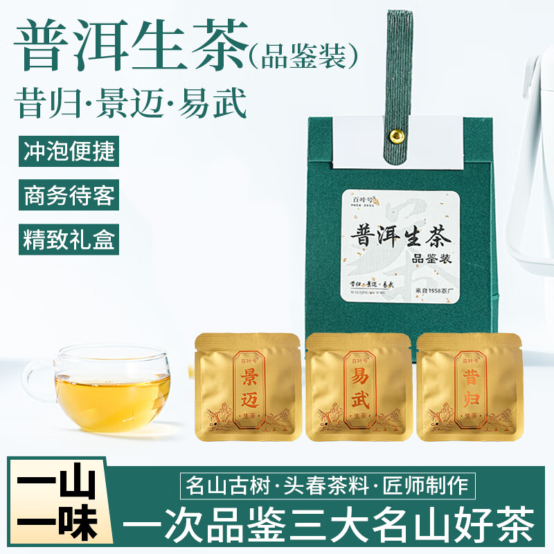百叶号普洱茶生茶独立包装小袋茶叶便携小方块旅行装办公室礼物 【易武古树】独立小方块2023年 8g*12片盒装