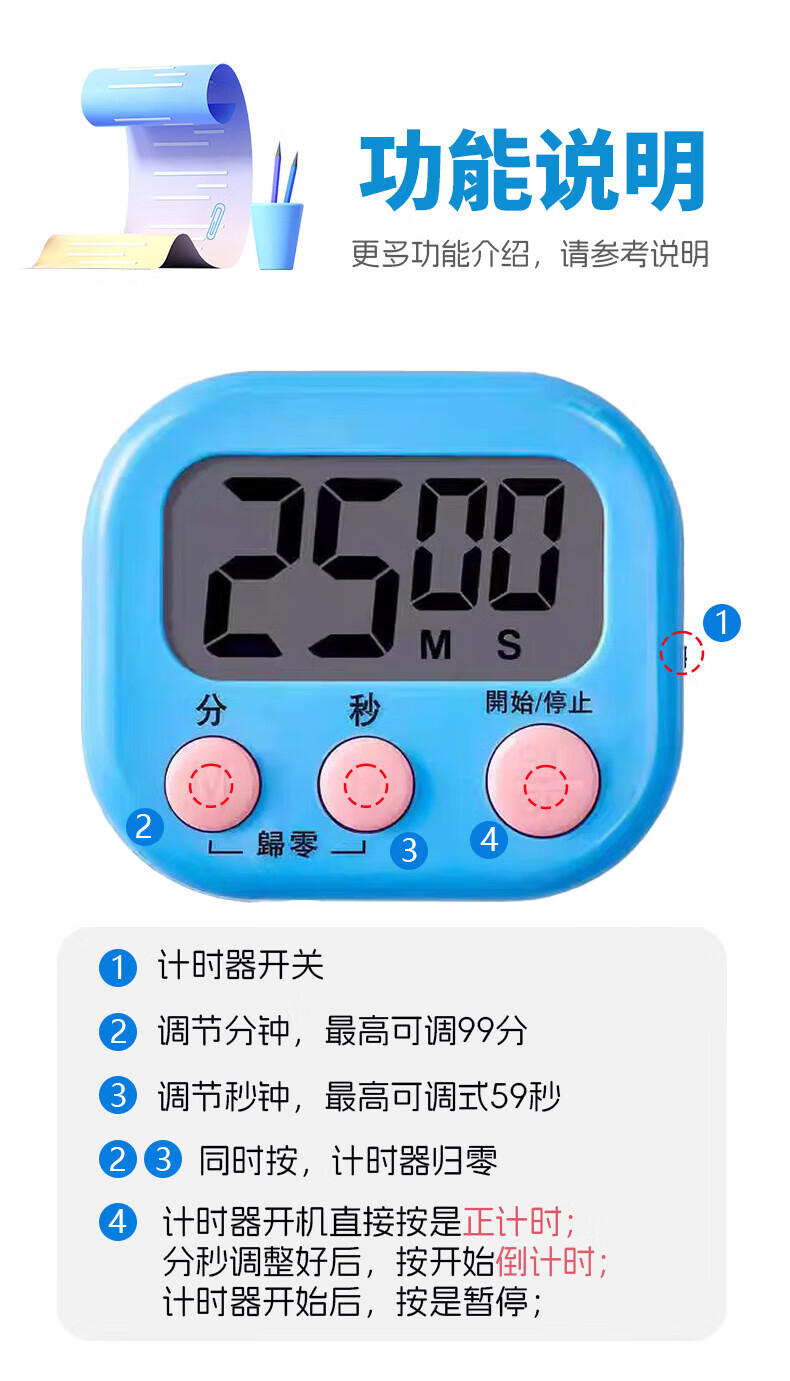 定时器开关计时器 厨房烘焙闹铃学生做题可爱倒计时提醒器 【电子 计 时 器】随机色1个活动22