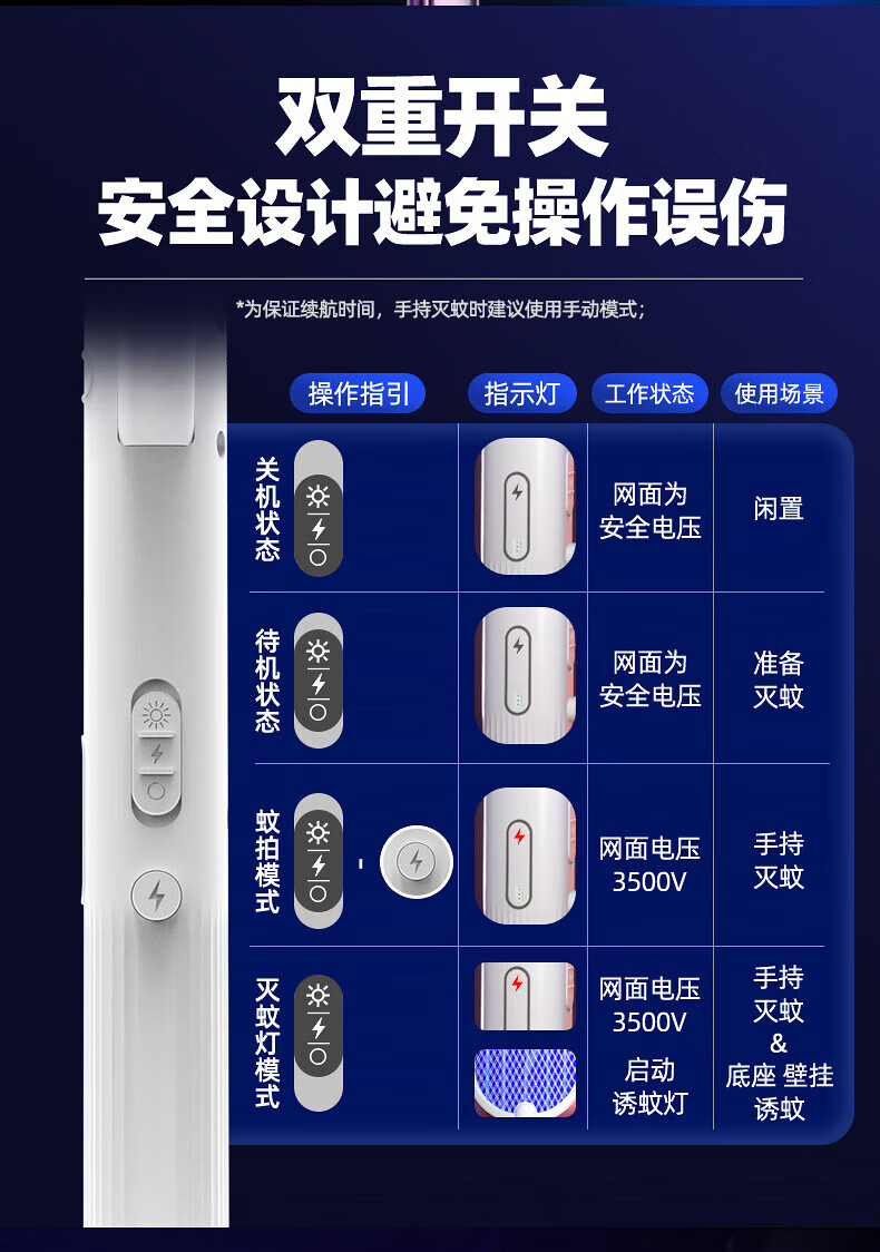 德雷博(DEREMBO )电蚊拍灭蚊灯两用锂电池充电式紫光诱蚊基孔肯雅热灭蚊神器P01