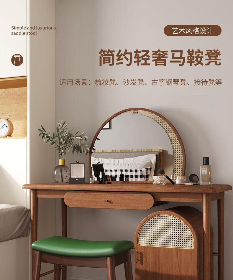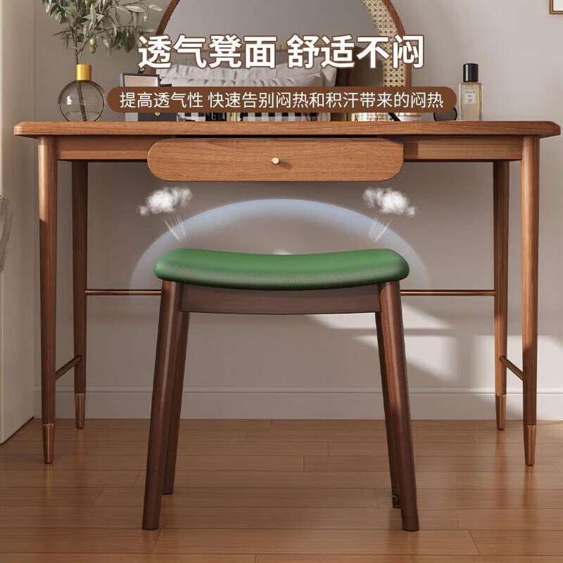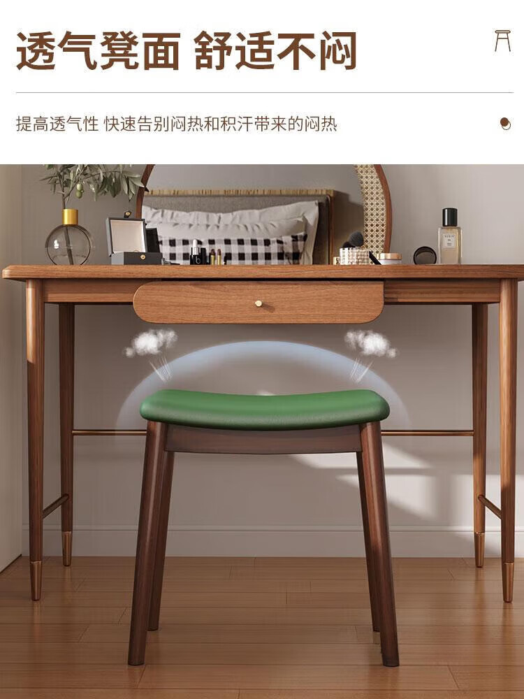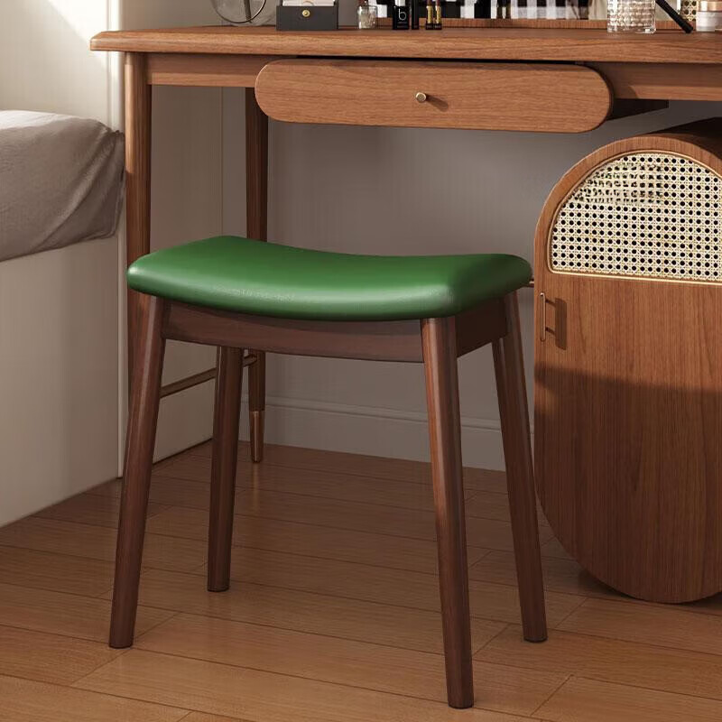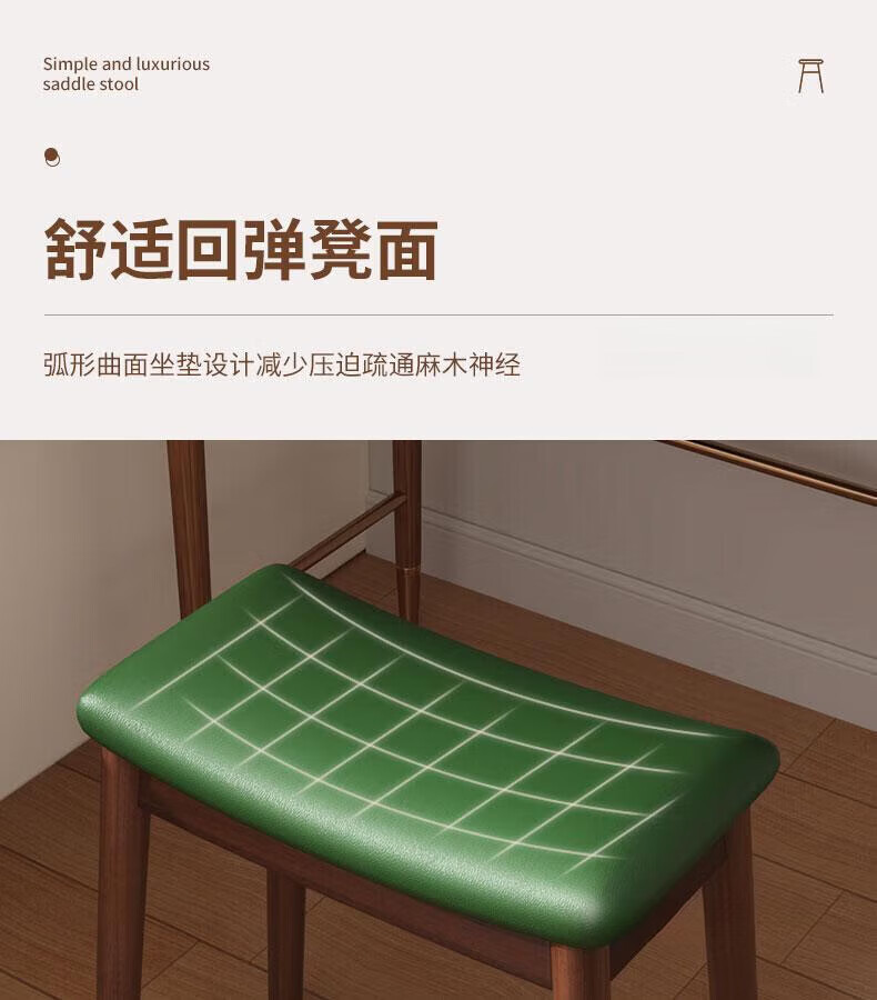弘星隆化妆凳实木方凳女生卧室梳妆凳马鞍凳家用客厅凳子脚踏凳家 马鞍凳胡桃色百搭灰面