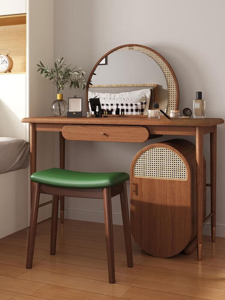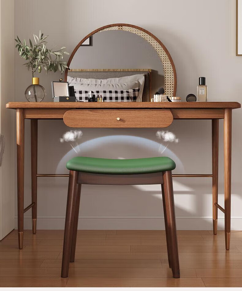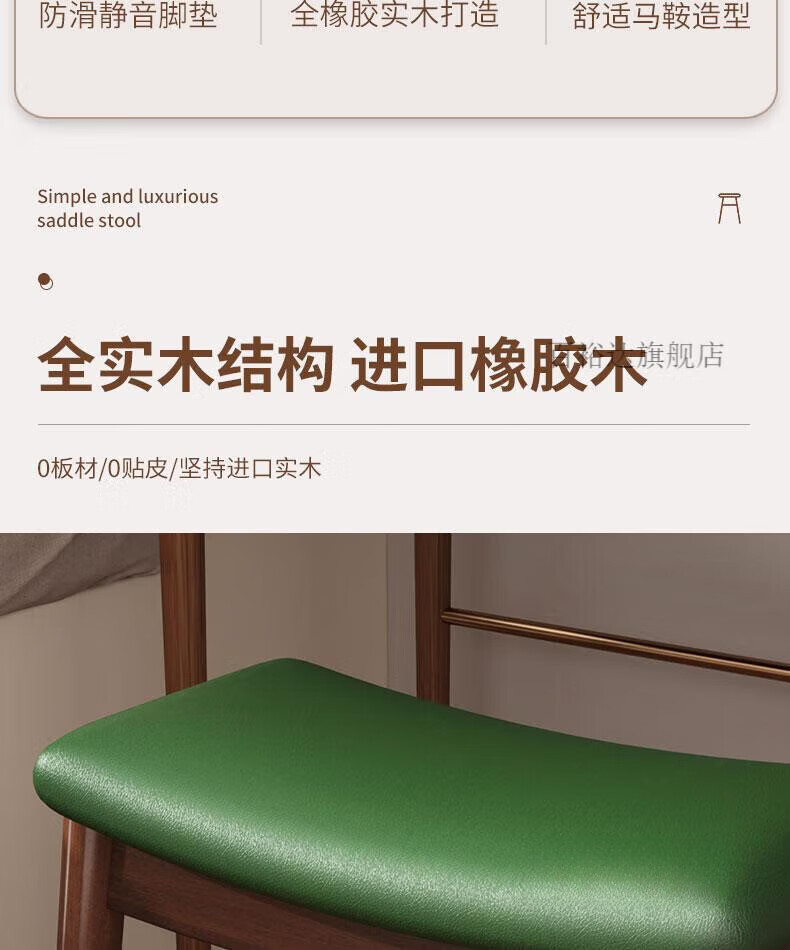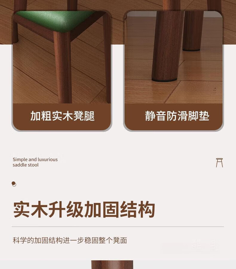 弘星隆化妆凳实木方凳女生卧室梳妆凳马鞍凳家用客厅凳子脚踏凳家 马鞍凳胡桃色百搭灰面