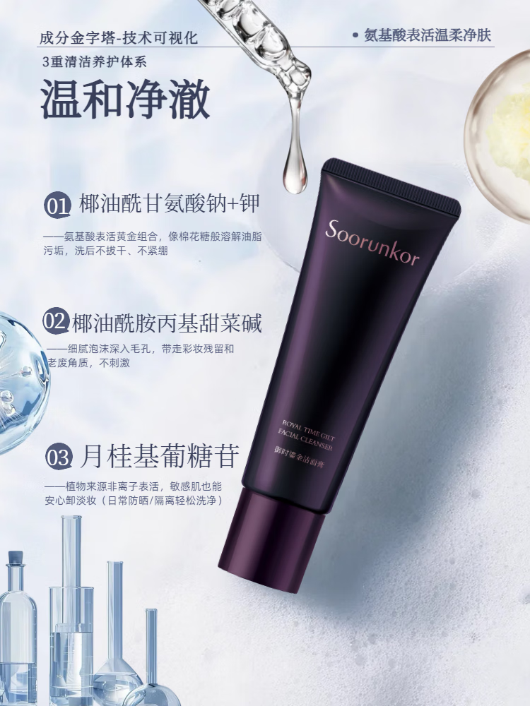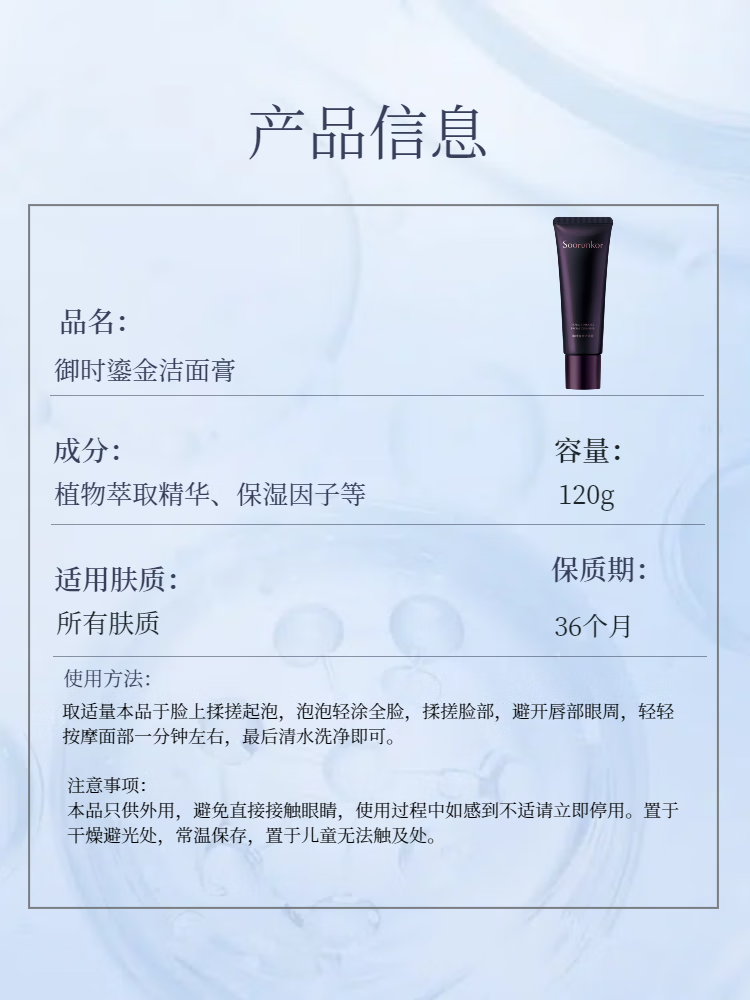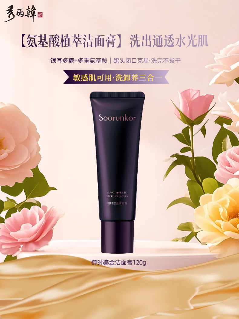 秀丽韩Soorunkor御时鎏金氨基酸洗面奶120g温和不紧绷全肤质敏感肌可用 御时鎏金洁面膏