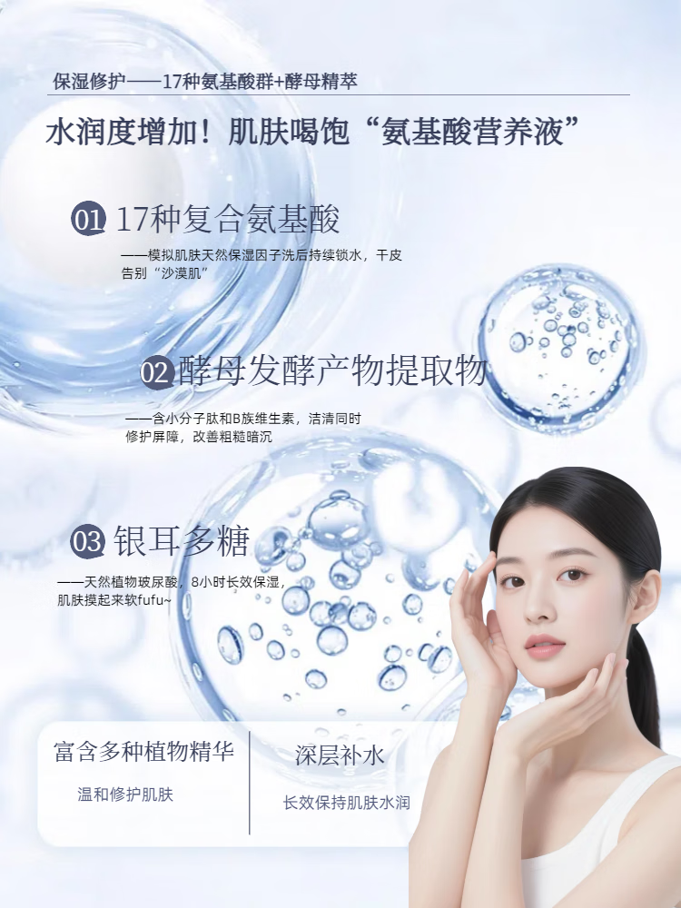 佰珍堂氨基酸洗面奶500g浓密泡沫清爽细腻大容量洁面乳厂家批发 500g氨基酸洗面奶(新