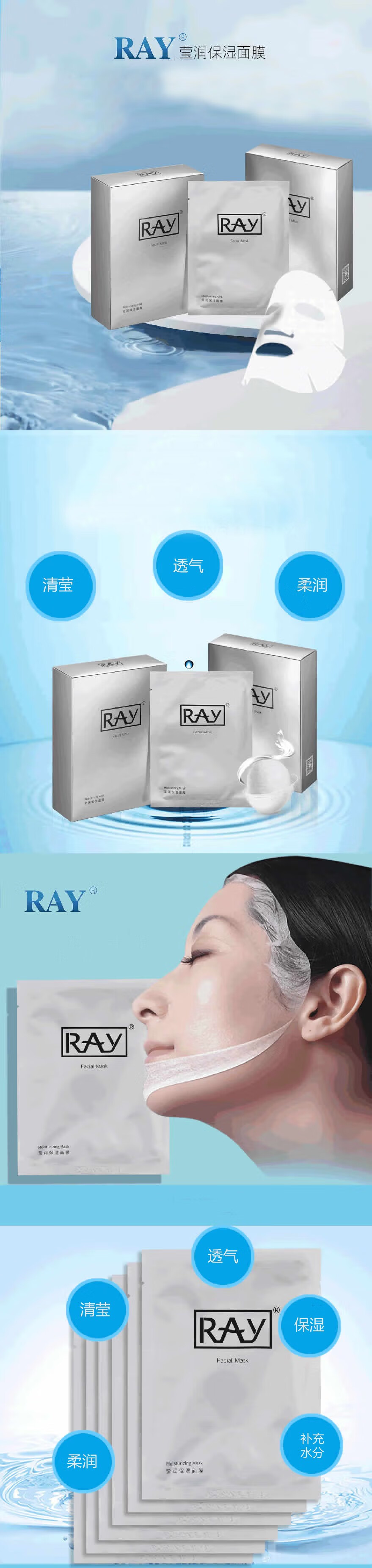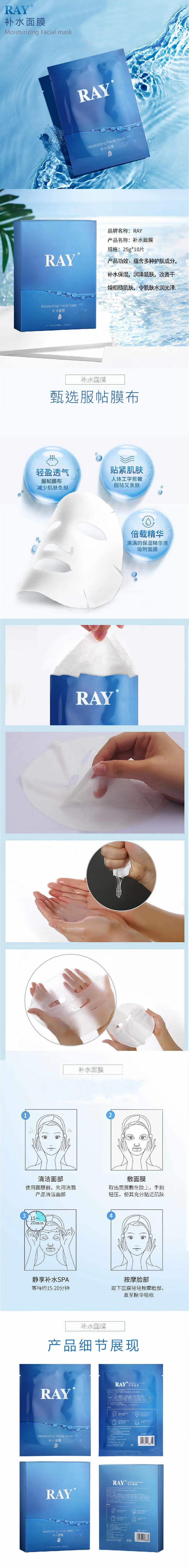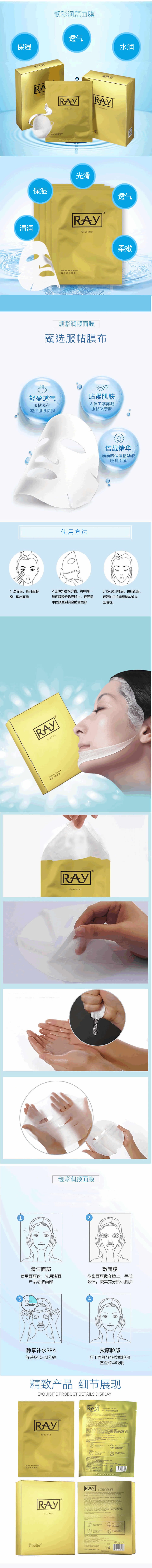 RAY补水面膜 蓝色10片/盒 补水保湿 清莹柔润 日期新鲜 金色+银色+2盒蓝色