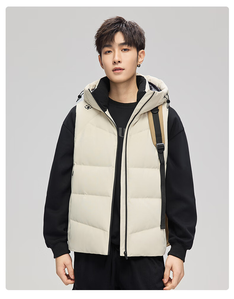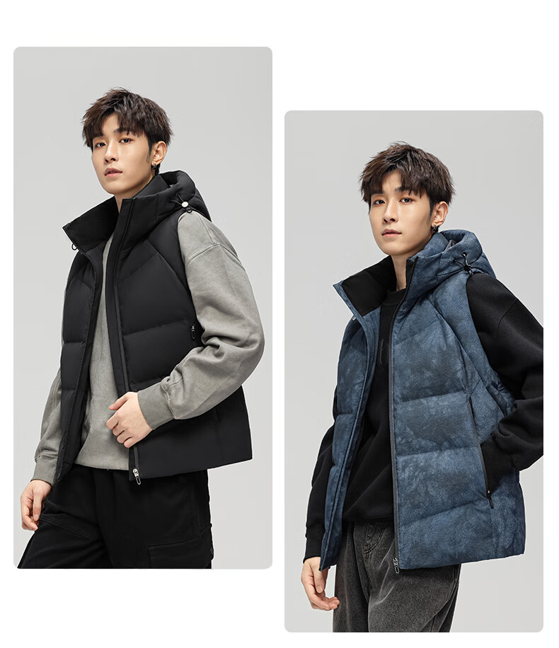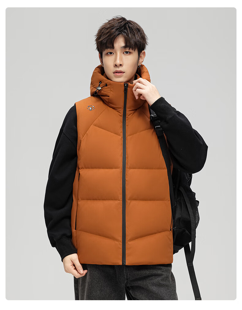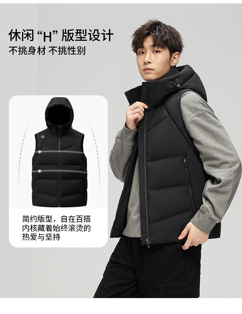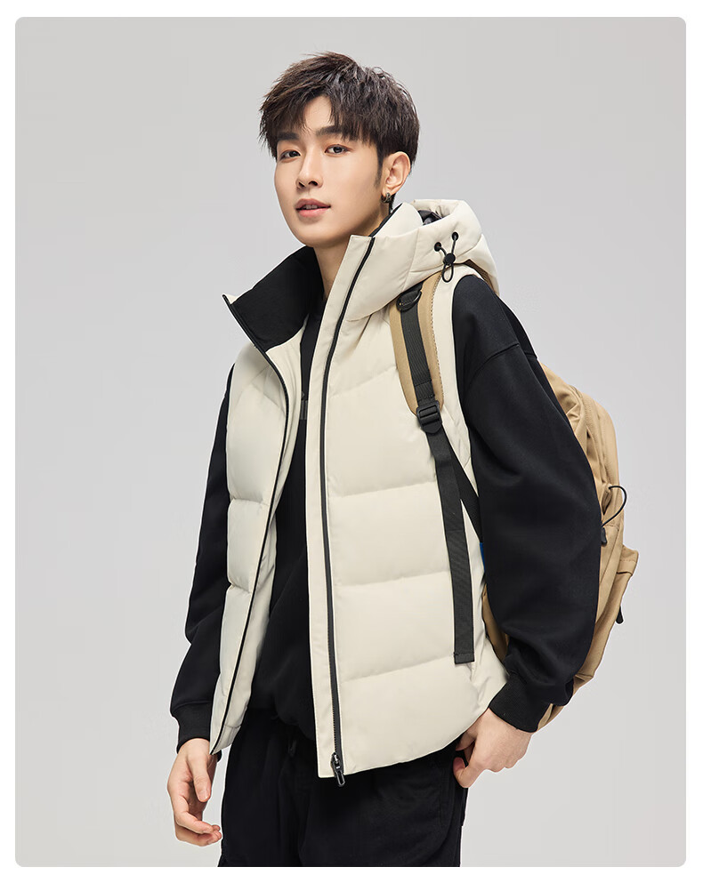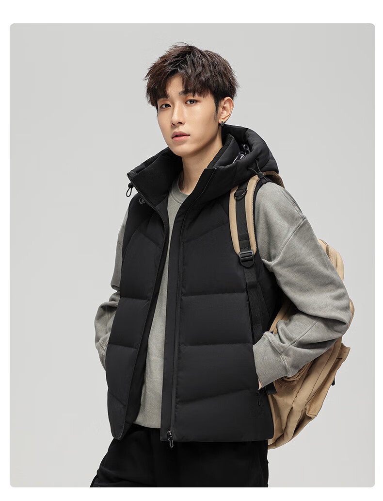 鸭鸭2025男士短款羽绒马甲休闲百搭潮流连帽男女同款秋冬保暖显瘦外套
