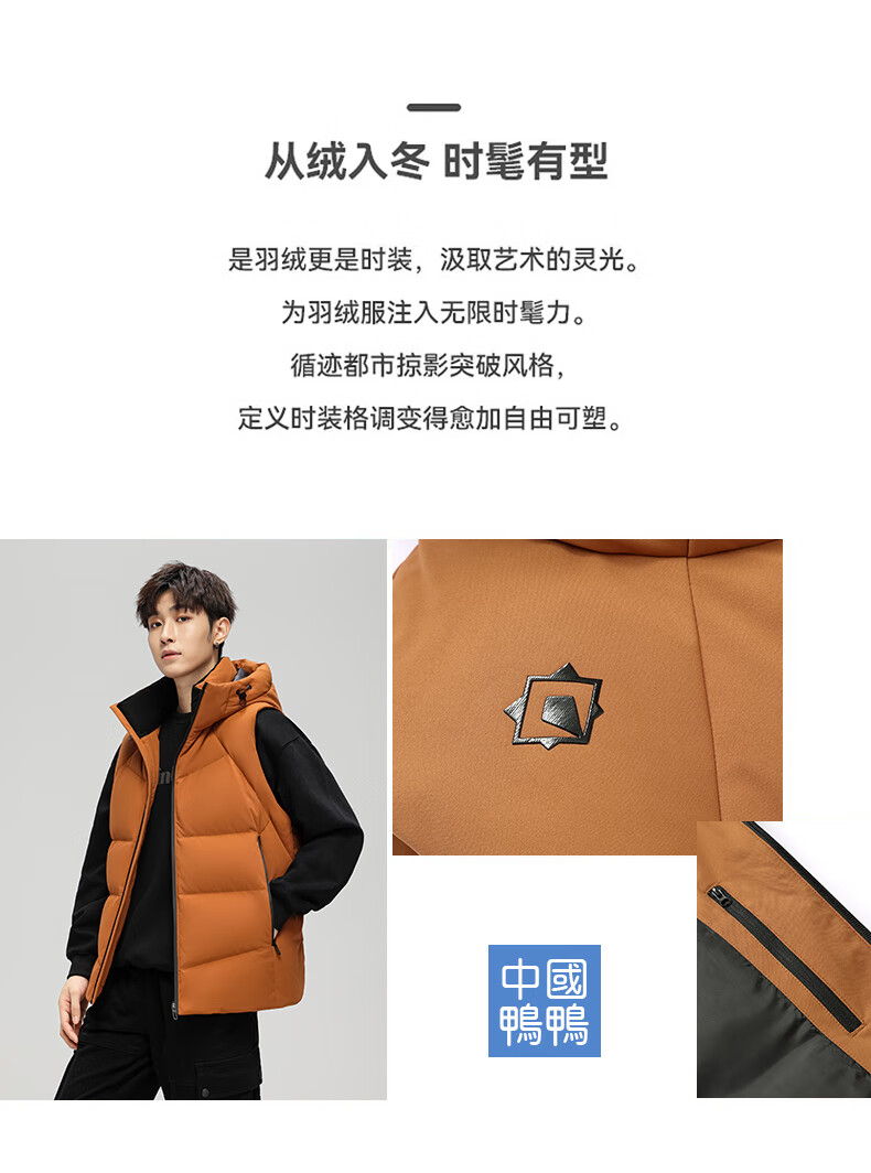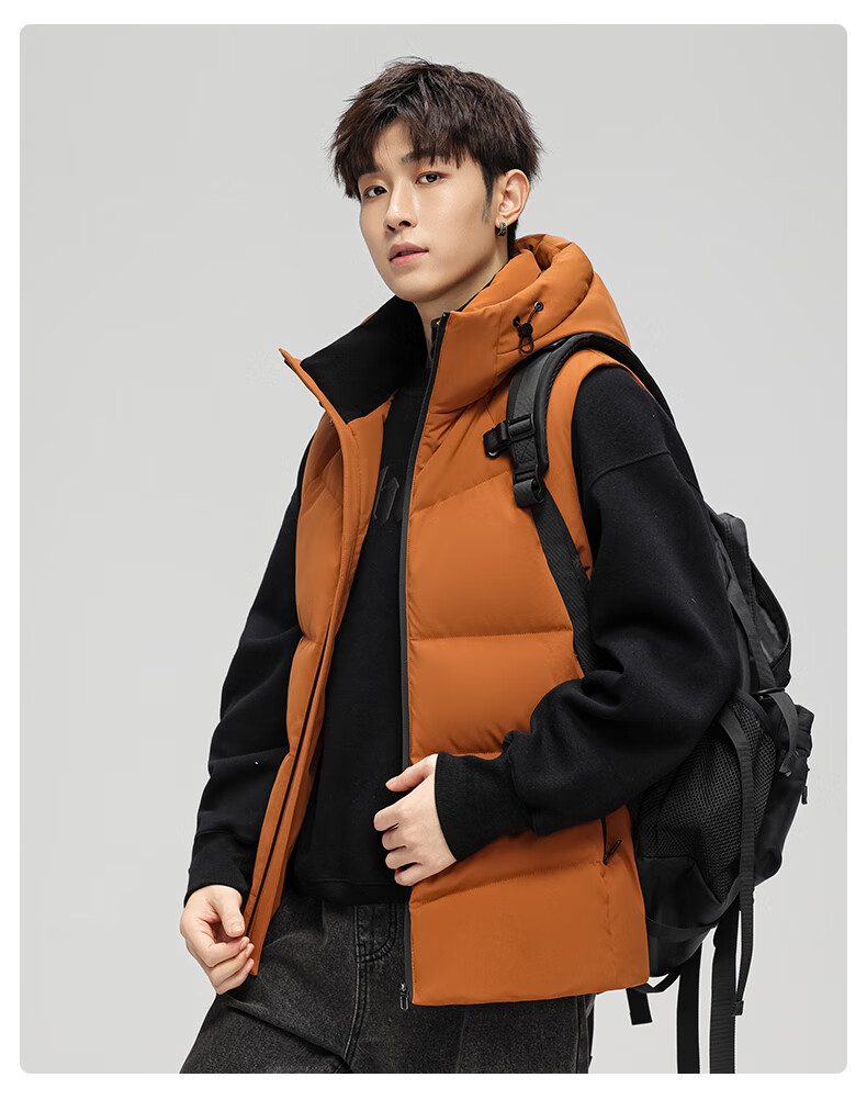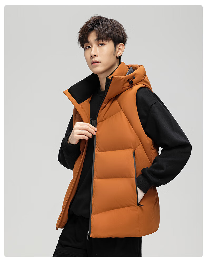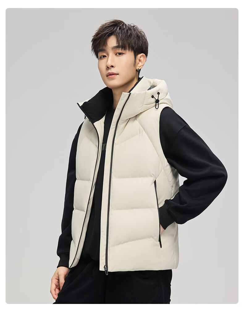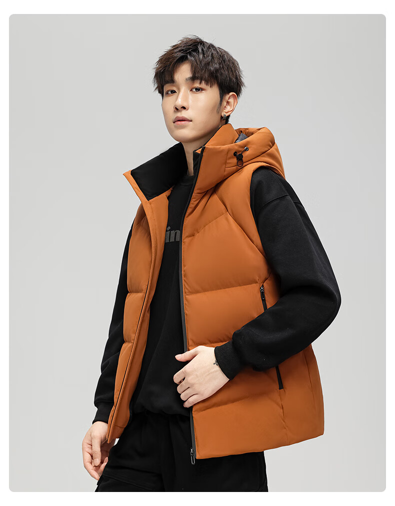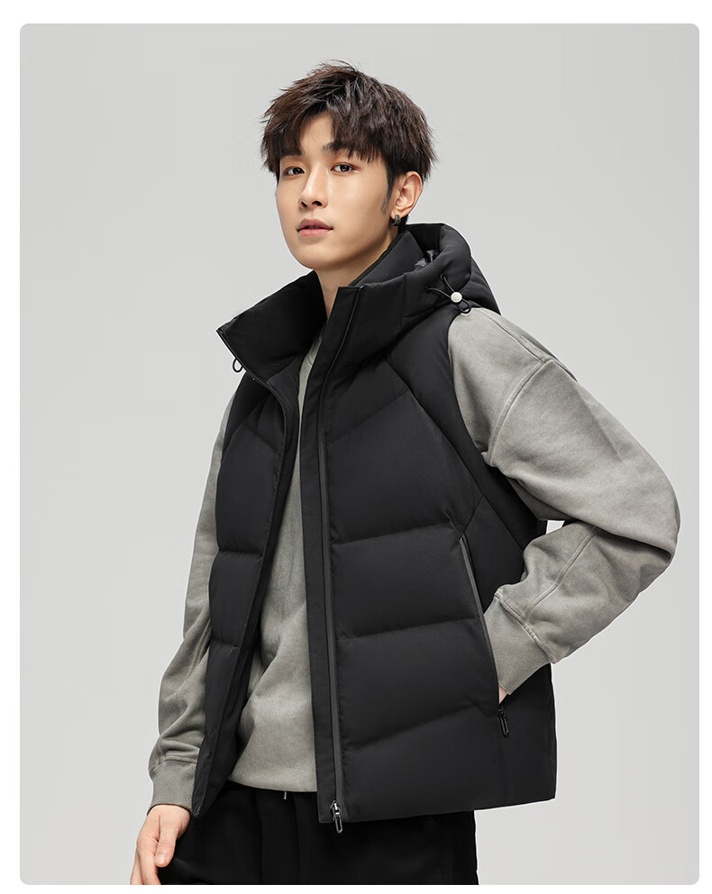鸭鸭2025男士短款羽绒马甲休闲百搭潮流连帽男女同款秋冬保暖显瘦外套