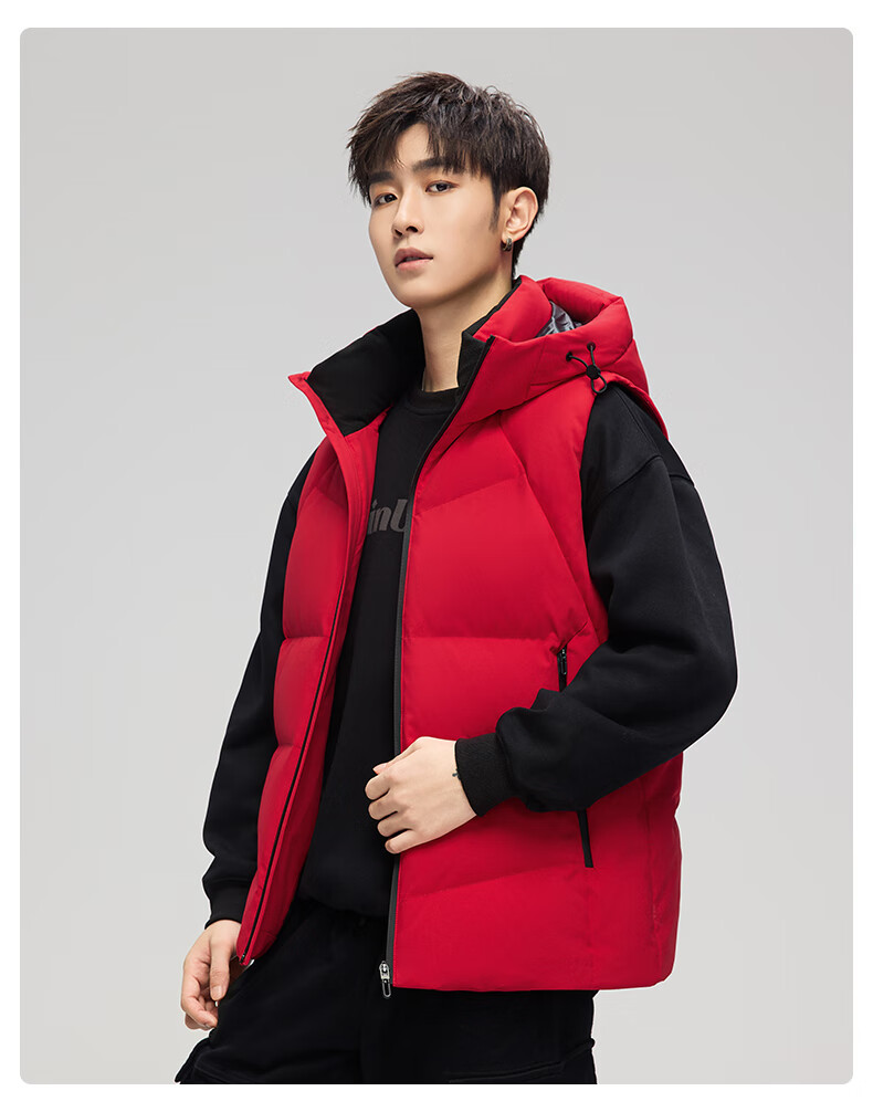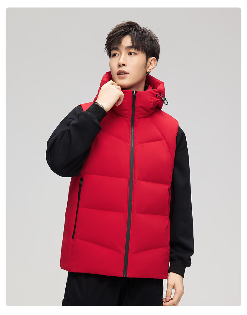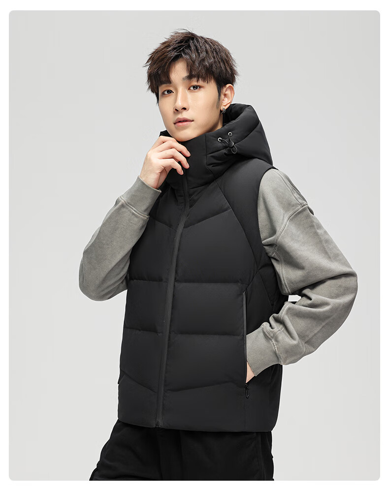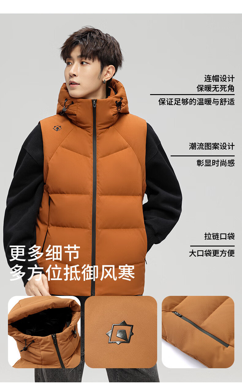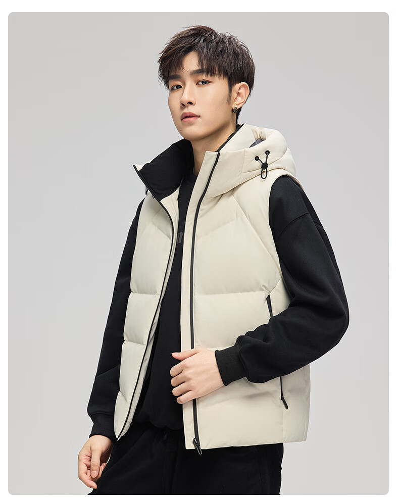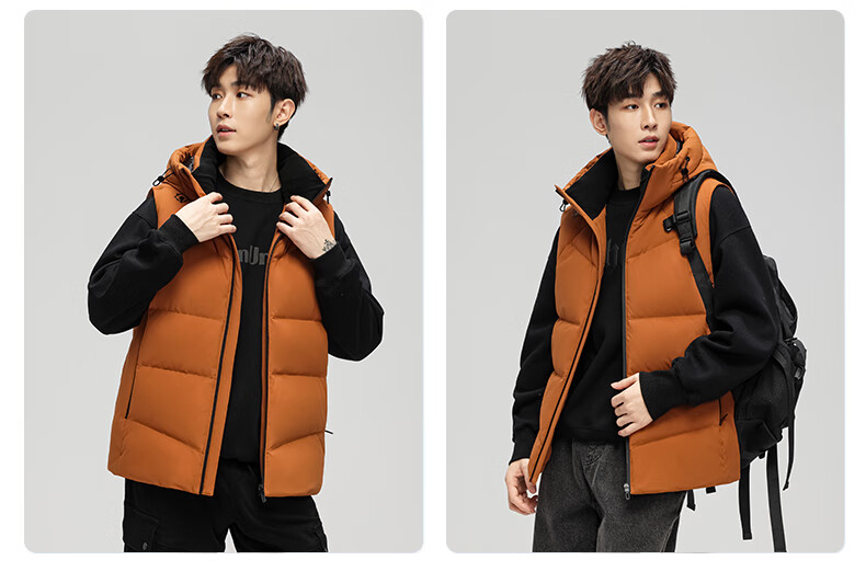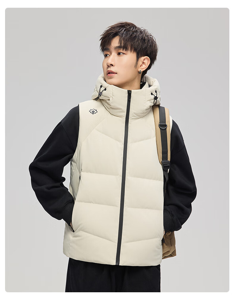鸭鸭2025男士短款羽绒马甲休闲百搭潮流连帽男女同款秋冬保暖显瘦外套