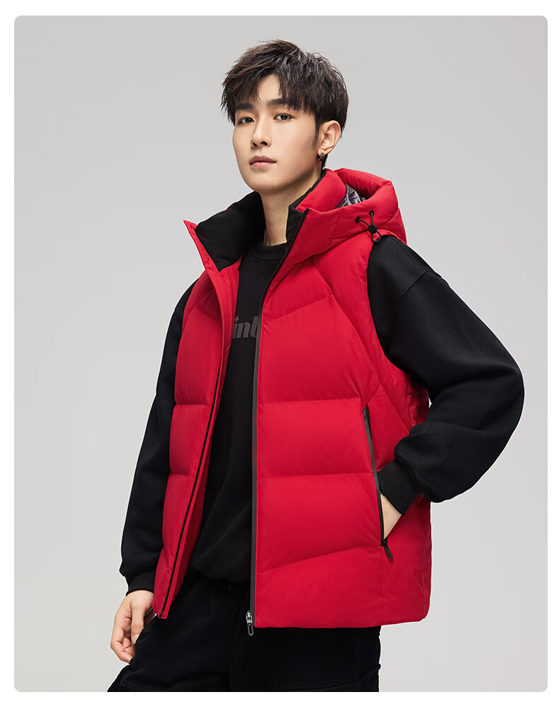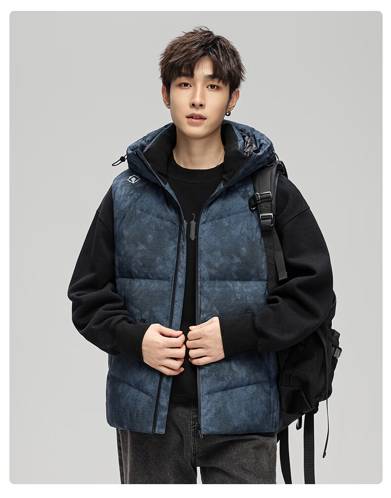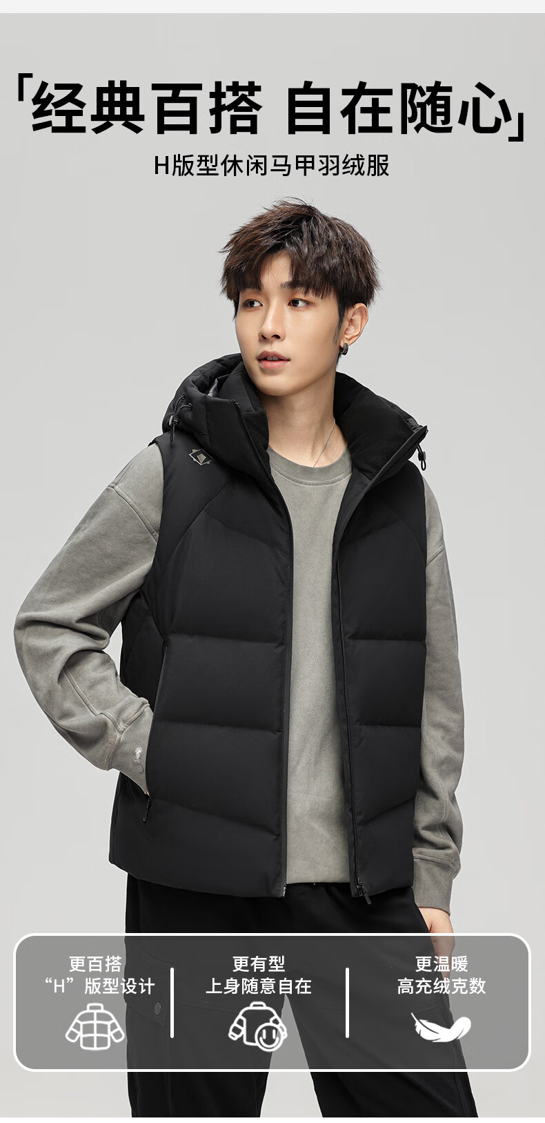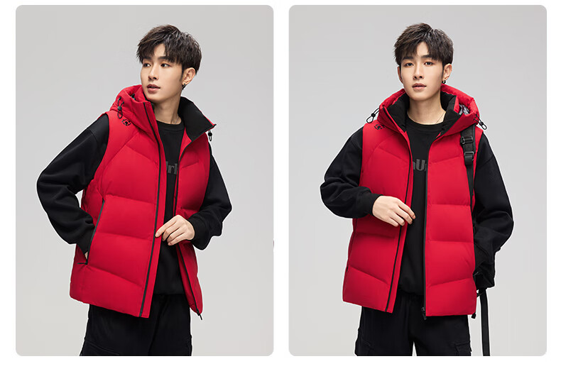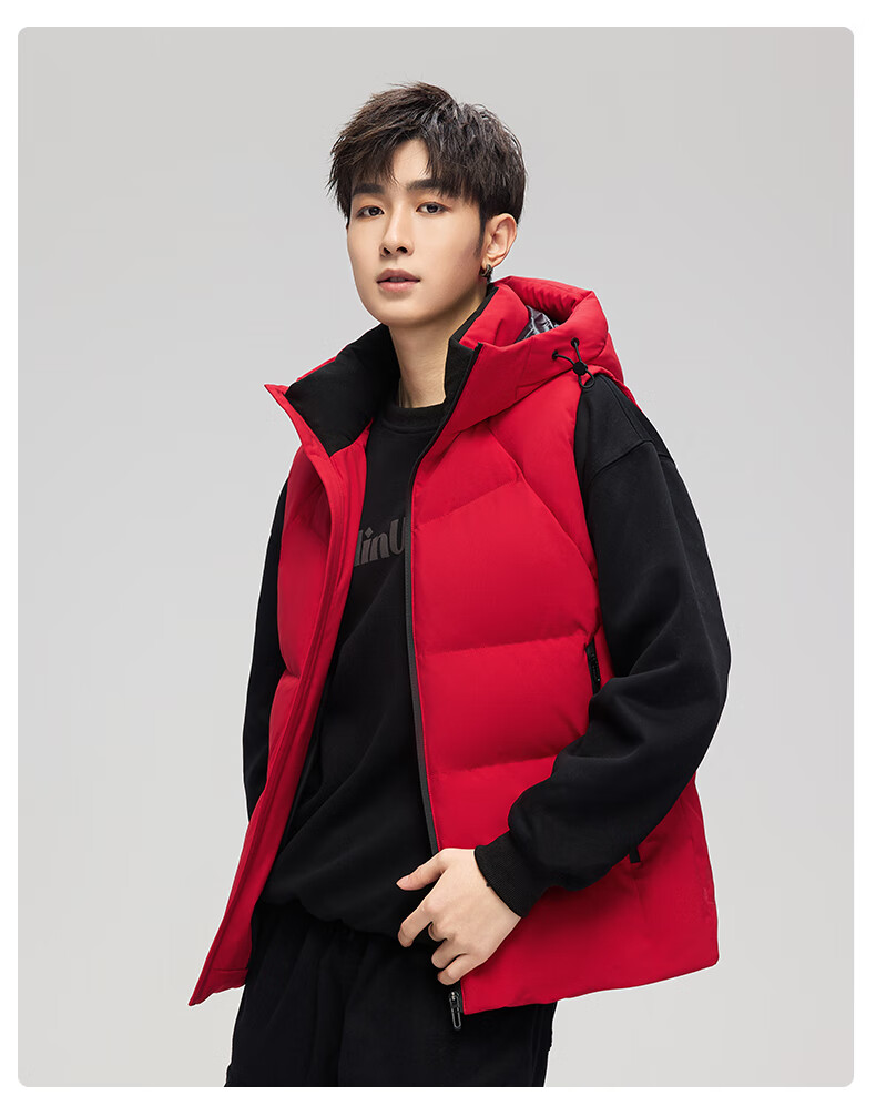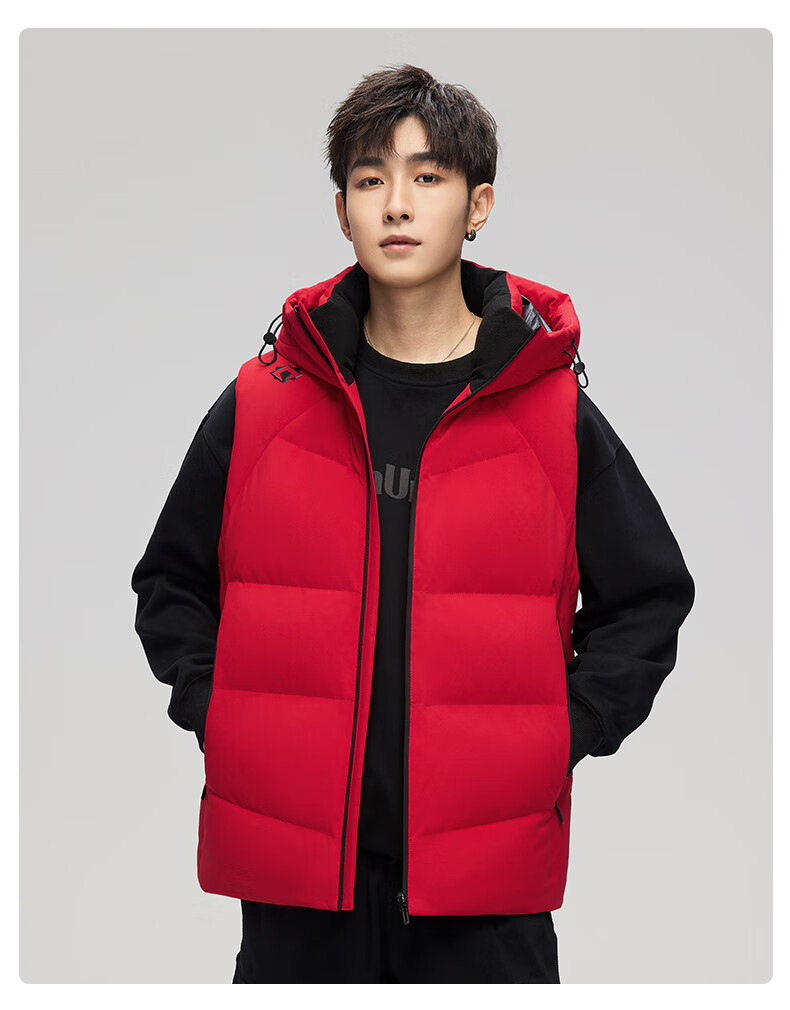 鸭鸭2025男士短款羽绒马甲休闲百搭潮流连帽男女同款秋冬保暖显瘦外套