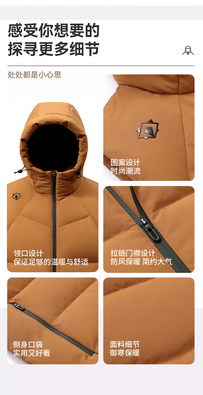啄木鸟(TUCANO)羽绒服男款外套冬季加厚保暖防寒休闲连帽面包服上衣 灰白 XL