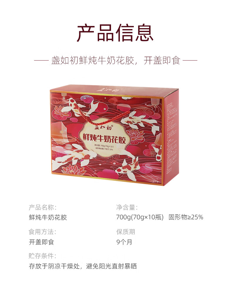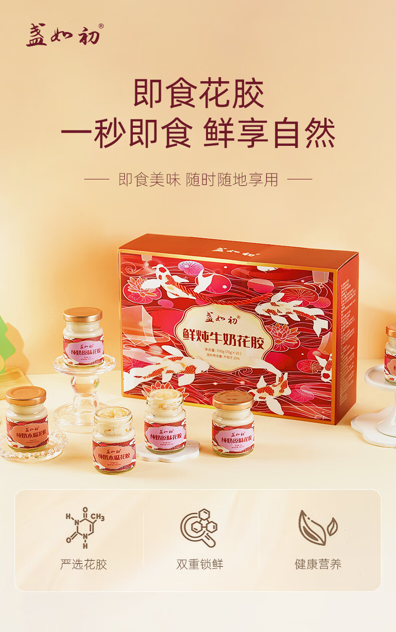盏如初即食纯奶鲜炖花胶羹孕妇胶原蛋白深海鱼胶送父母送朋友礼盒 鲜炖牛奶花胶【两口味 共20瓶/2盒】礼盒