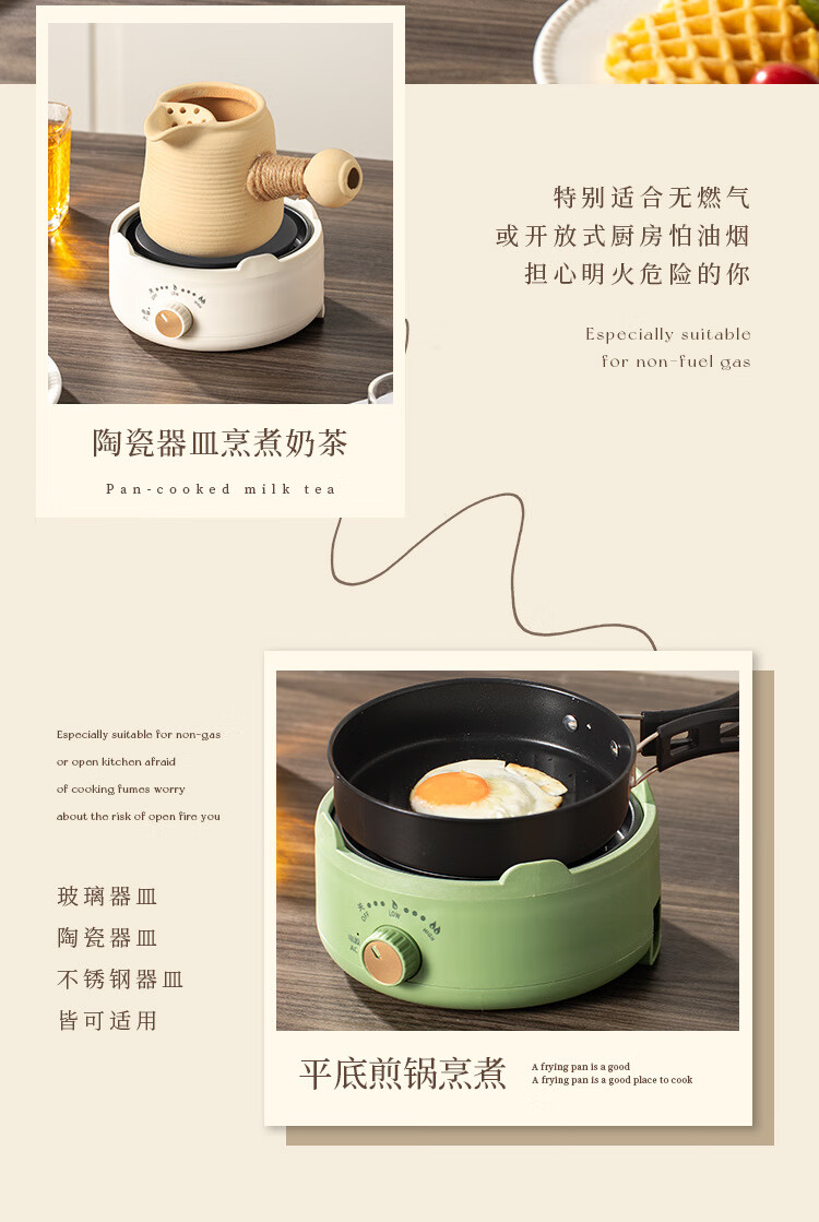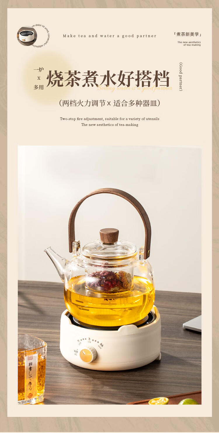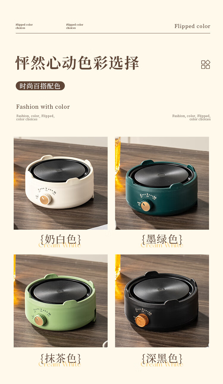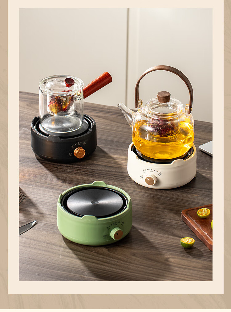 【厂家直发】多功能电陶炉茶炉家用煮茶器茶具电陶炉三合一煮茶器 【围边电热炉底座】-复古绿