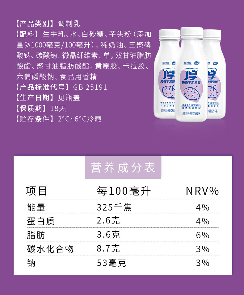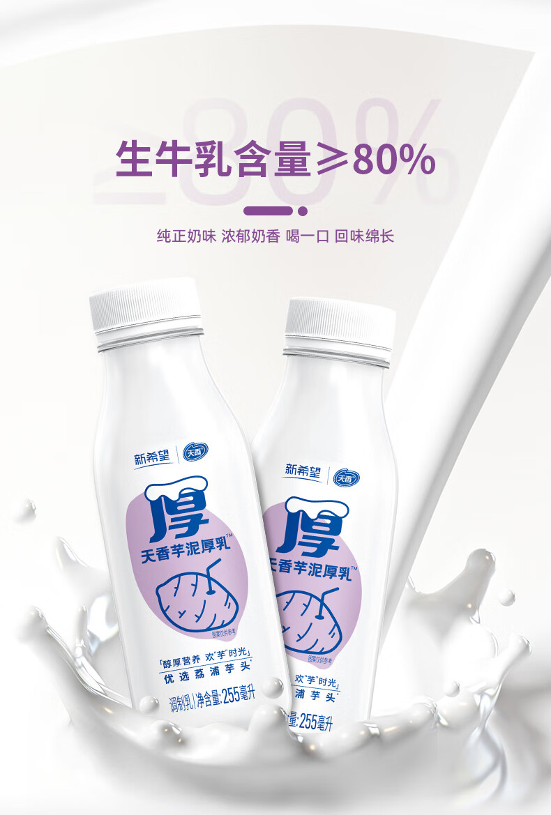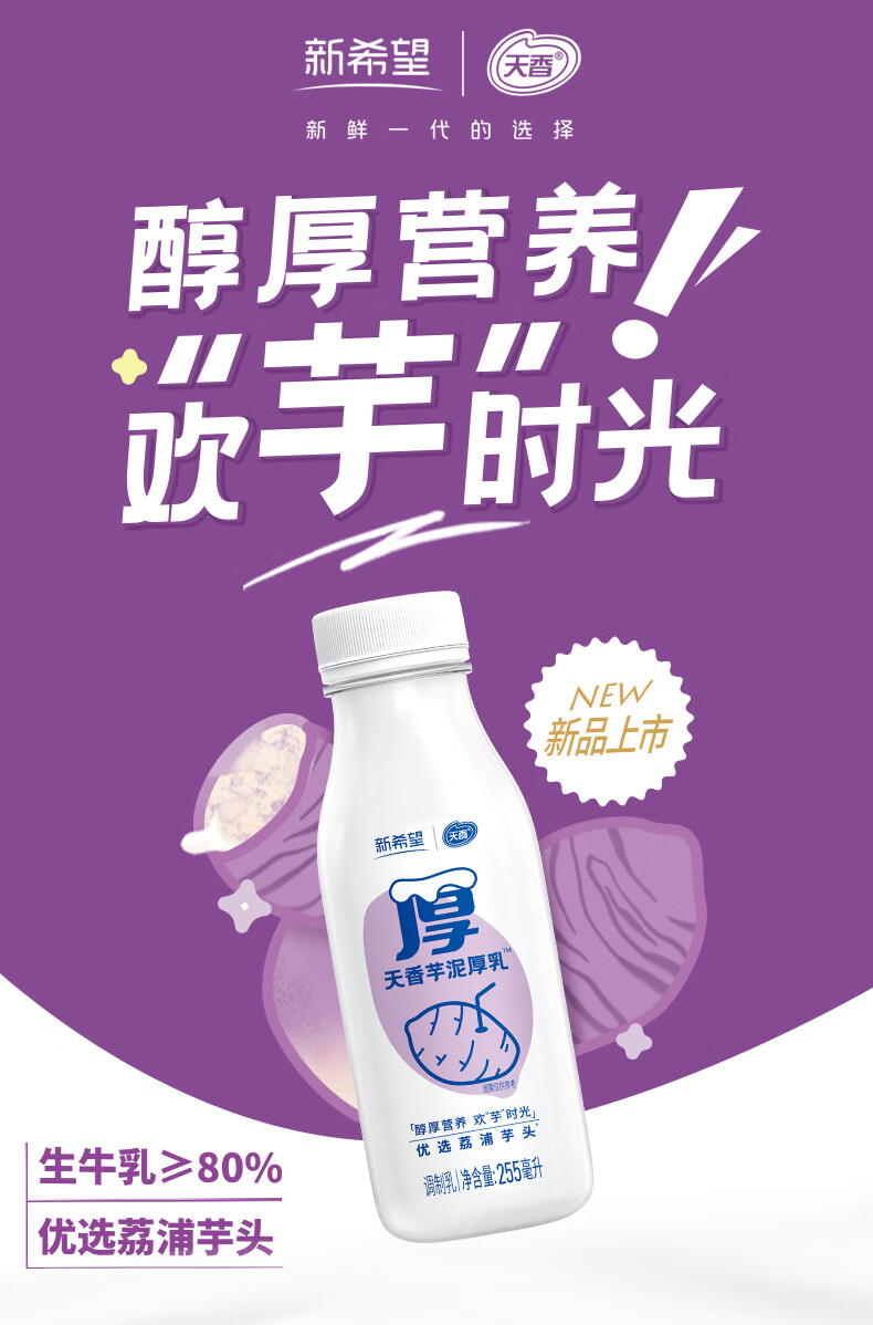 新希望芋泥厚乳255ml*5瓶 低温牛奶冷藏奶学生牛奶 源头直发包邮