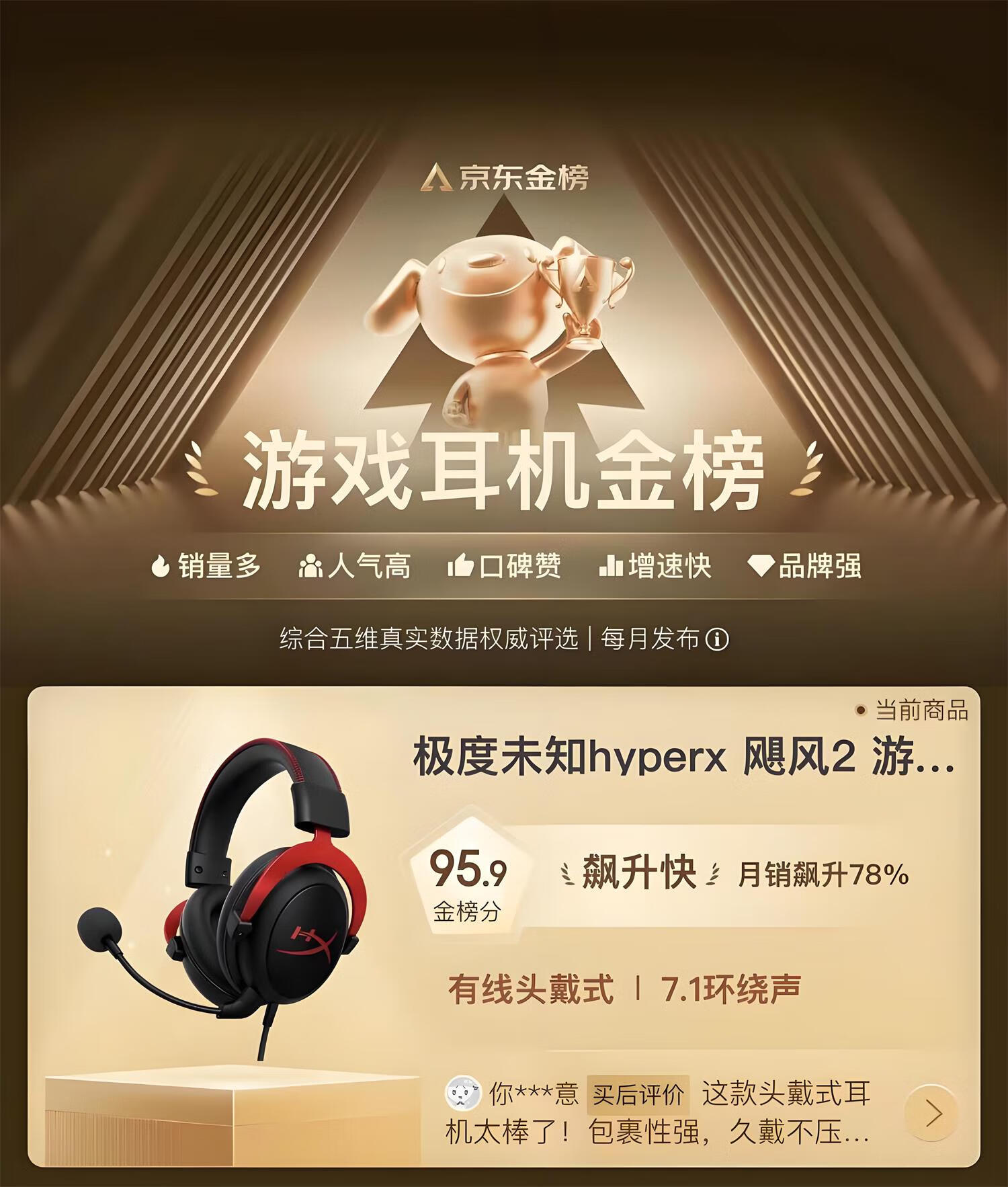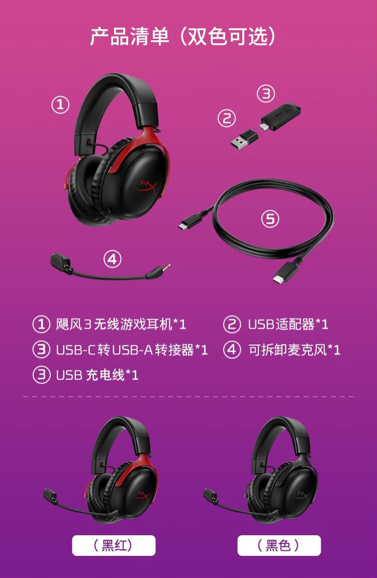 极度未知(HYPERX)飓风2飓风3电竞游戏耳机头戴式 有线无线电脑FPS吃鸡ps5专用耳麦 适配三角洲行动 无畏契约 【飓风2黑红】金榜精选丨职业爆款