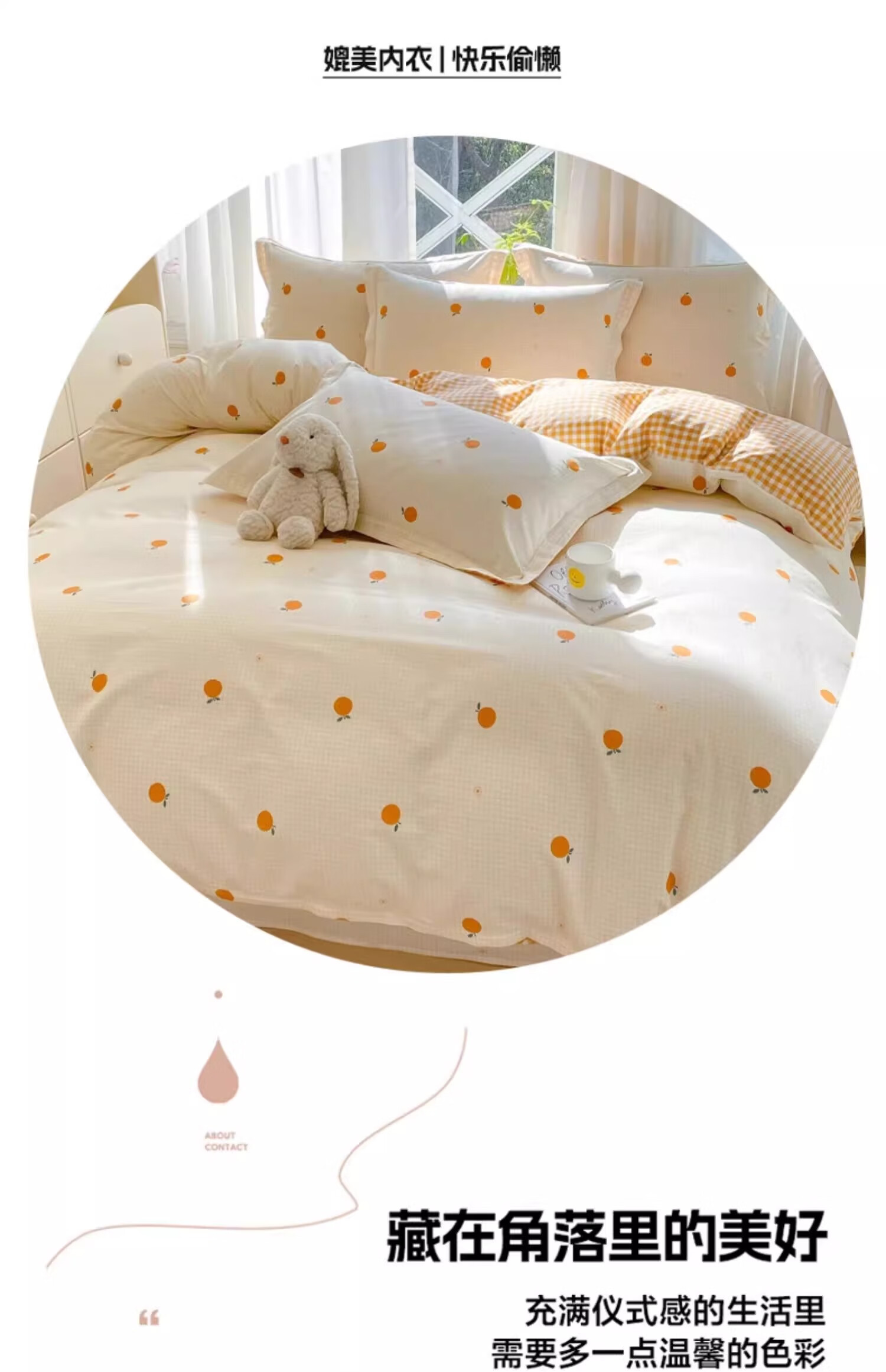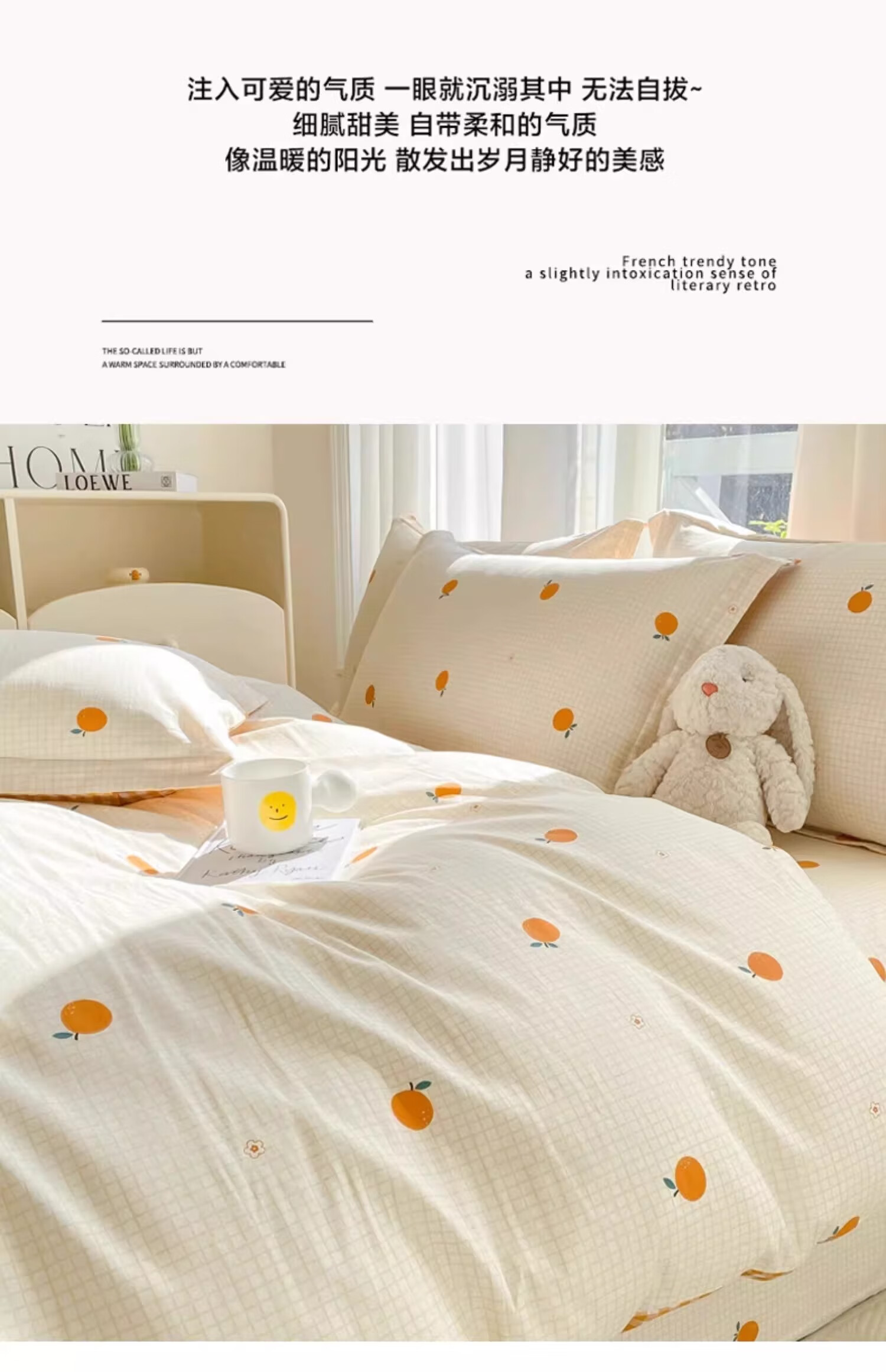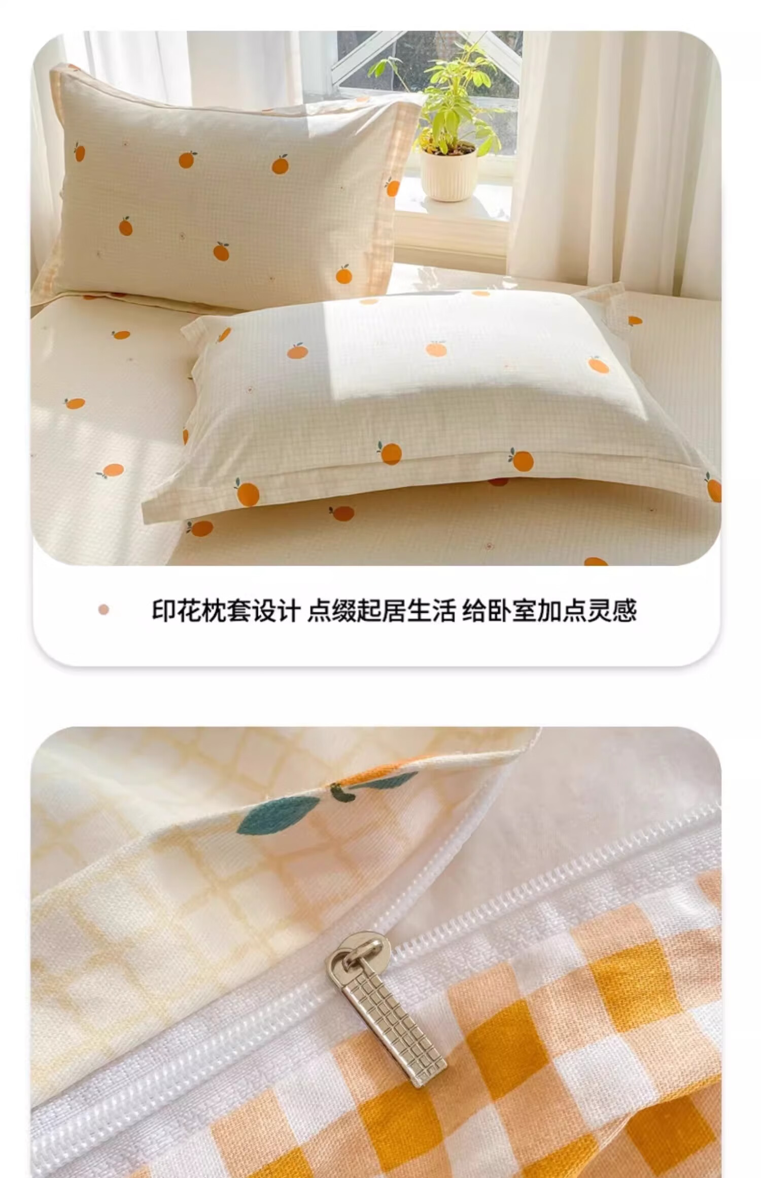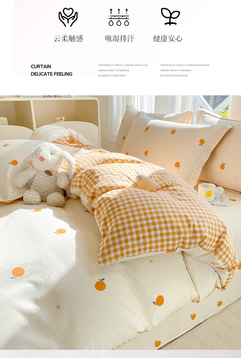 无印良品小清新全棉被套200x230cm纯棉被罩单件床单学生宿舍 甜橙 【单被套】 200cm*230cm