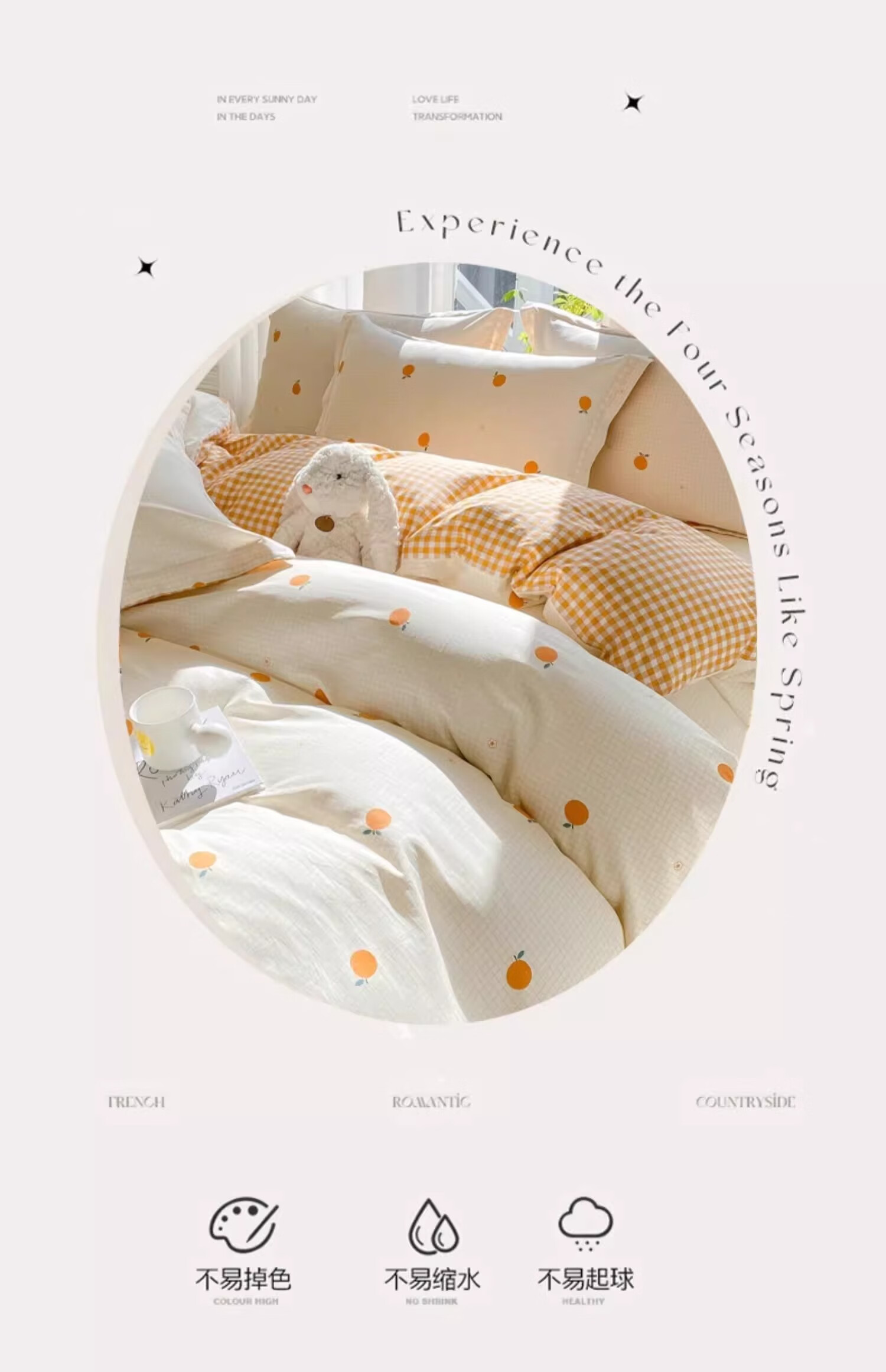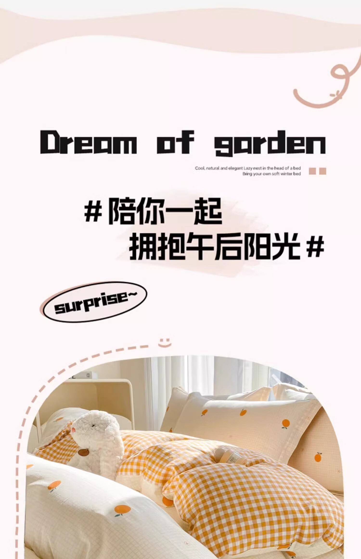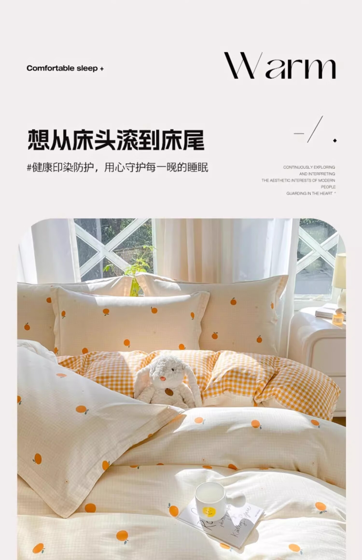 无印良品小清新全棉被套200x230cm纯棉被罩单件床单学生宿舍 甜橙 【单被套】 200cm*230cm