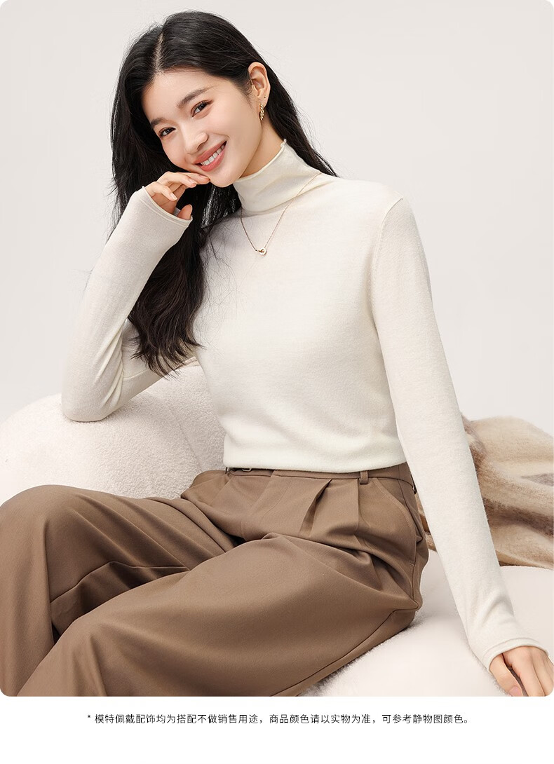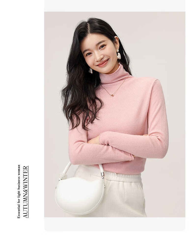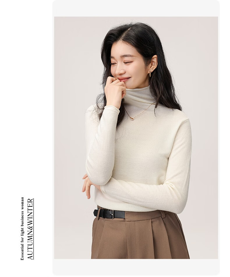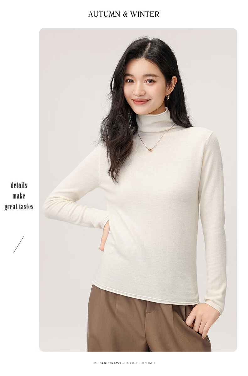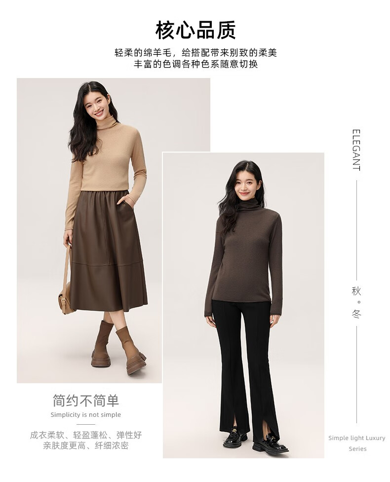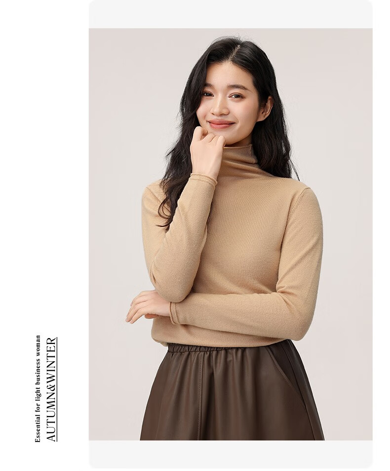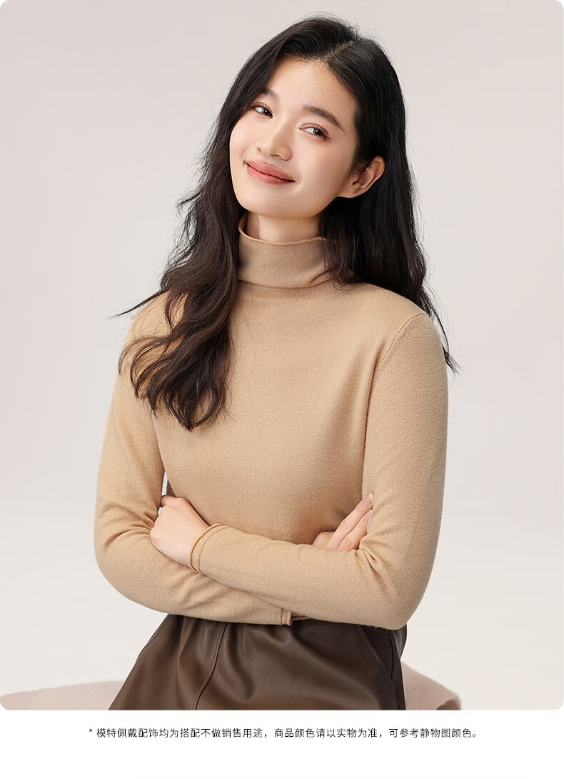 雅鹿羊毛衫女100%纯羊毛2025新款高领纯色时尚毛衣秋冬季打底针织衫 卡其色 L