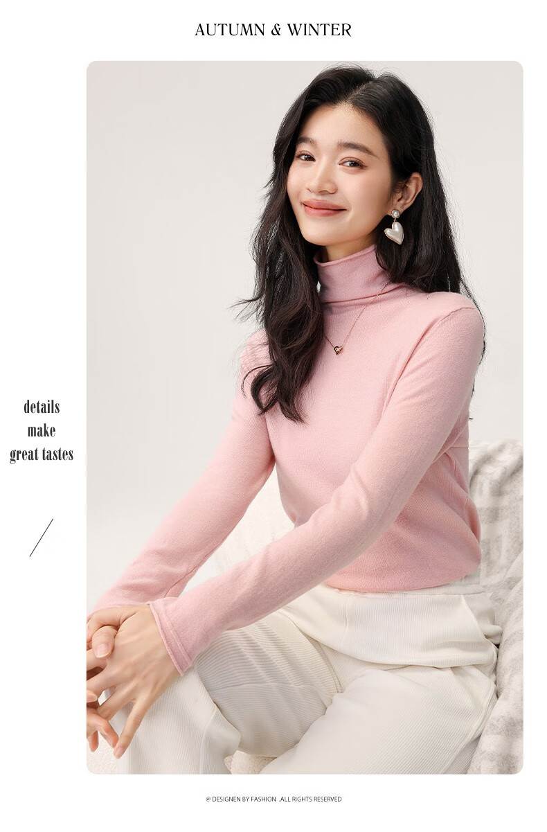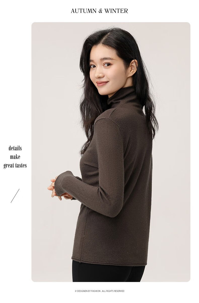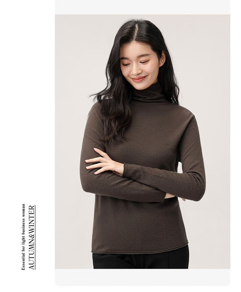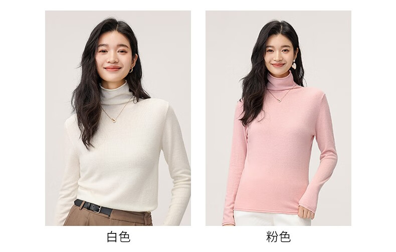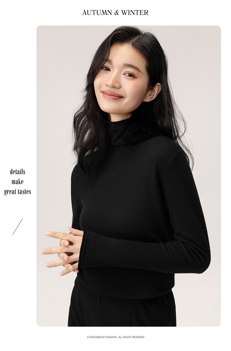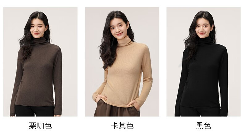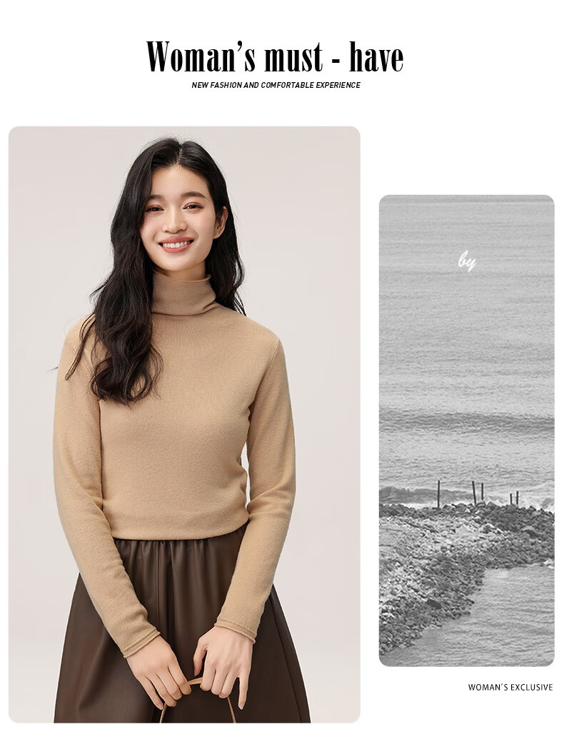 雅鹿羊毛衫女100%纯羊毛2025新款高领纯色时尚毛衣秋冬季打底针织衫 卡其色 L