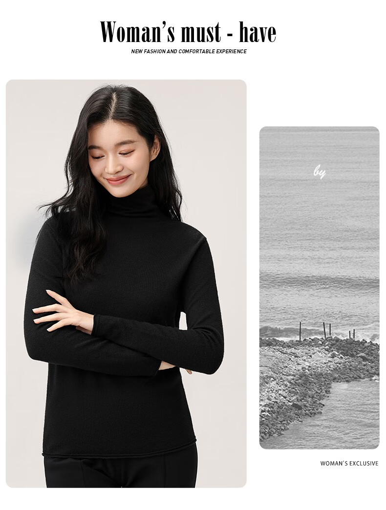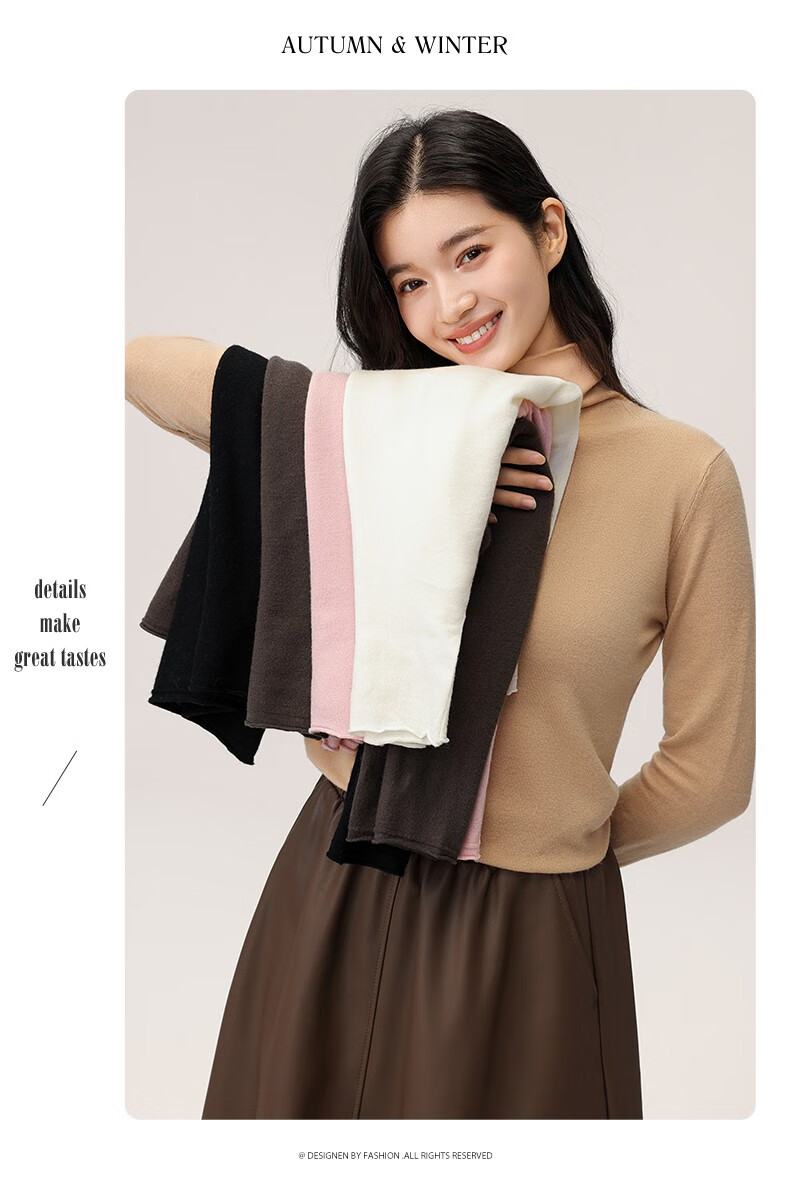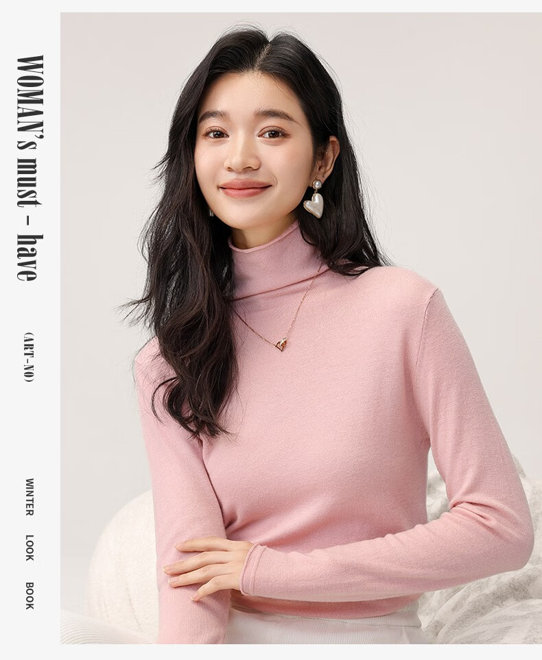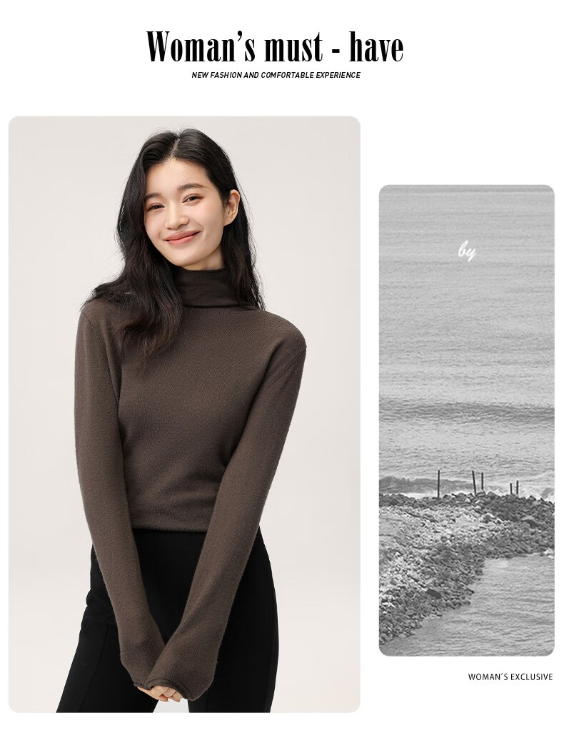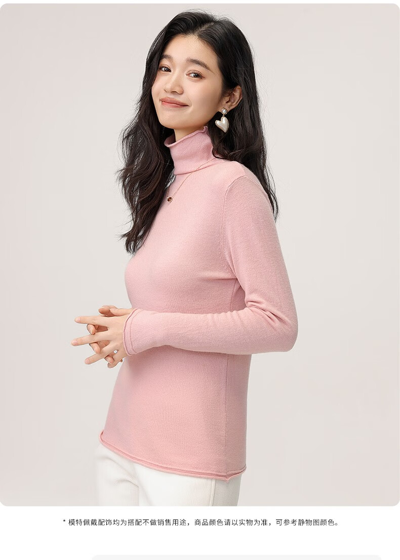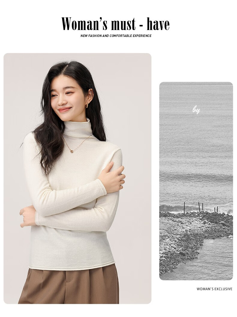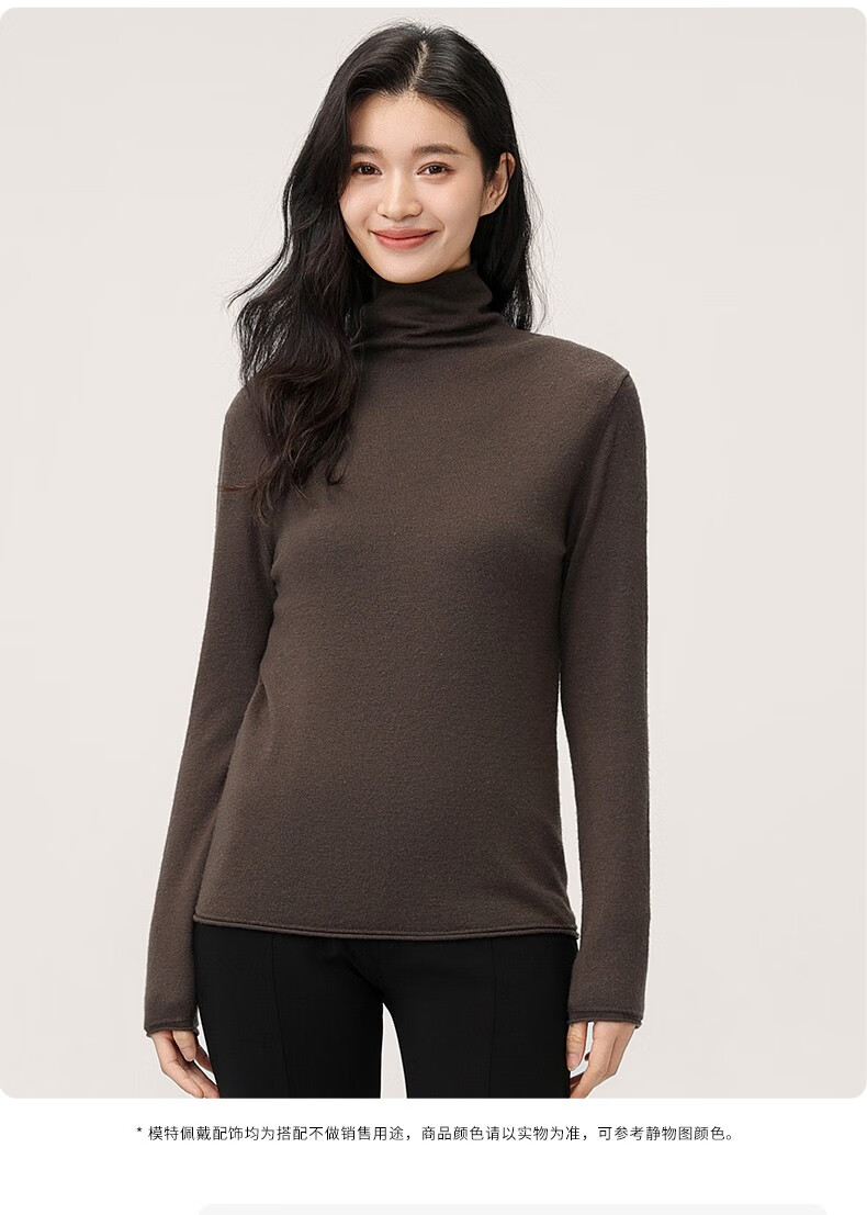 雅鹿羊毛衫女100%纯羊毛2025新款高领纯色时尚毛衣秋冬季打底针织衫 卡其色 L