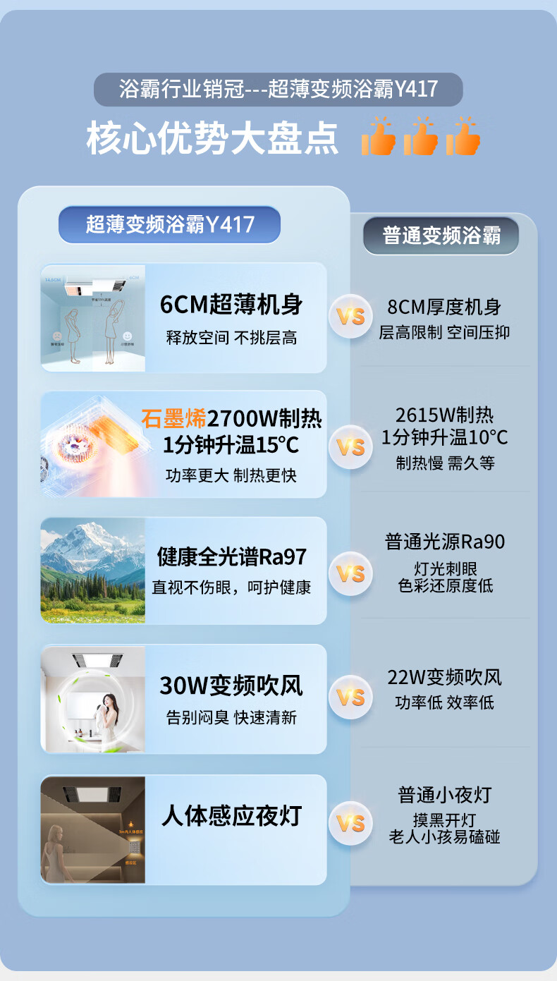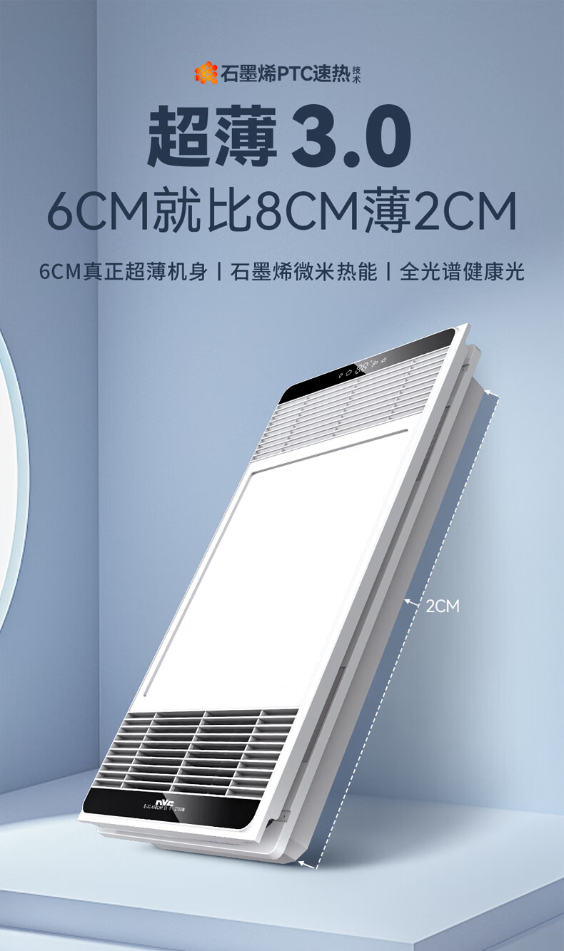 雷士(NVC)政府补贴风暖变频超薄浴霸人感夜灯浴室暖风照明排风换气一体Y417