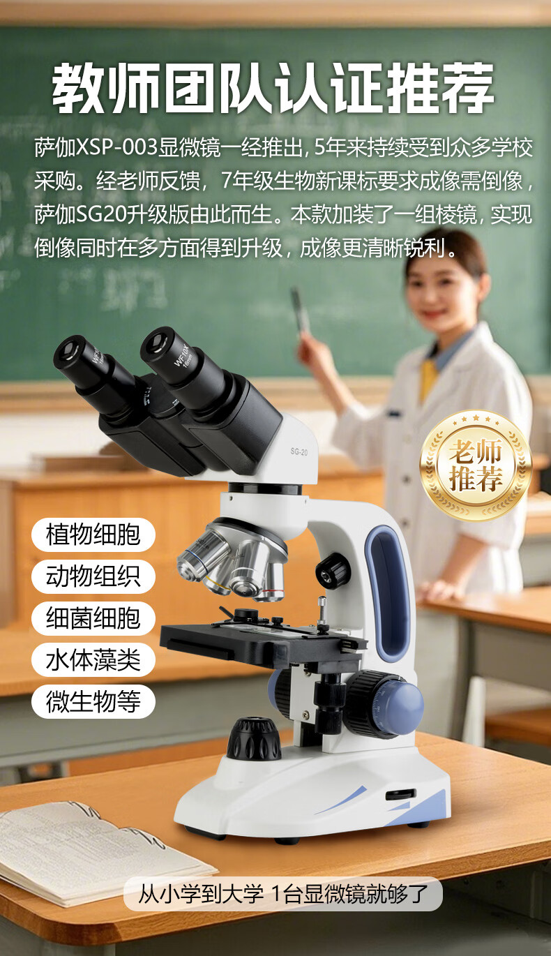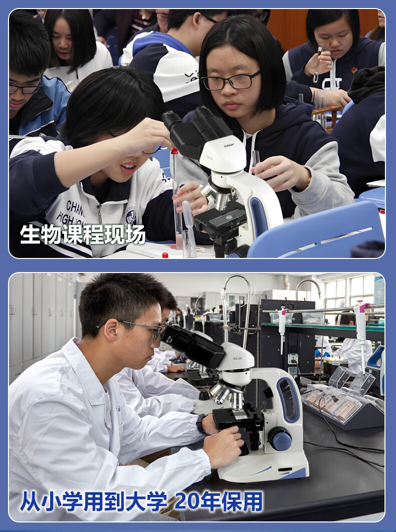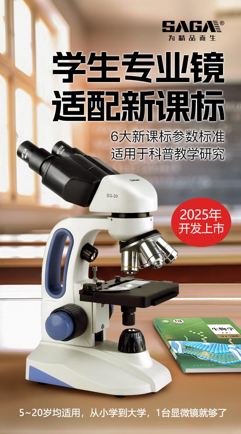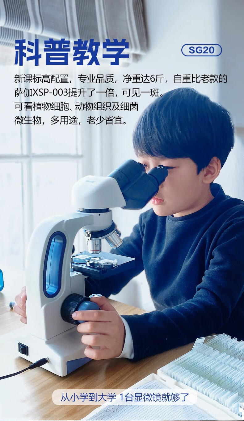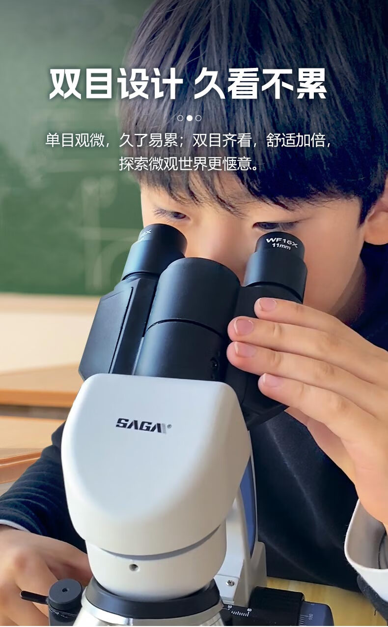 萨伽(SAGA)光学显微镜儿童初中生中考专用学校同款高倍高清双目专业级SG20 套餐1:官方标配【双目四孔1600X】