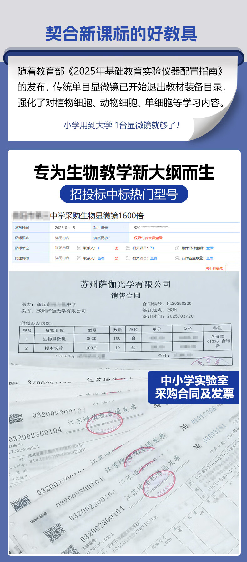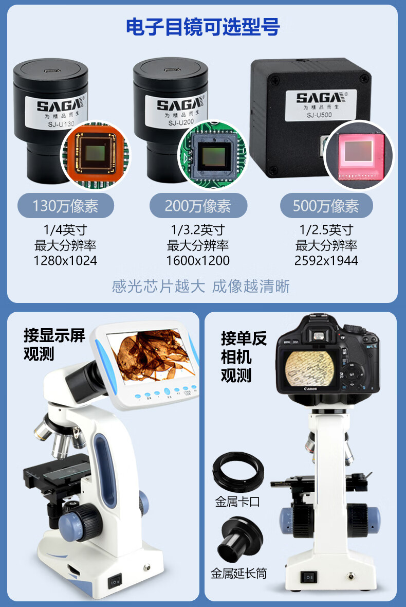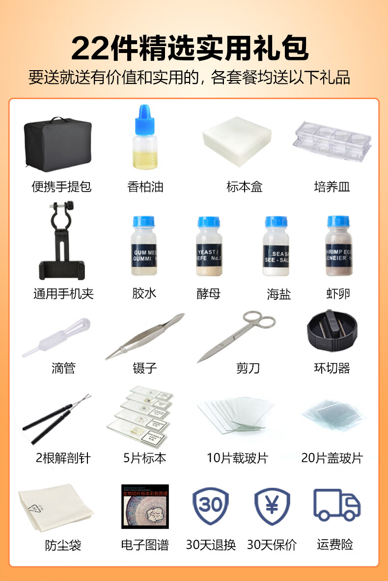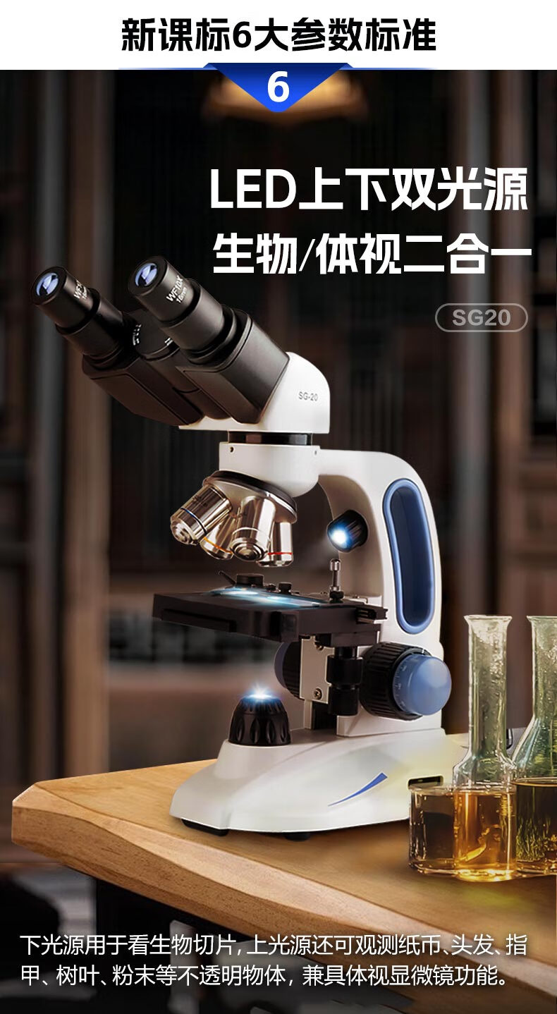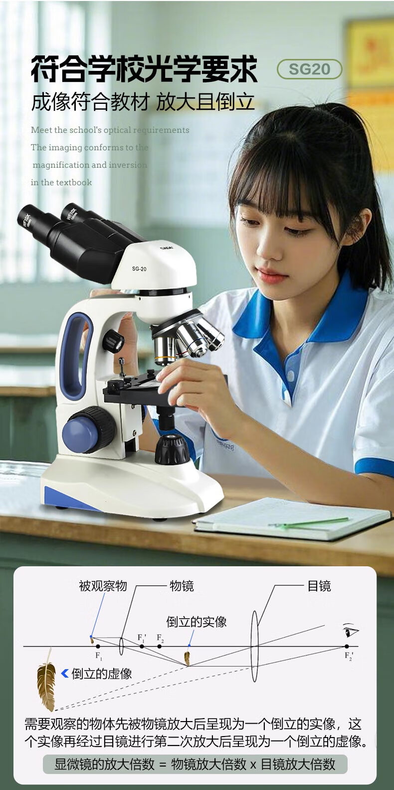 萨伽(SAGA)光学显微镜儿童初中生中考专用学校同款高倍高清双目专业级SG20 套餐1:官方标配【双目四孔1600X】