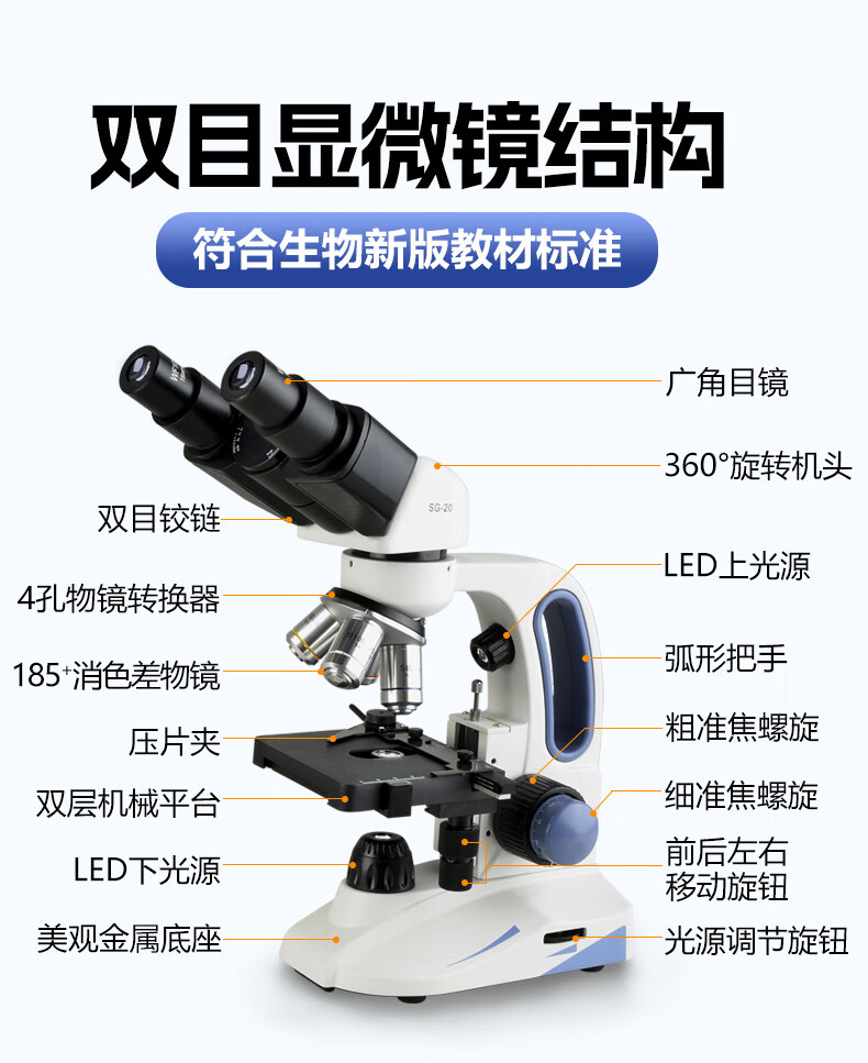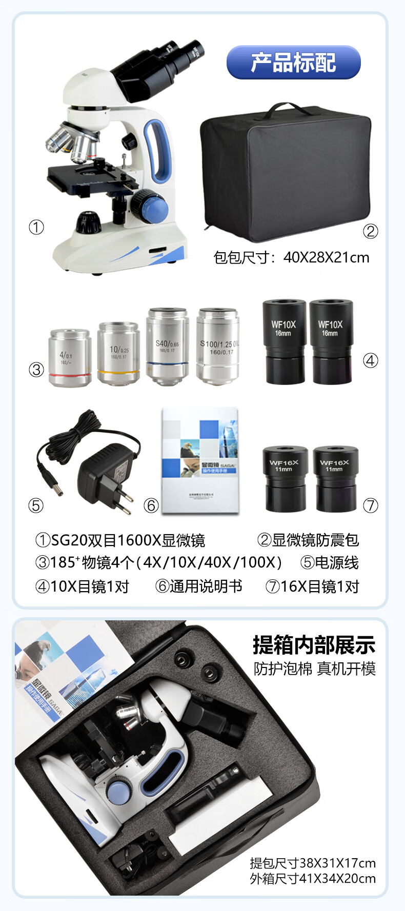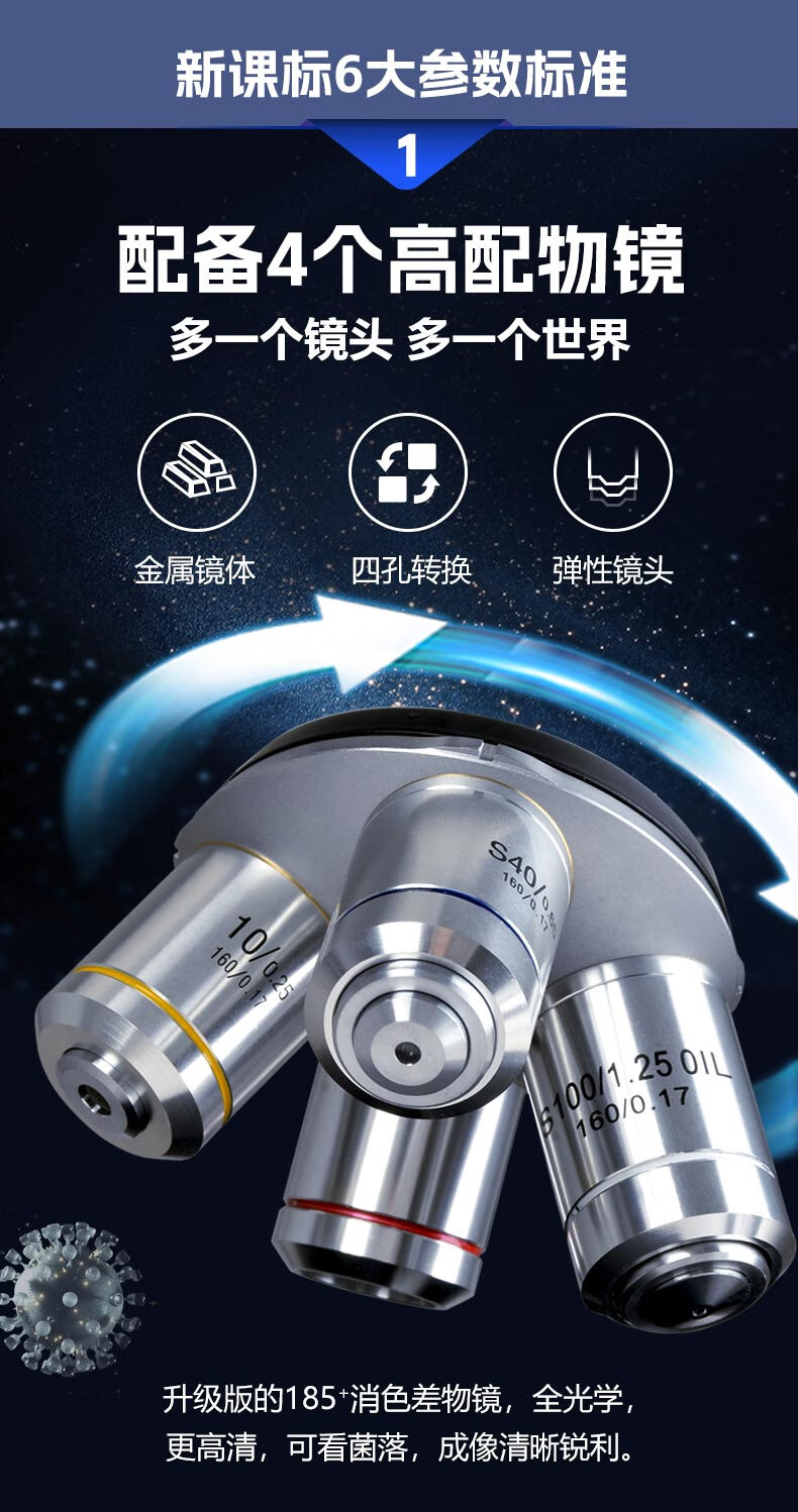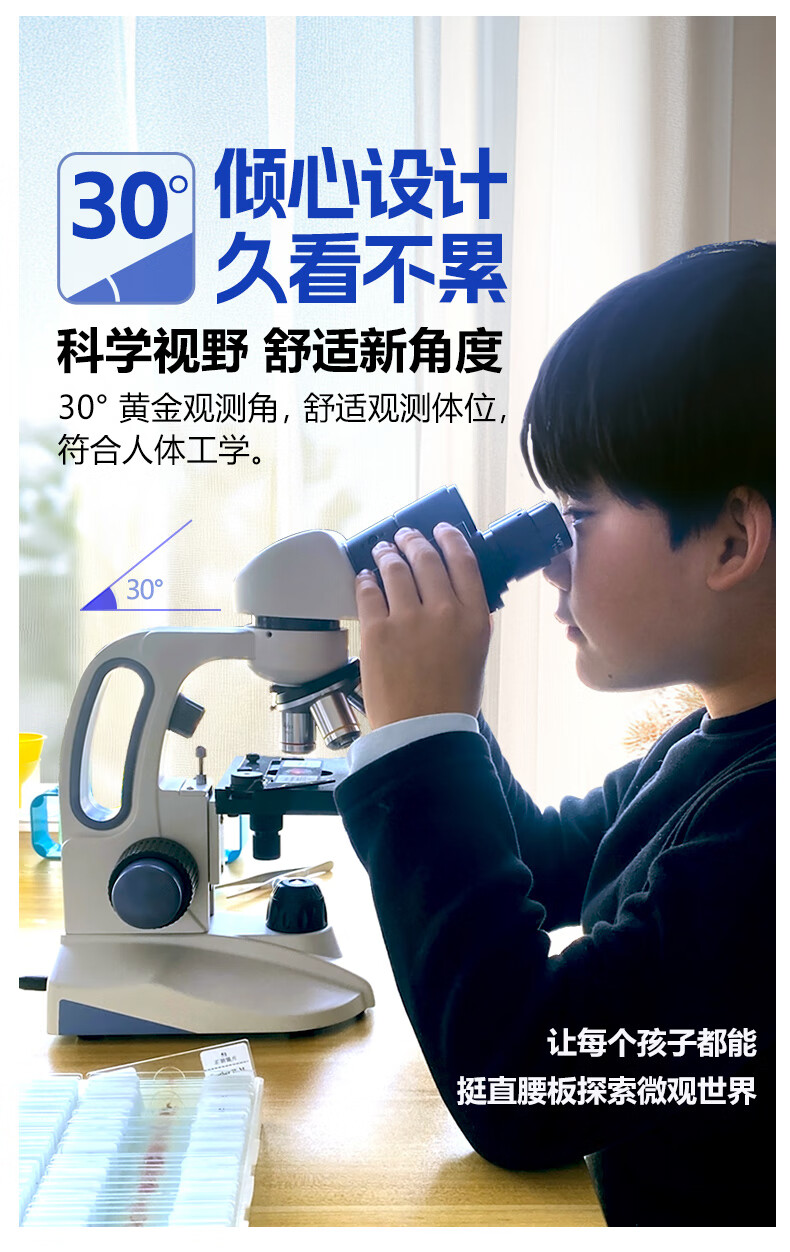 萨伽(SAGA)光学显微镜儿童初中生中考专用学校同款高倍高清双目专业级SG20 套餐1:官方标配【双目四孔1600X】