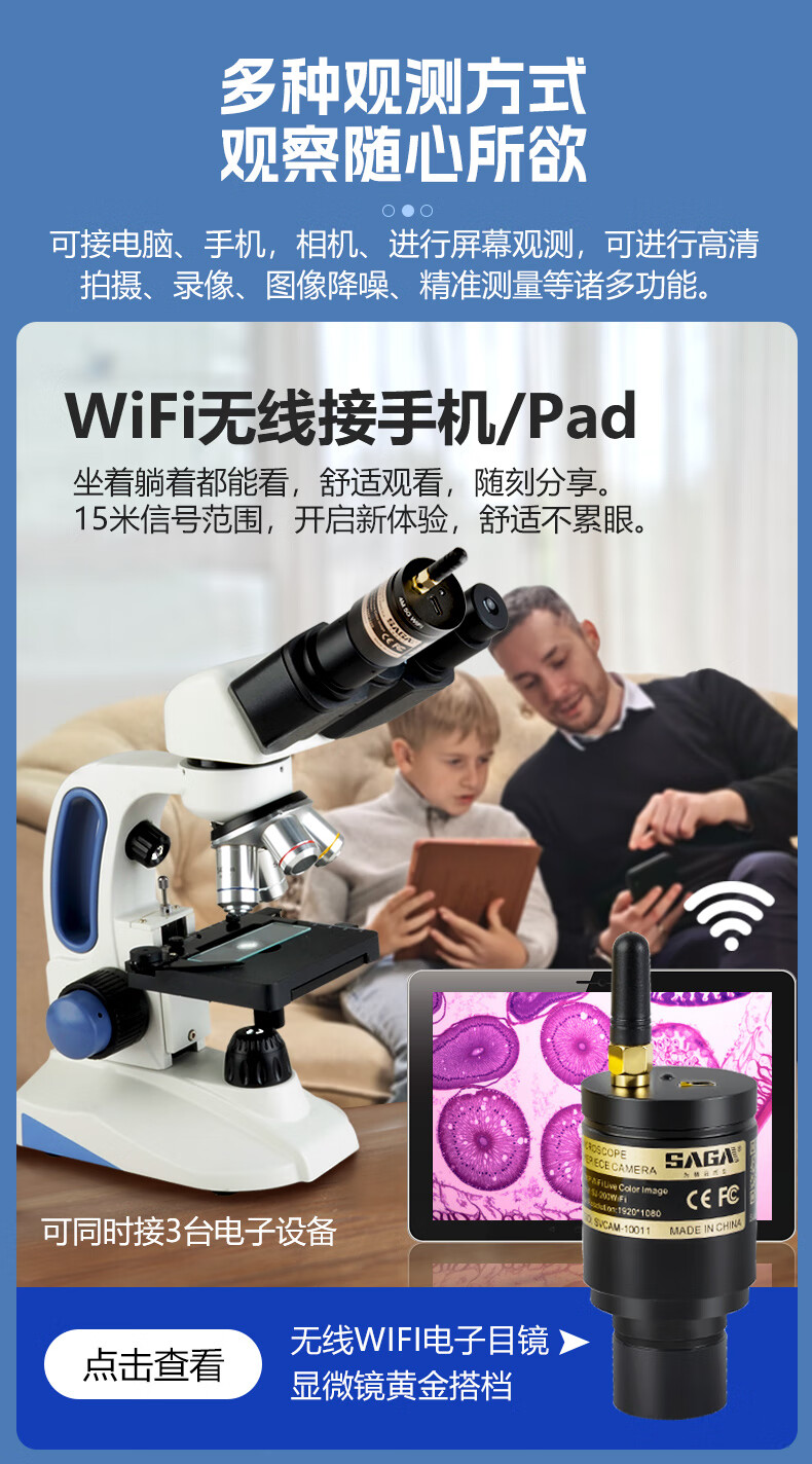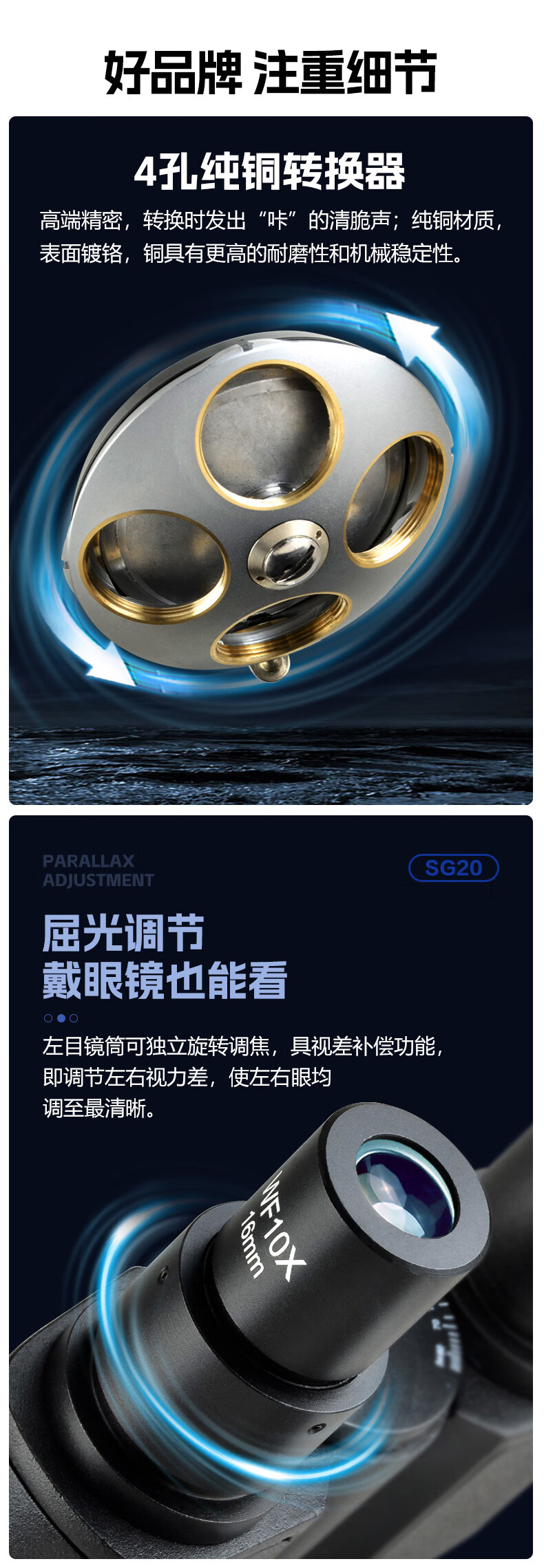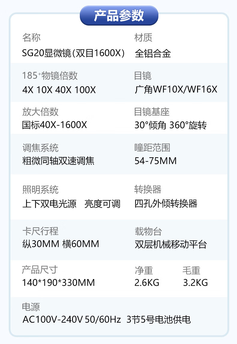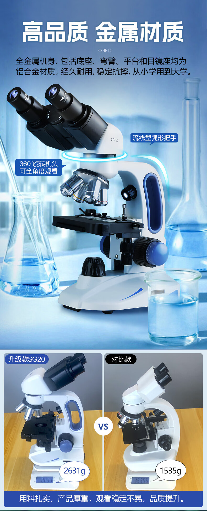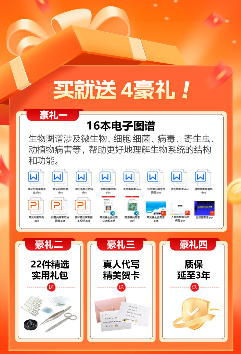 萨伽(SAGA)光学显微镜儿童初中生中考专用学校同款高倍高清双目专业级SG20 套餐1:官方标配【双目四孔1600X】