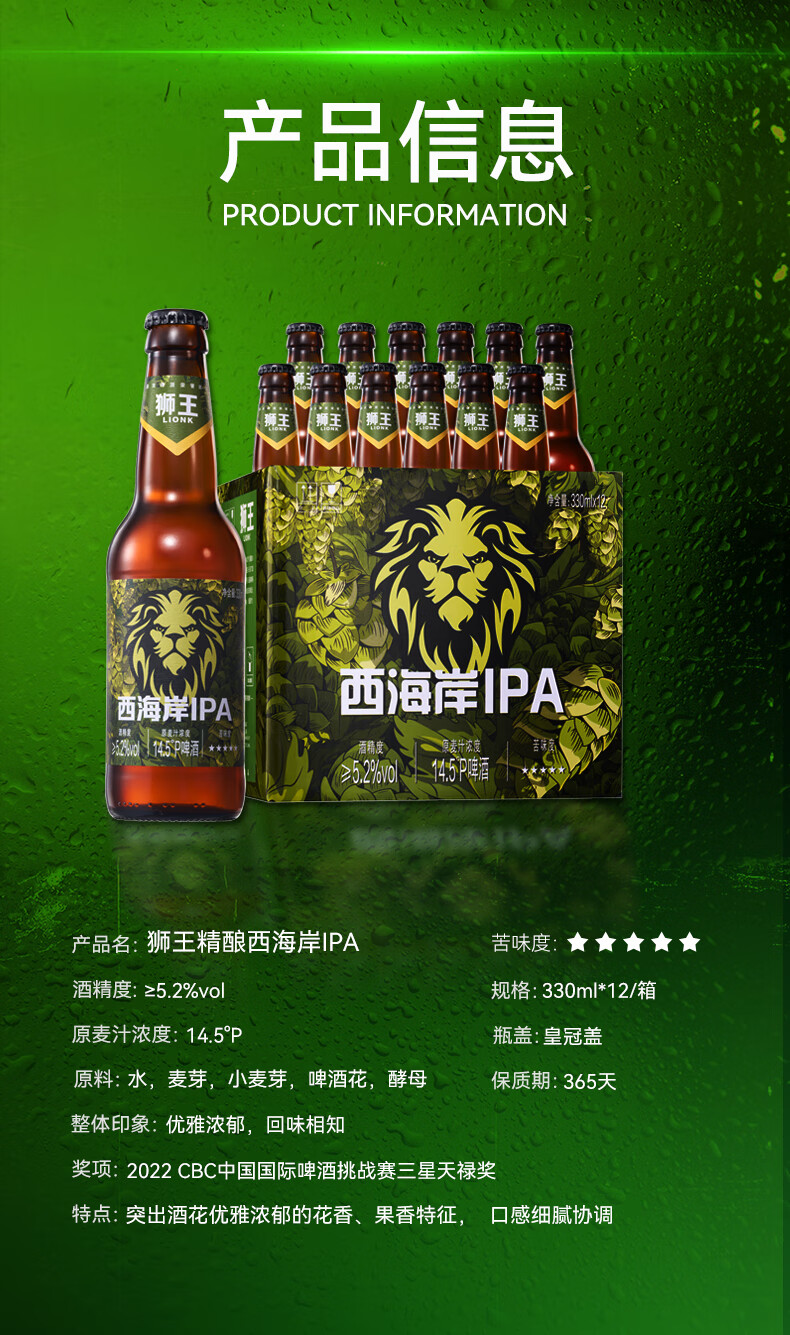 狮王精酿啤酒 燕京啤酒 燕京狮王精酿啤酒 西海岸 330mL 12瓶