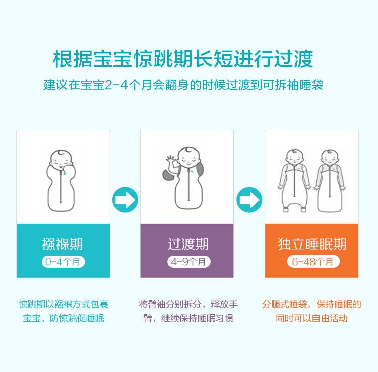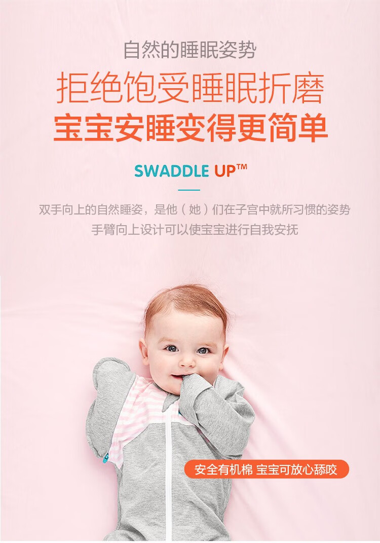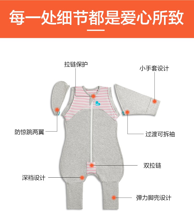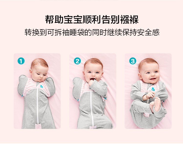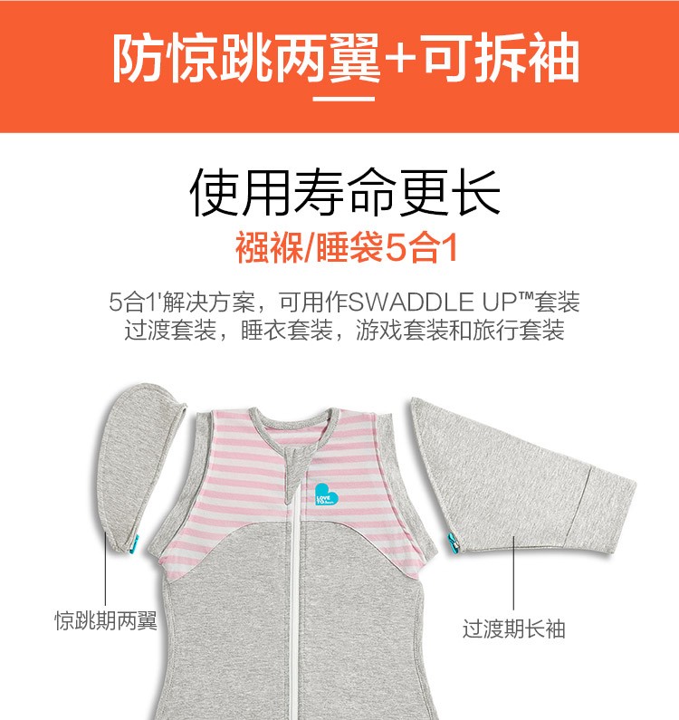 LOVE TO dream防惊跳睡袋新生儿婴儿四季通用襁褓式睡袋可拆袖儿童投降式防踢被 灰色条纹 四季通用 L码:13-20斤 (约6-9个月)