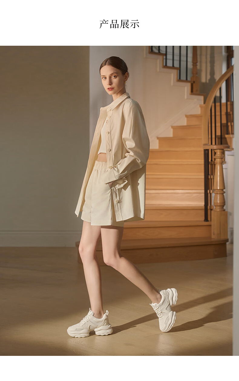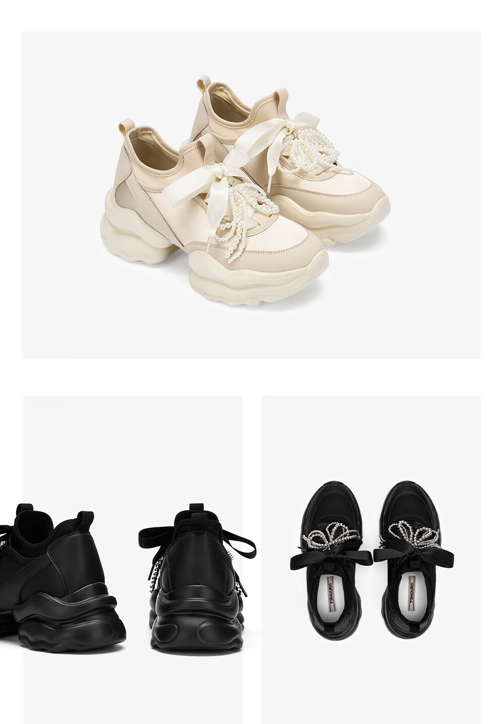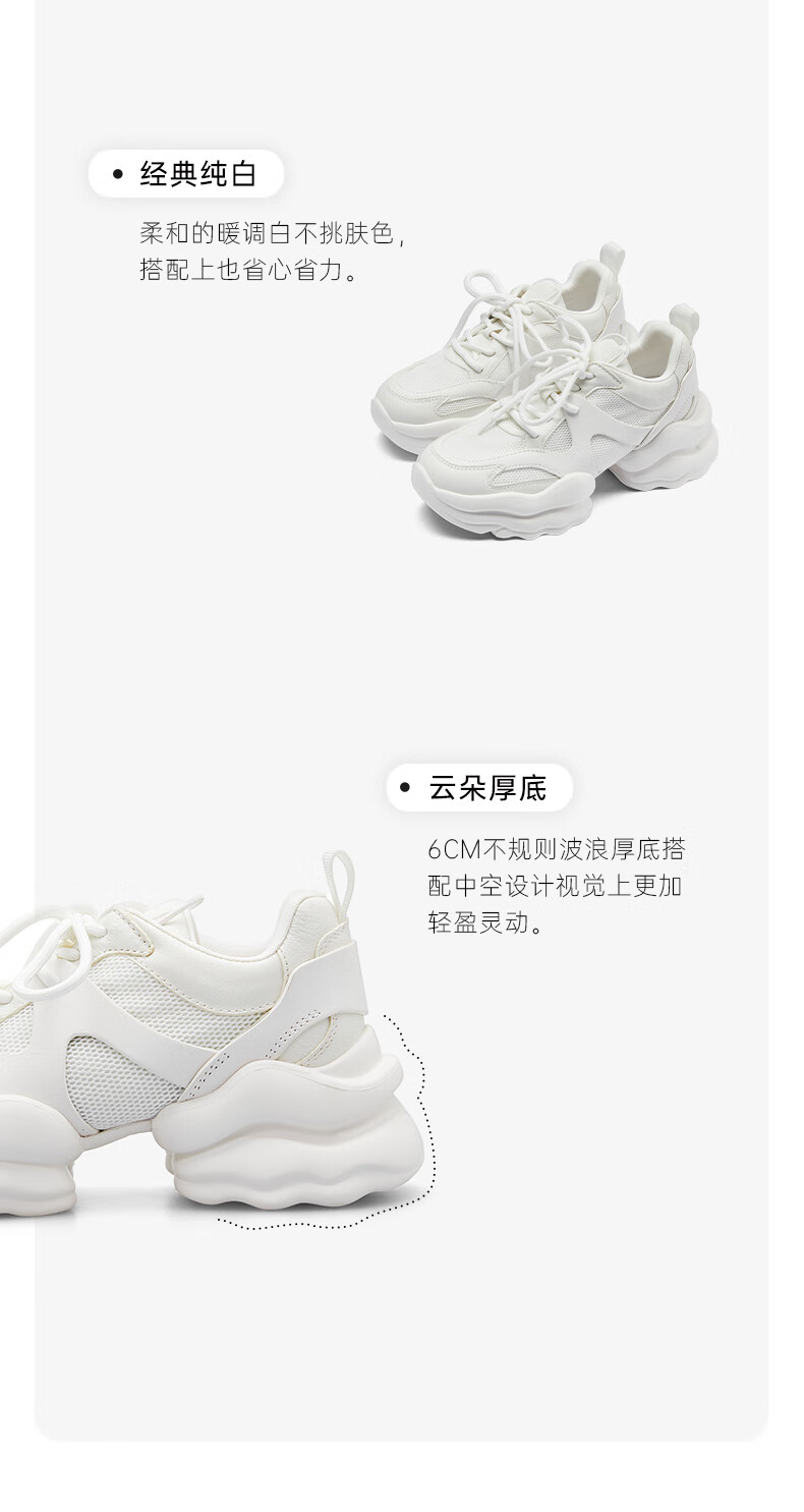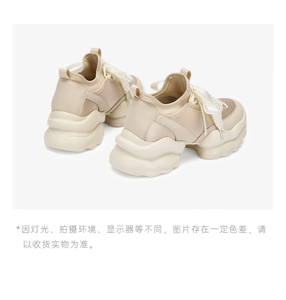 百思图商场同款运动透气老爹鞋轻便厚底女休闲鞋 米色D3058AM5 36