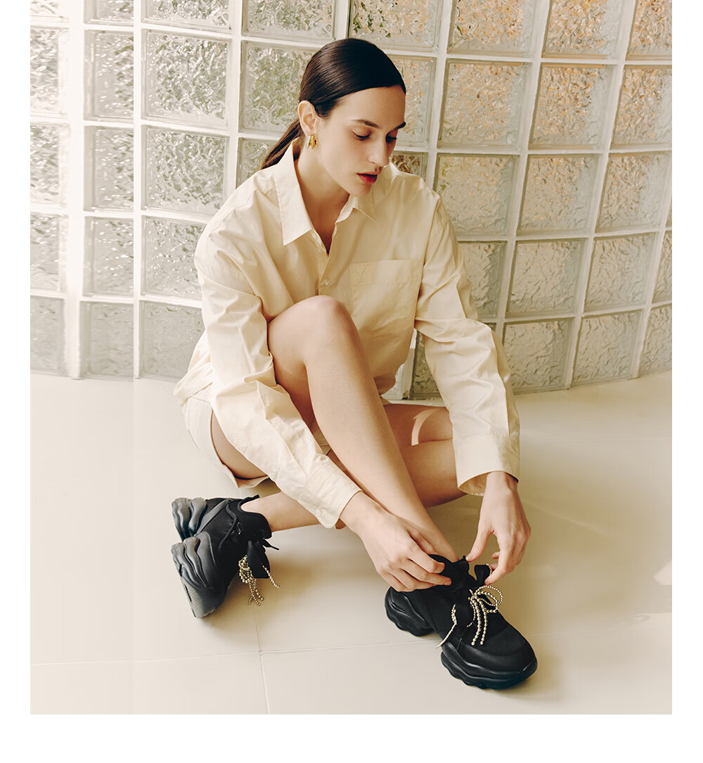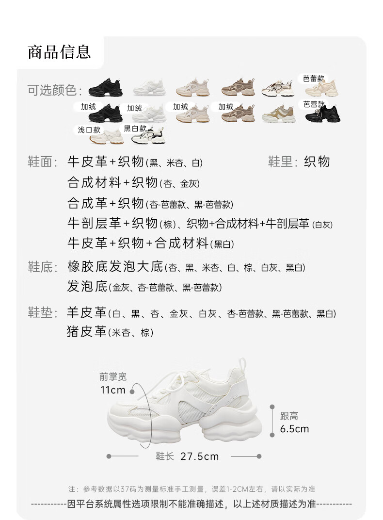 百思图25春户外运动小白鞋厚底圆头女休闲鞋V0121AM5 白色/黑色 39
