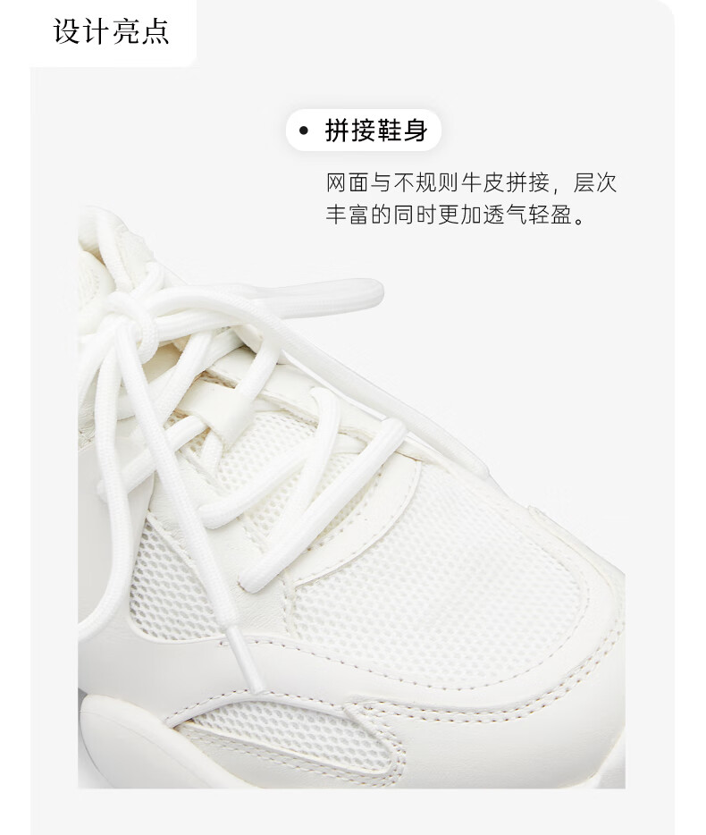 百思图25春户外运动小白鞋厚底圆头女休闲鞋V0121AM5 白色/银色 35