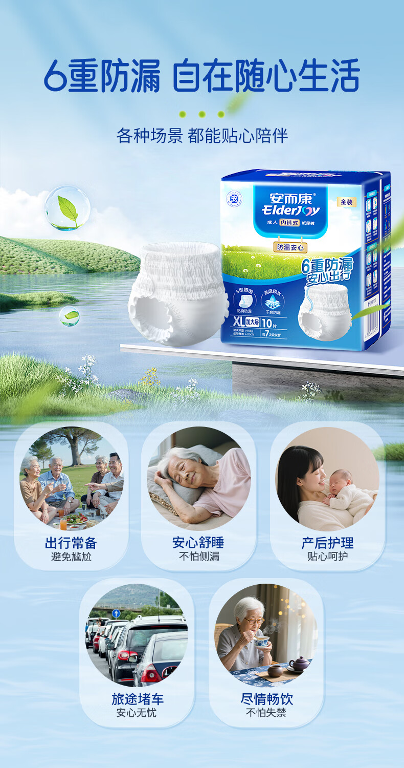 安而康(Elderjoy)防漏安心成人拉拉裤XL60片臀围>110cm内裤式成人纸尿裤透气易穿脱