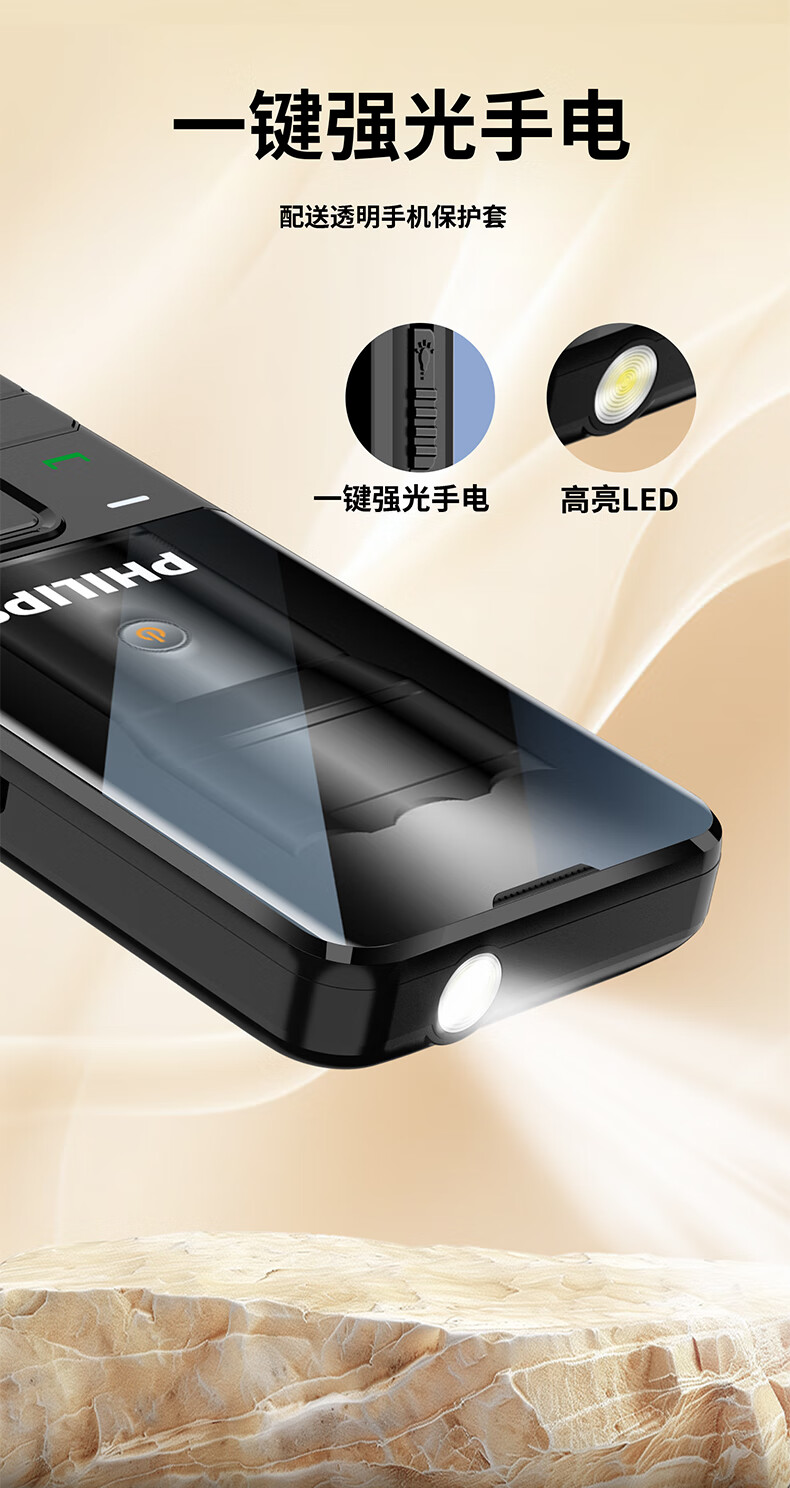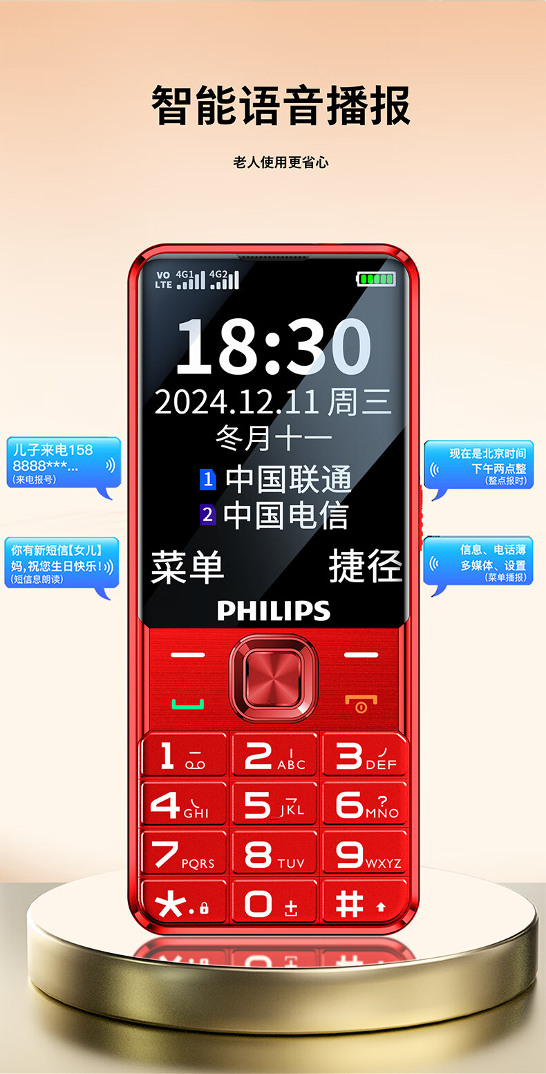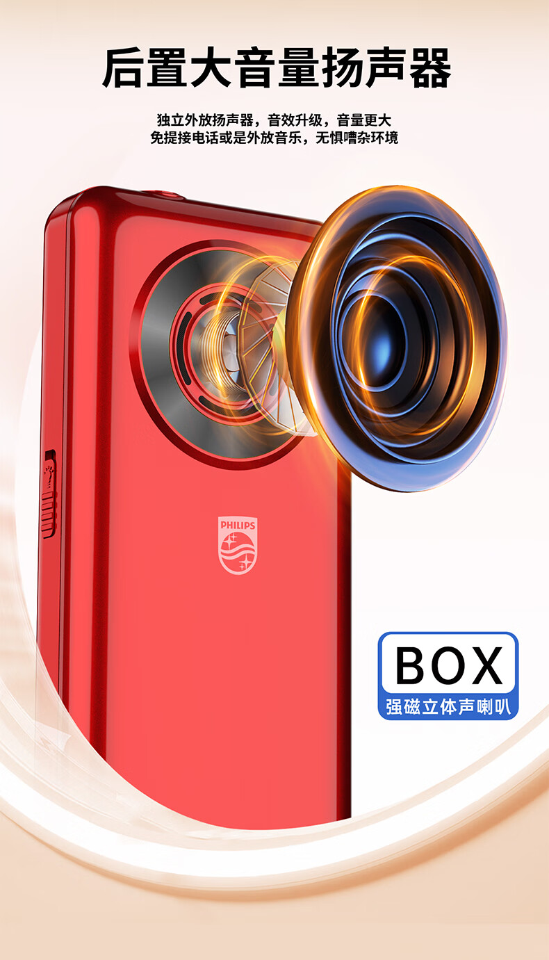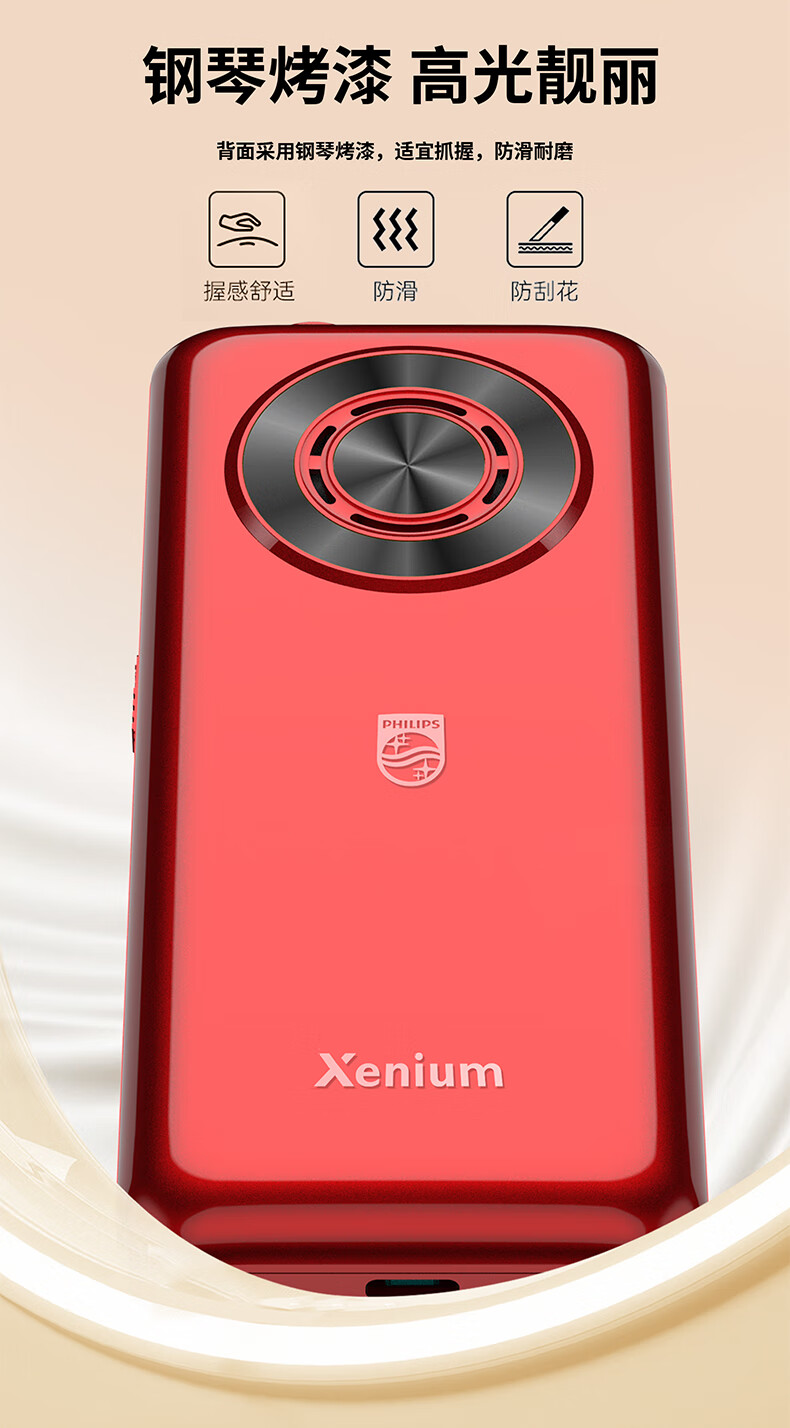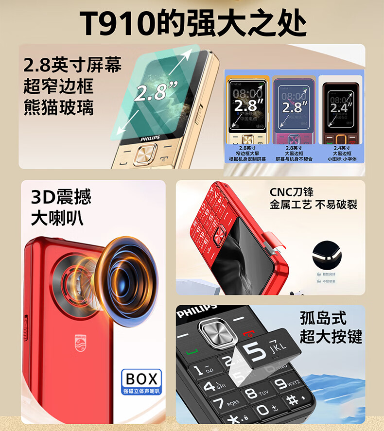 飞利浦(PHILIPS)T910 老年人手机 超长待机大声音大按键老人手机移动联通电信广电4G全网通学生商务专备用机绚丽红