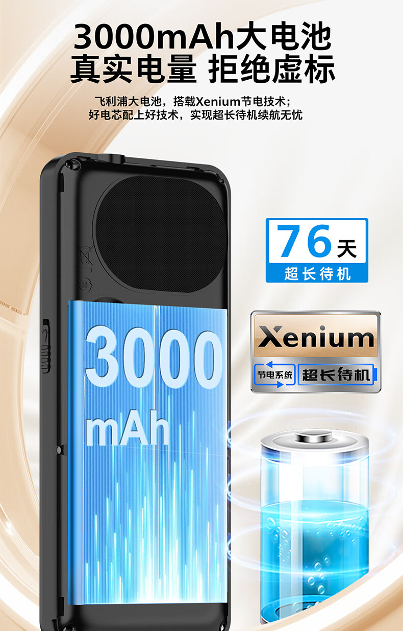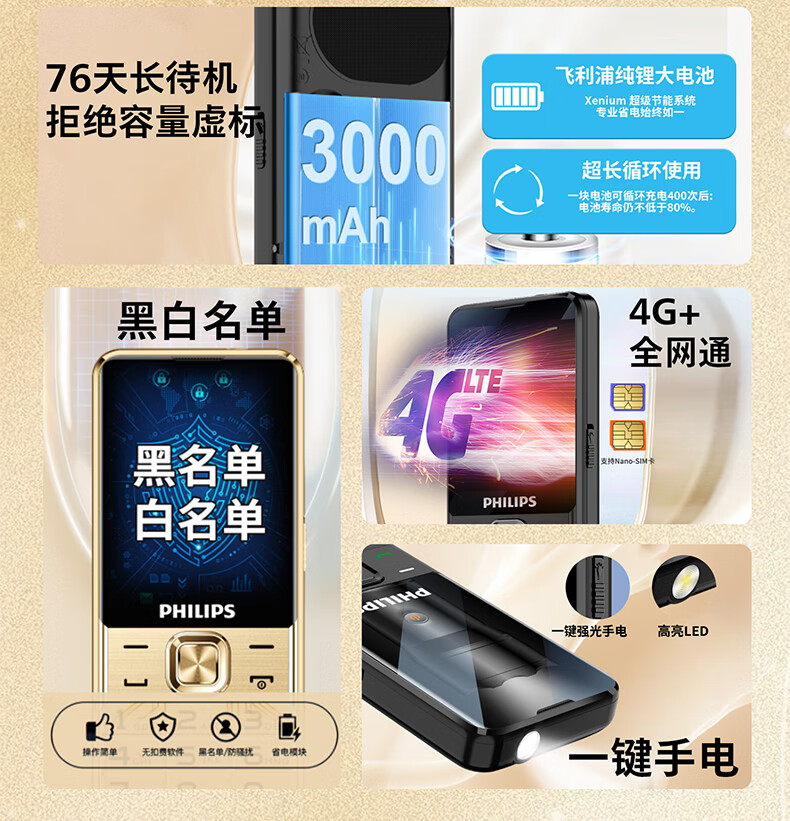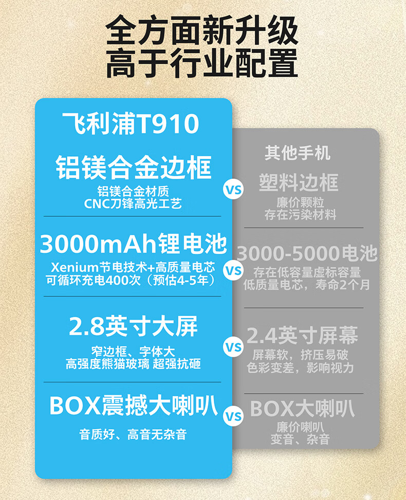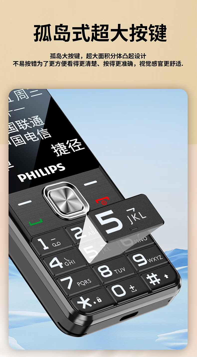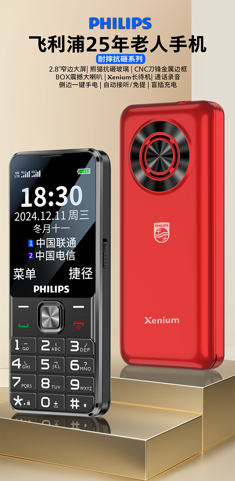飞利浦(PHILIPS)T910 老年人手机 超长待机大声音大按键老人手机移动联通电信广电4G全网通学生商务专备用机绚丽红