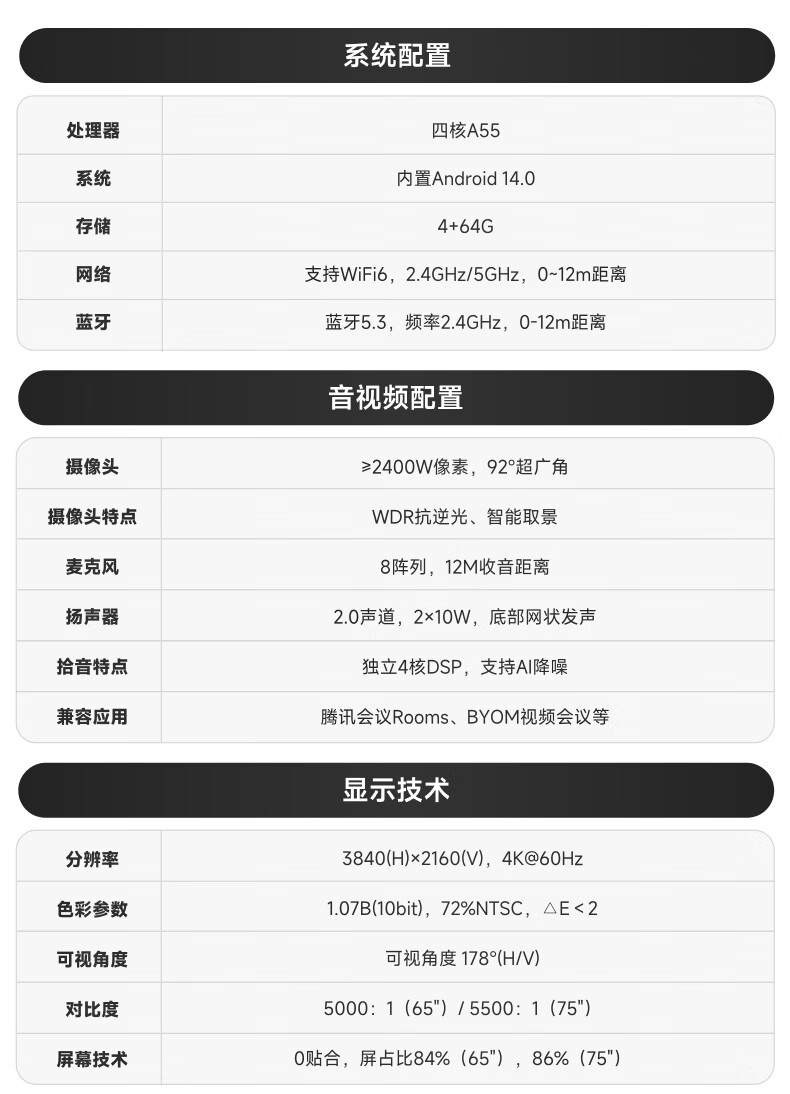 MAXHUB新锐65英寸视频会议平板一体机 会议大屏一体机触摸屏 高清显示器电子白板会议平板书写投屏EG65CAD