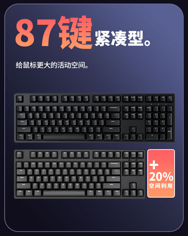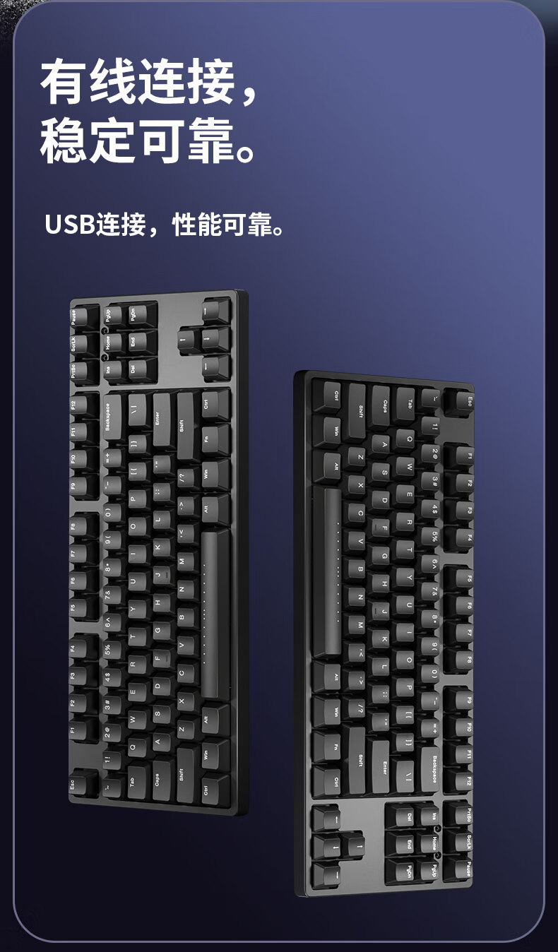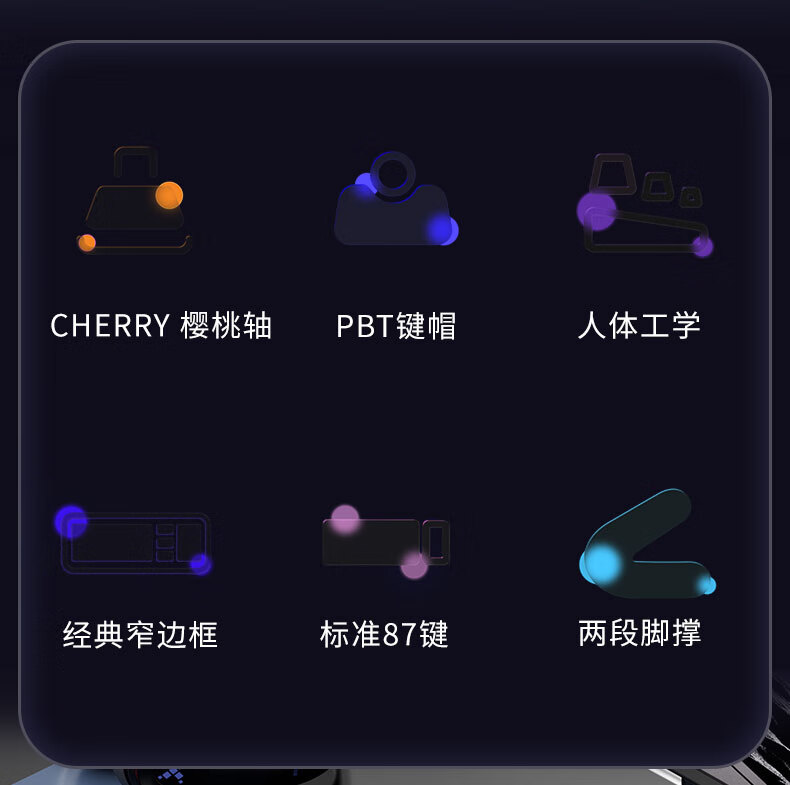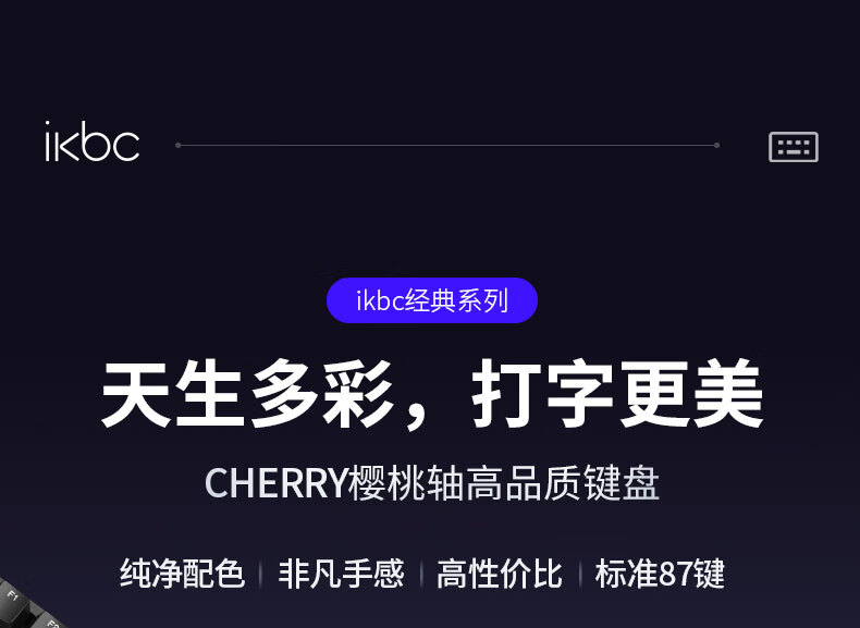 ikbc C87键盘樱桃键盘机械键盘办公键盘电竞游戏黑色87键有线红轴人体工学两段脚撑PBT键帽