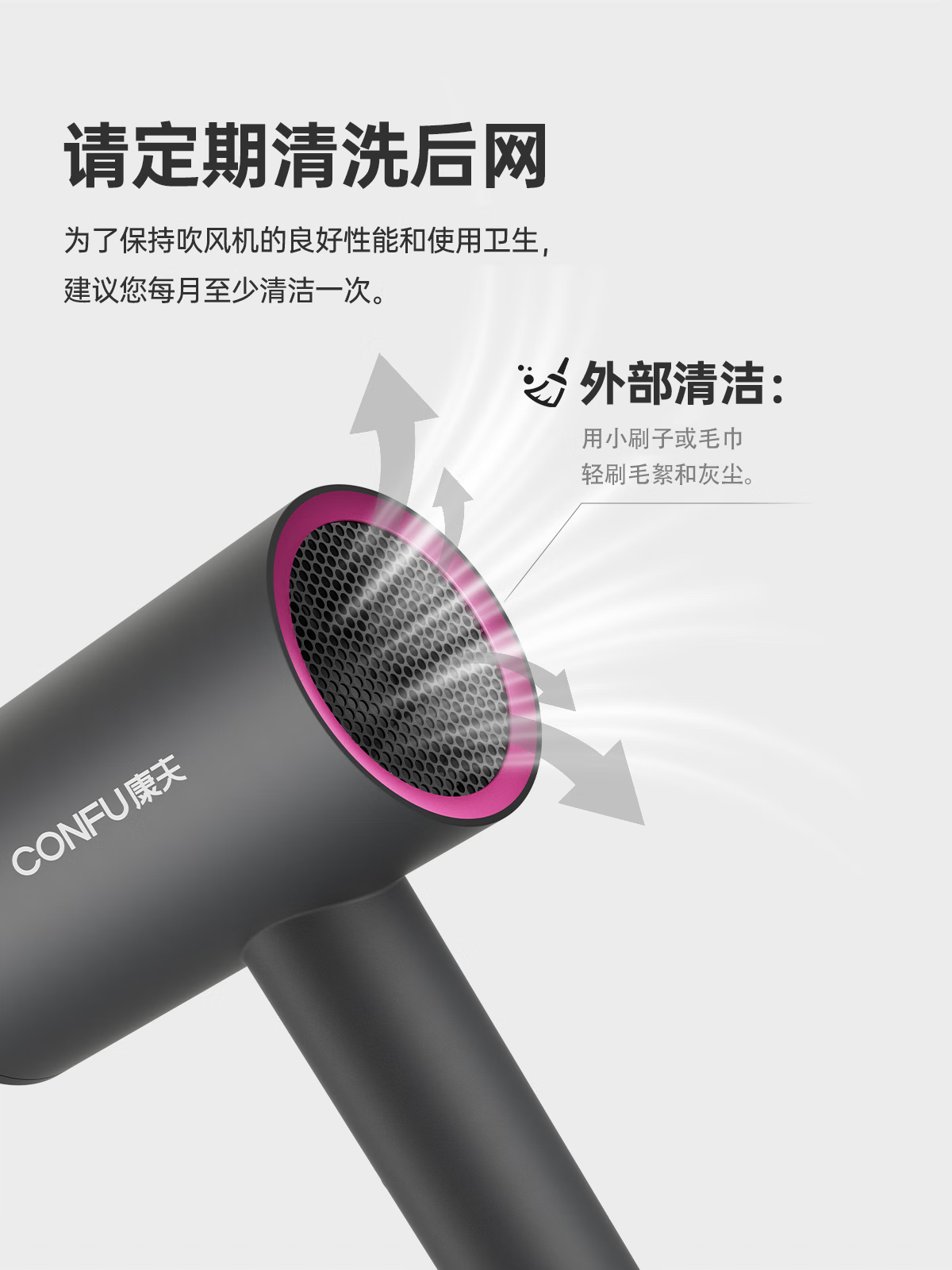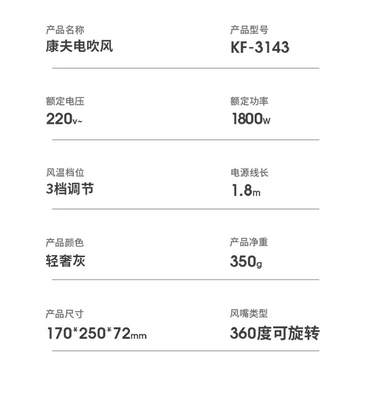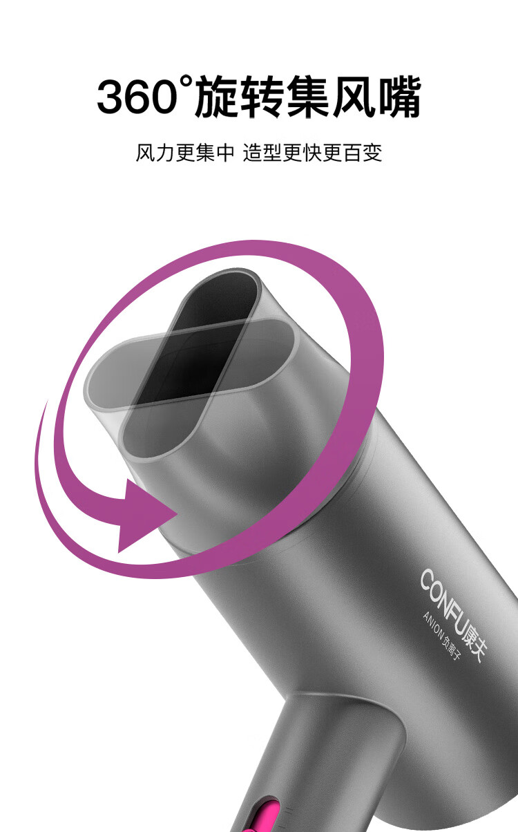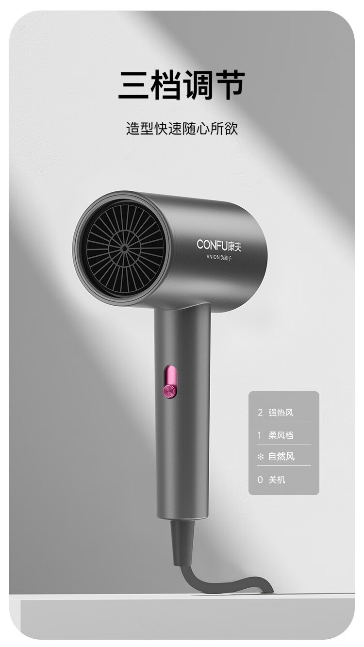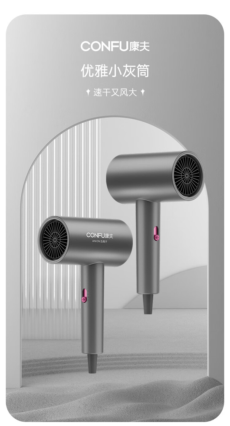 康夫(CONFU)电吹风机家用大风力1800W大功率理发店专用智能恒温吹风筒便携造型吹风机节日礼物3143 3143【恒温无负离子】1800W轻奢灰