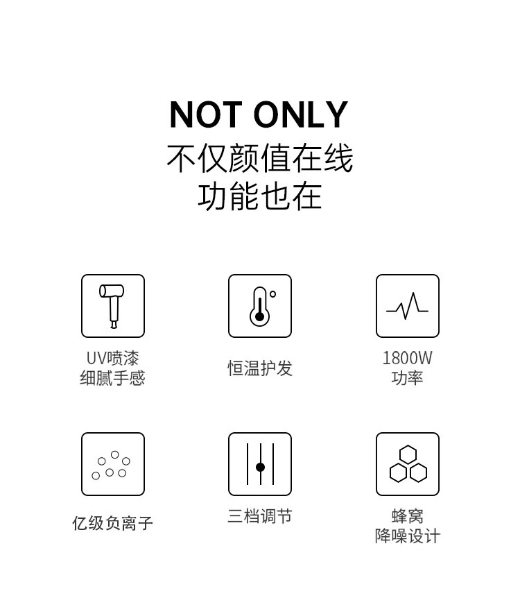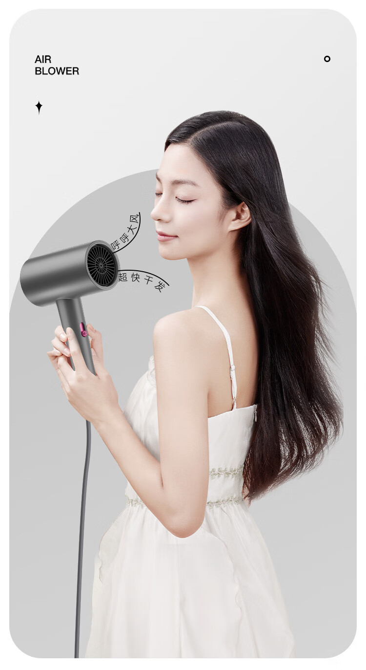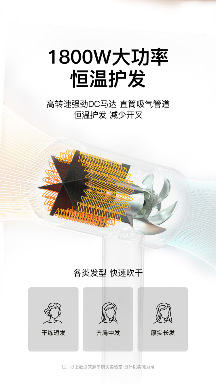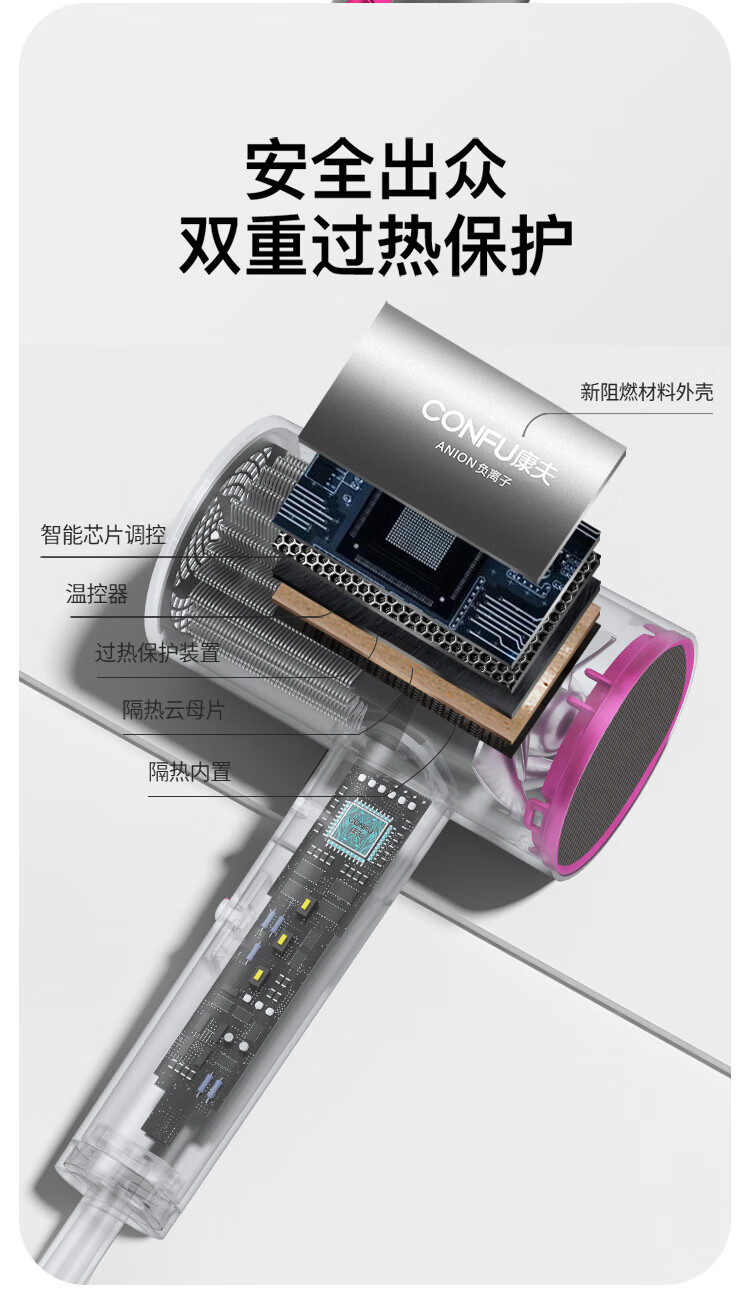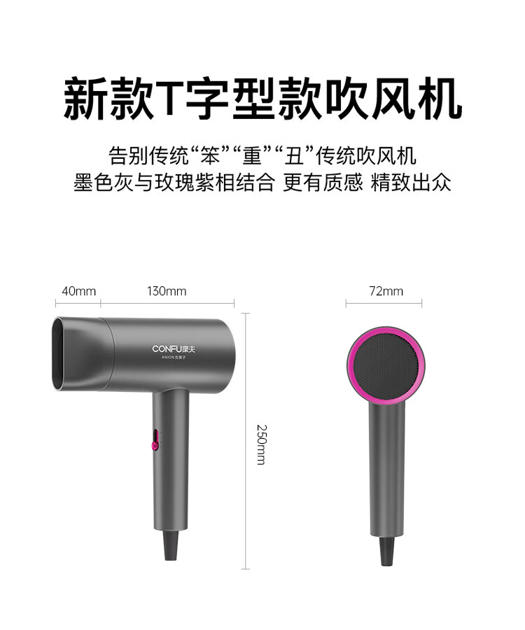 康夫(CONFU)电吹风机家用大风力1800W大功率理发店专用智能恒温吹风筒便携造型吹风机节日礼物3143 3143【恒温无负离子】1800W轻奢灰