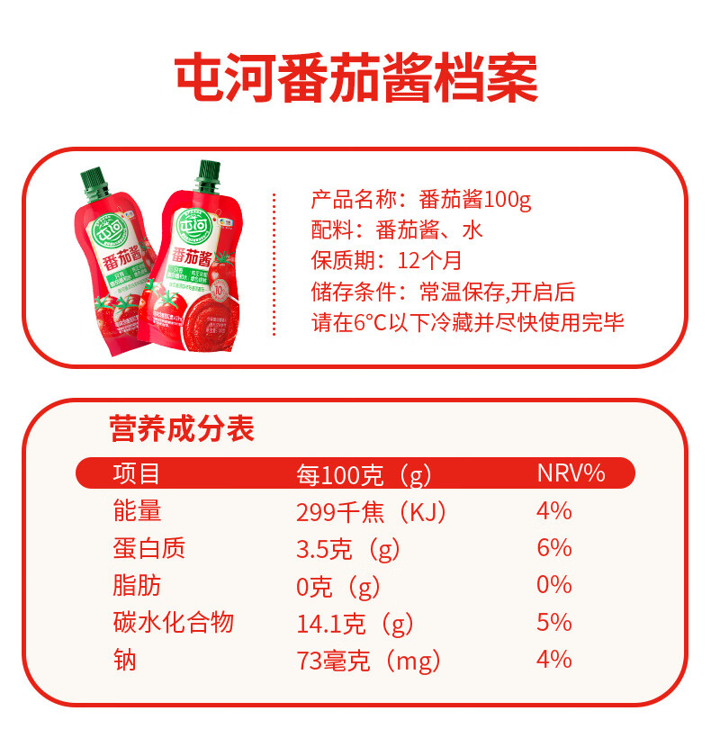 屯河番茄酱小包装0添加剂新疆内蒙番茄调味酱儿童宝宝意面酱番茄沙司 100g*5袋