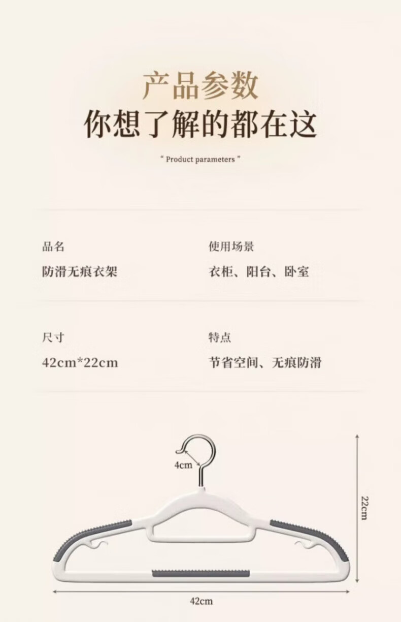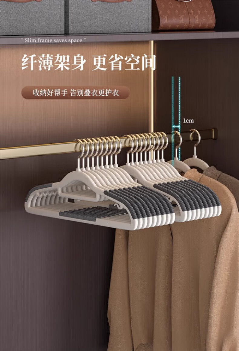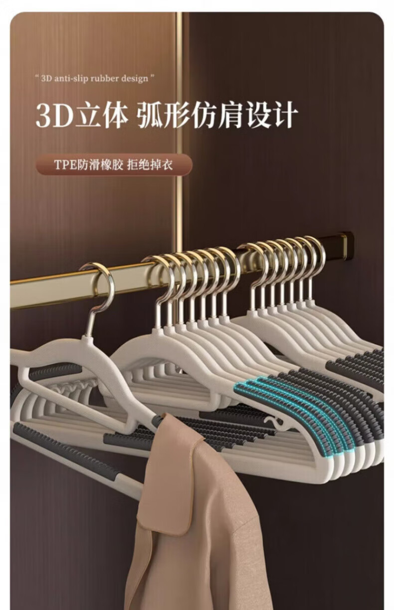 户璃德国衣架家用挂衣服防滑无痕护衣撑不鼓包衣柜专用晾衣架学生防肩 薄款27*20浅盘2cm【10个装】