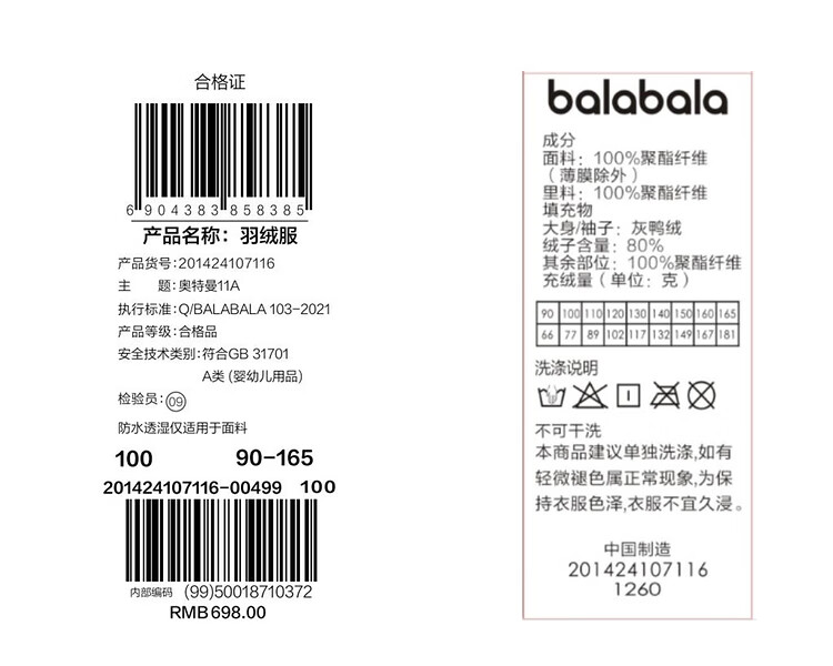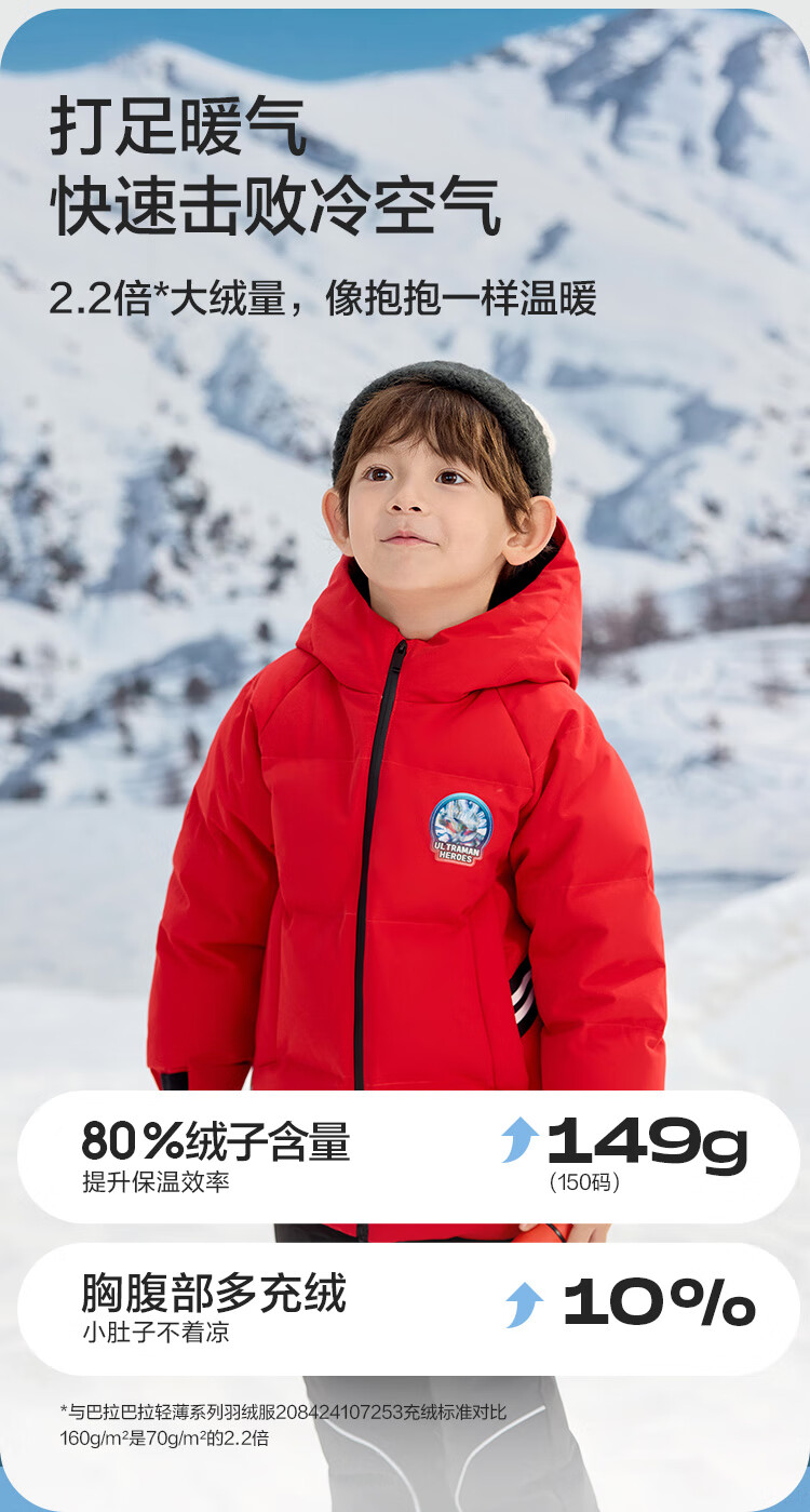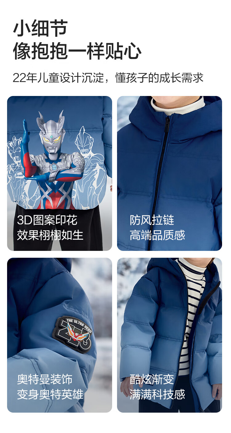 巴拉巴拉男童羽绒服冬装连帽外套潮【奥特曼IP】201424107116